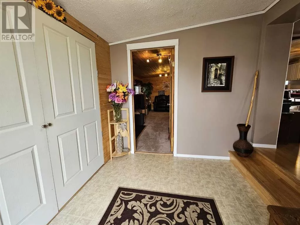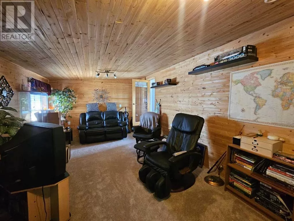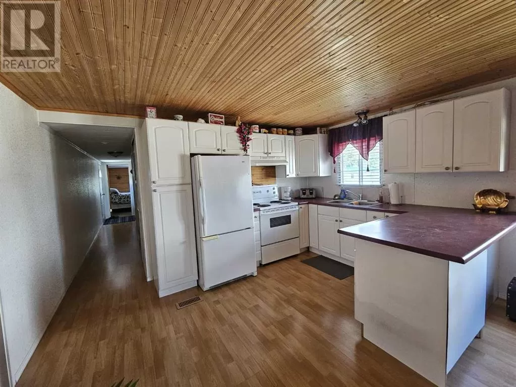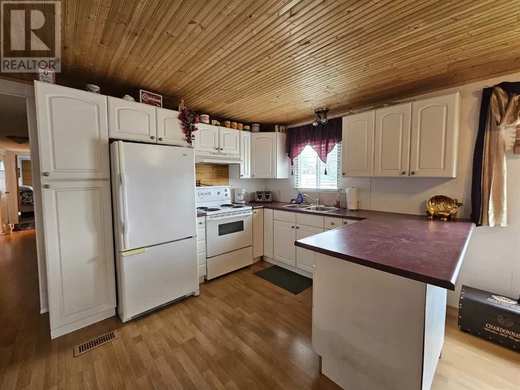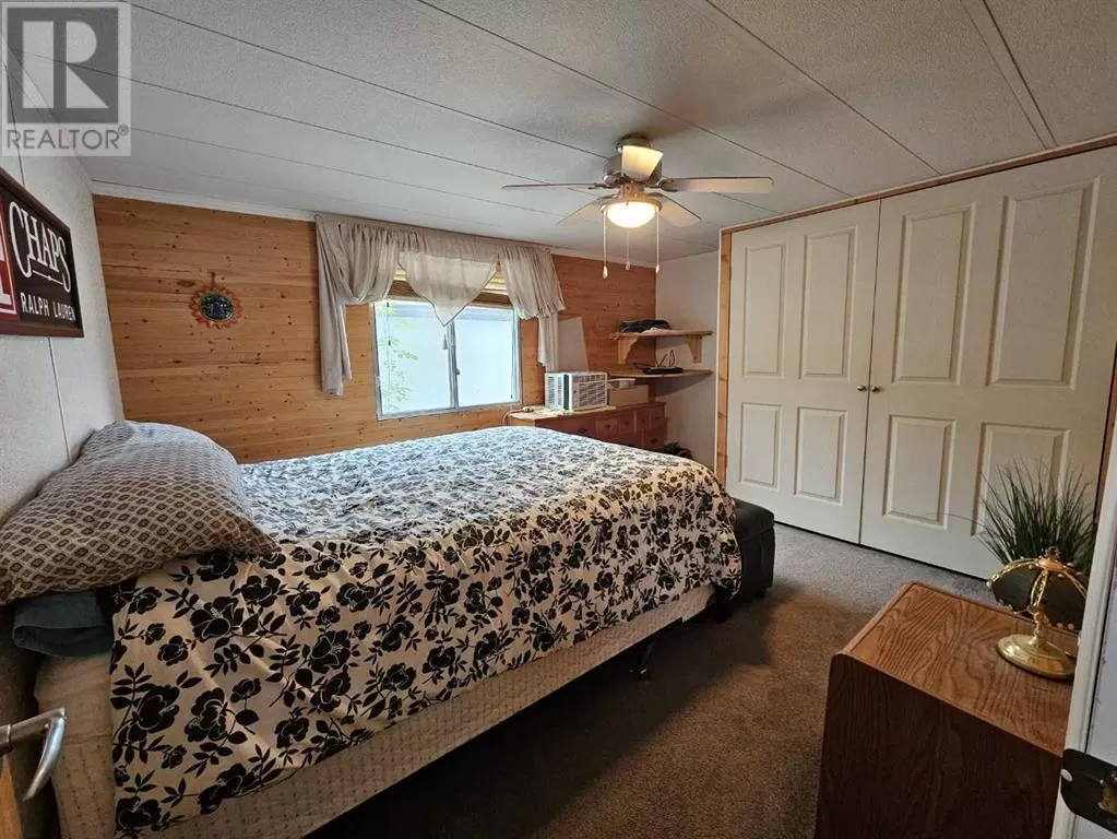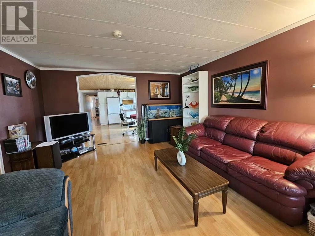 Welcome to this affordable and updated 2-bedroom mobile home with a spacious addition â just a 10-minute drive from Sylvan Lake! This charming home sits on a private lot with two sheds, trees and a fully usable yard perfect for relaxing or entertaining.Inside, youâll find two living rooms (one could easily be converted into a third bedroom), a large entrance area with a coat closet, updated flooring, a wood-burning stove, and a kitchen with plenty of cupboard space and an L-shaped island. The home also features natural light throughout, ceiling fans, and a combined bath/laundry room with extra storage. Updates throughout make it move-in ready and functional.Step outside to enjoy raspberry bushes, mature trees, and front and back decks (just 2 years old). A true hidden gem for anyone looking for peace, privacy, and value close to the lake. (id:27476)