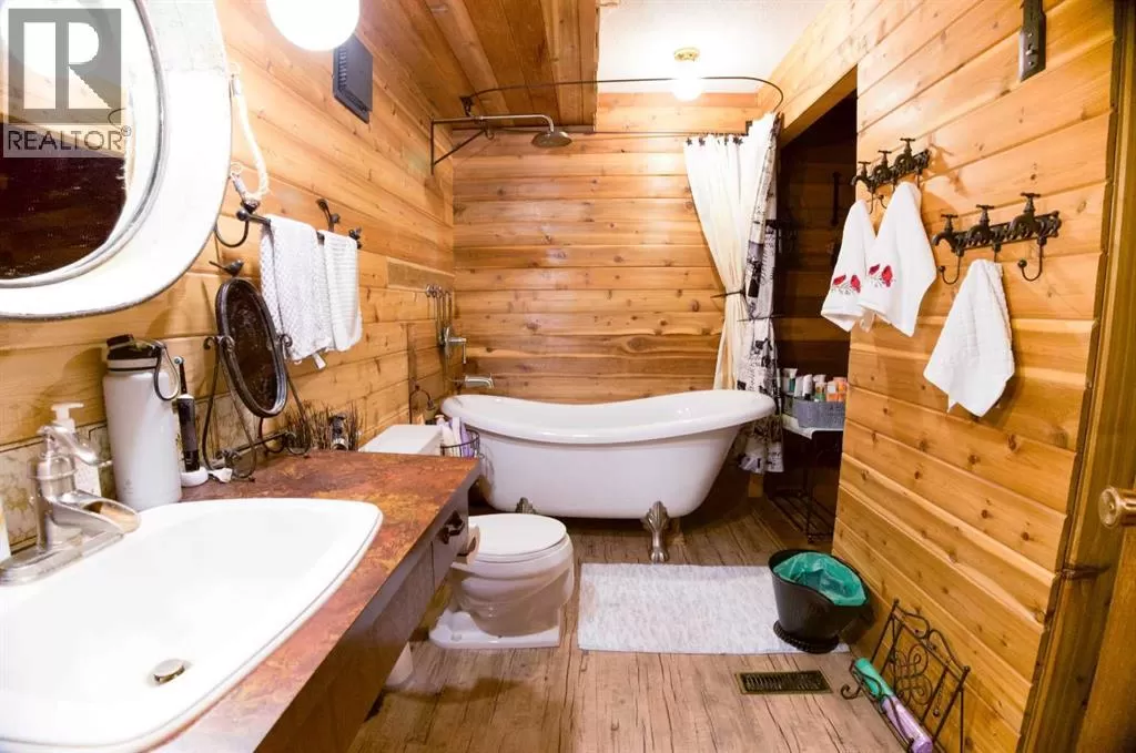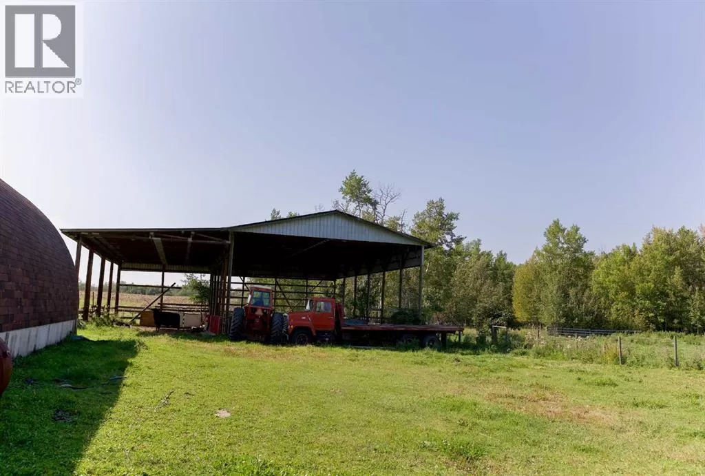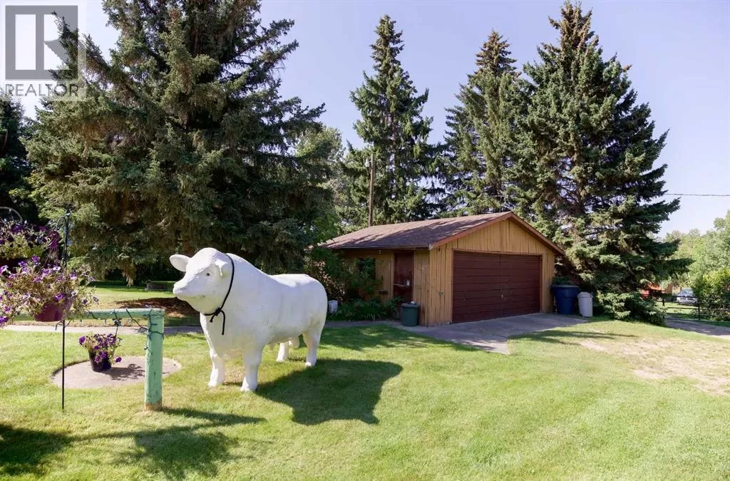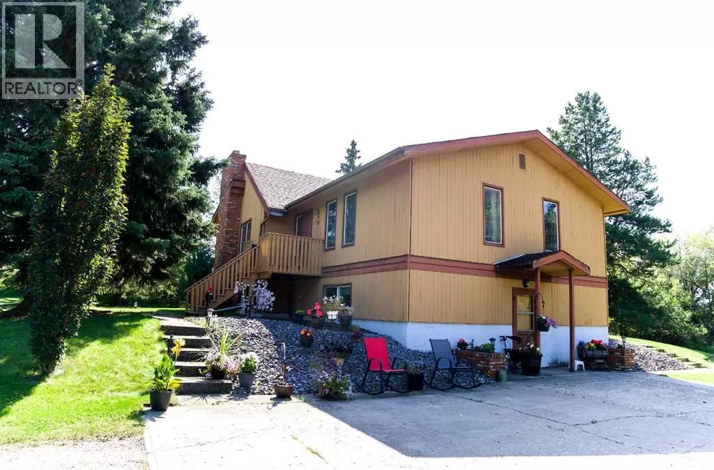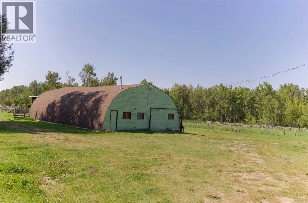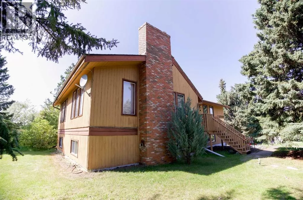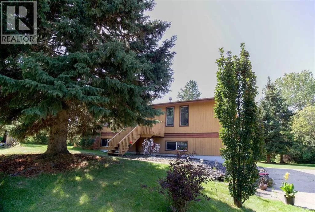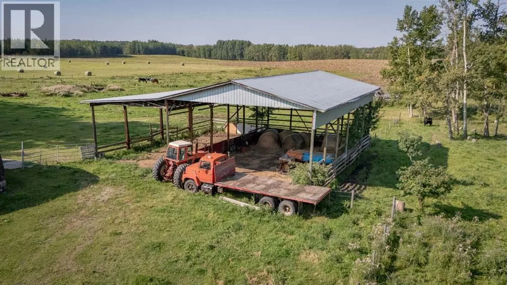 Opportunity awaits on this diverse 103-acre parcel located in a beautiful farming community, only 6 minutes from Red Deer and Sylvan Lake on pavement. The land offers a mix of grain, hay, pasture, and timber, plus excellent infrastructure for livestock and farming operations:â¢Corral system with 4 water bowlsâ¢2,700 sq. ft. cattle shedâ¢3,600 sq. ft. hay shedâ¢40' x 60' shop with concrete floor AND 220vâ¢Fenced and cross-fenced pasturesThis well manicured raised bungalow provides a spacious bright living space with wrap-around windows, a stunning cedar vaulted ceiling, and a unique red brick fireplace bringing warmth and character to the home. Fully developed at 2668 sq. ft. with the main floor being 1336 sq. ft. would be considered a family home. The main floor includes a huge living room, large eat-in oak kitchen with an abundance of cabinets, formal dining room, two bedrooms, and a 5-piece bathroom with double vanity and laundry room. The walk-out lower level features a generous primary bedroom, family room with wood-burning fireplace for those winter days, an additional bedroom, office, lovely 4-piece bathroom with claw-foot tub, and a former sauna space which could be brought back for original. Double detached garage is a small walk to house. This home is embraced by mature trees and a beautifully landscaped yard, creating a private, park-like retreat that perfectly complements the home and the versatility of the land. (id:27476)