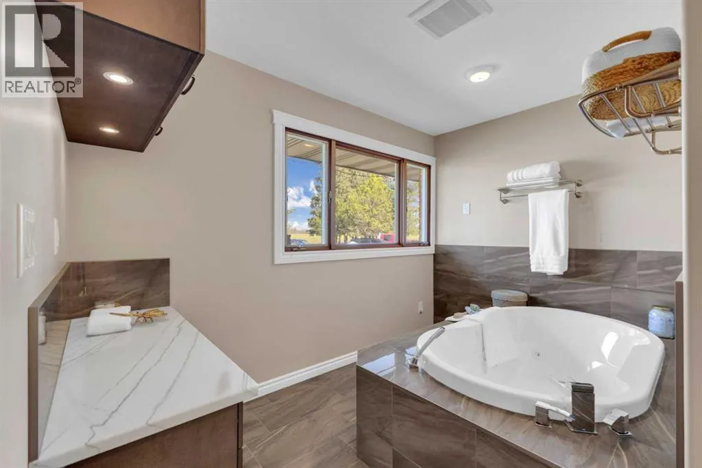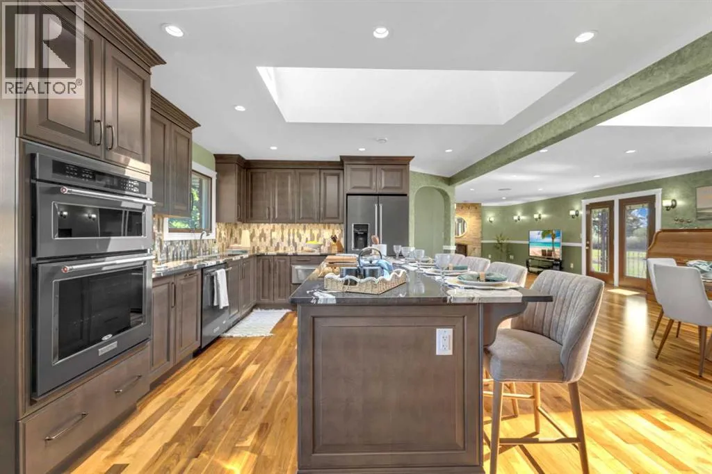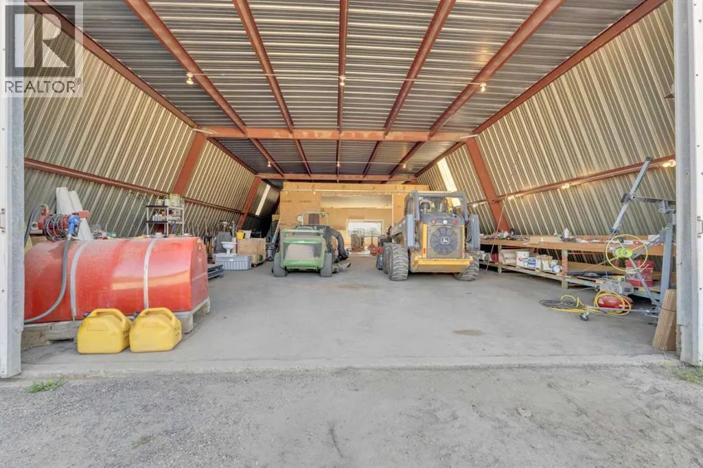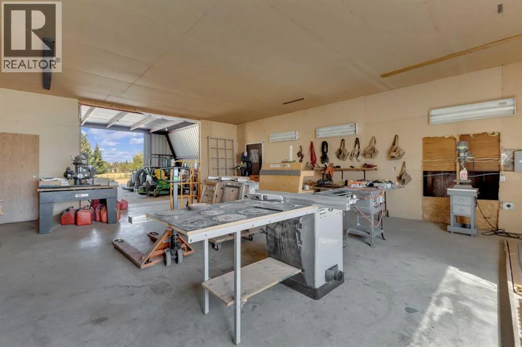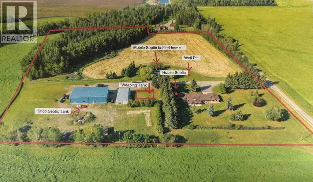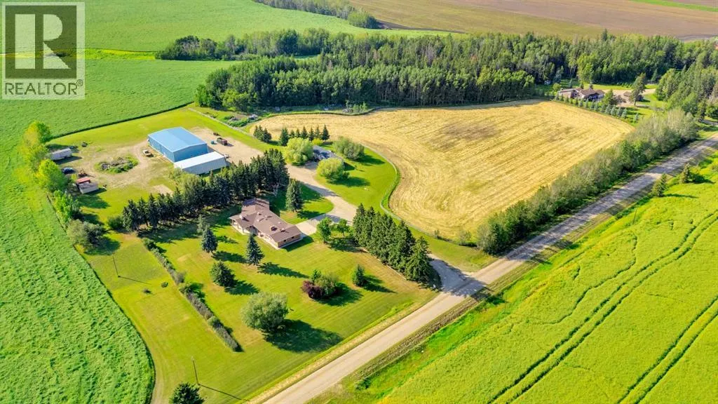 This exceptional property offers 17.92 acres with two residences, a fully finished shop, and multiple outbuildings, located just 1 mile off Hwy 11A on a quiet dead-end road for added privacy, while still providing quick access to both Red Deer and Sylvan Lake. The main home is a spacious bungalow, fully renovated in 2016 with a new roof in 2010. Highlights include hardwood and tile flooring, granite countertops throughout, and an open concept kitchen with a large granite island, black stainless steel appliances, induction cooktop, convection wall oven, warming oven, built in microwave, beautiful cabinetry, and a stunning tile backsplash that flows through the kitchen and dining area. The living room features a wood-burning fireplace, while the sitting room offers a gas fireplace. The primary suite includes a walk-in closet and a luxury ensuite with full bathroom and a deep soaker jet tub in its own private area. Two additional main floor bedrooms, a full bathroom, a half bathroom and the laundry area complete the main level. The basement is nearly finished with a large recreation room, cold room, and utility room with two furnaces, water softener, and A/C. The attached oversized double garage is heated with radiant heat. A second residence, a 2014 manufactured home, offers 3 bedrooms, 2 full bathrooms, air conditioning, washer/dryer, a walk-in pantry, a primary suite with walk-in closet, and a deep corner jetted tub. Outbuildings include a 60â x 100â heated shop with radiant heat, three oversized doors (16â and 14â), bathroom with urinal, washer/dryer hookup, concrete floors in excellent condition, and 220V power in shop (3), quonset (2) and garage (1). Additional buildings include a 70â x 40â Quonset with concrete floor, power, and roughed-in underfloor heating, plus five sheds. Both the shop and Quonset feature durable metal roofing. Approximately 16 acres are currently seeded to barley under a gentlemanâs agreement until mid-September. This rare offering combines two residences, extensive outbuildings, privacy on a dead-end road, and a prime location close to town â the opportunities here are truly endless. (id:27476)