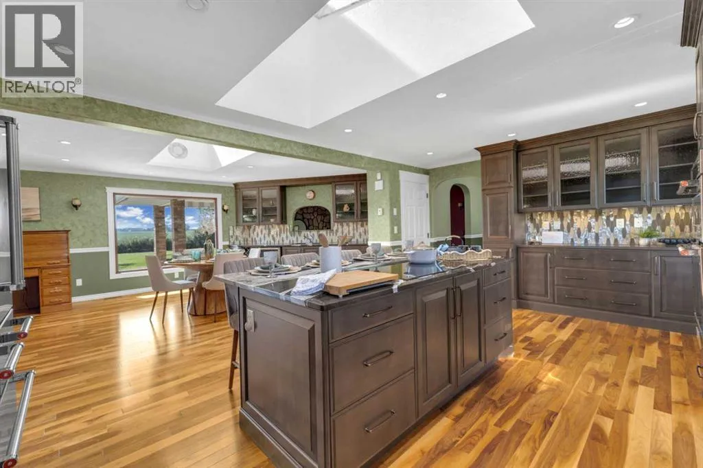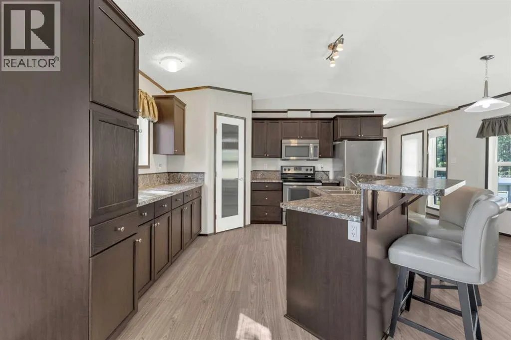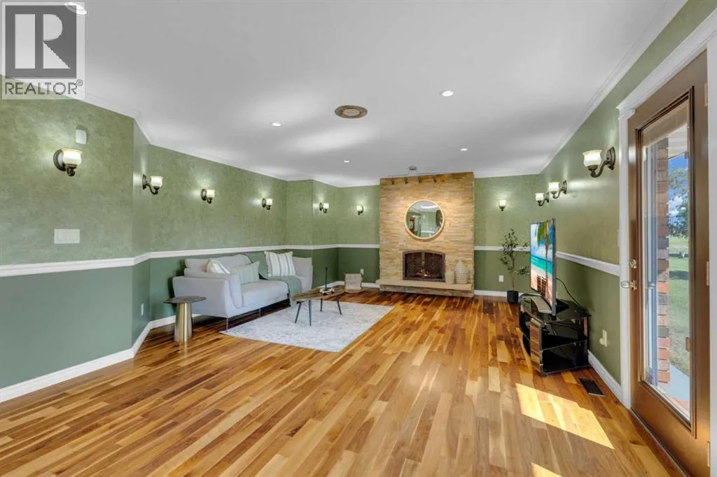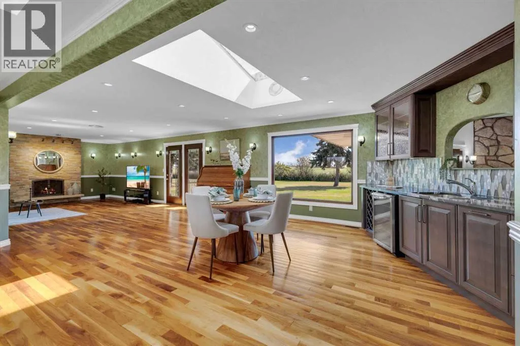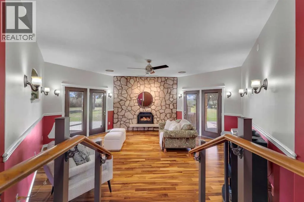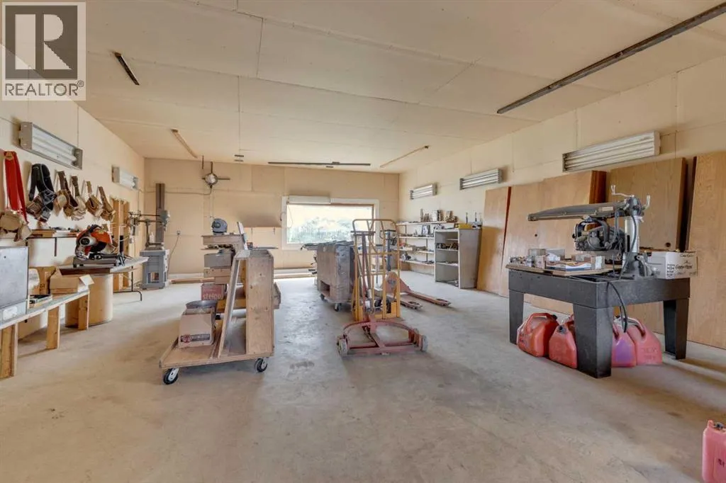 This exceptional property offers 17.92 acres with two residences, a fully finished shop, and multiple outbuildings, located just 1 mile off Hwy 11A on a quiet dead-end road for added privacy, while still providing quick access to both Red Deer and Sylvan Lake. The main home is a spacious bungalow, fully renovated in 2016 with a new roof in 2010. Highlights include hardwood and tile flooring, granite countertops throughout, and an open concept kitchen with a large granite island, black stainless steel appliances, induction cooktop, convection wall oven, warming oven, built in microwave, beautiful cabinetry, and a stunning tile backsplash that flows through the kitchen and dining area. The living room features a wood-burning fireplace, while the sitting room offers a gas fireplace. The primary suite includes a walk-in closet and a luxury ensuite with full bathroom and a deep soaker jet tub in its own private area. Two additional main floor bedrooms, a full bathroom, a half bathroom and the laundry area complete the main level. The basement is nearly finished with a large recreation room, cold room, and utility room with two furnaces, water softener, and A/C. The attached oversized double garage is heated with radiant heat. A second residence, a 2014 manufactured home, offers 3 bedrooms, 2 full bathrooms, air conditioning, washer/dryer, a walk-in pantry, a primary suite with walk-in closet, and a deep corner jetted tub. Outbuildings include a 60â x 100â heated shop with radiant heat, three oversized doors (16â and 14â), bathroom with urinal, washer/dryer hookup, concrete floors in excellent condition, and 220V power in shop (3), quonset (2) and garage (1). Additional buildings include a 70â x 40â Quonset with concrete floor, power, and roughed-in underfloor heating, plus five sheds. Both the shop and Quonset feature durable metal roofing. Approximately 16 acres are currently seeded to barley under a gentlemanâs agreement until mid-September. This rare offering combines two residences, extensive outbuildings, privacy on a dead-end road, and a prime location close to town â the opportunities here are truly endless. (id:27476)