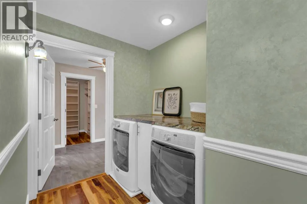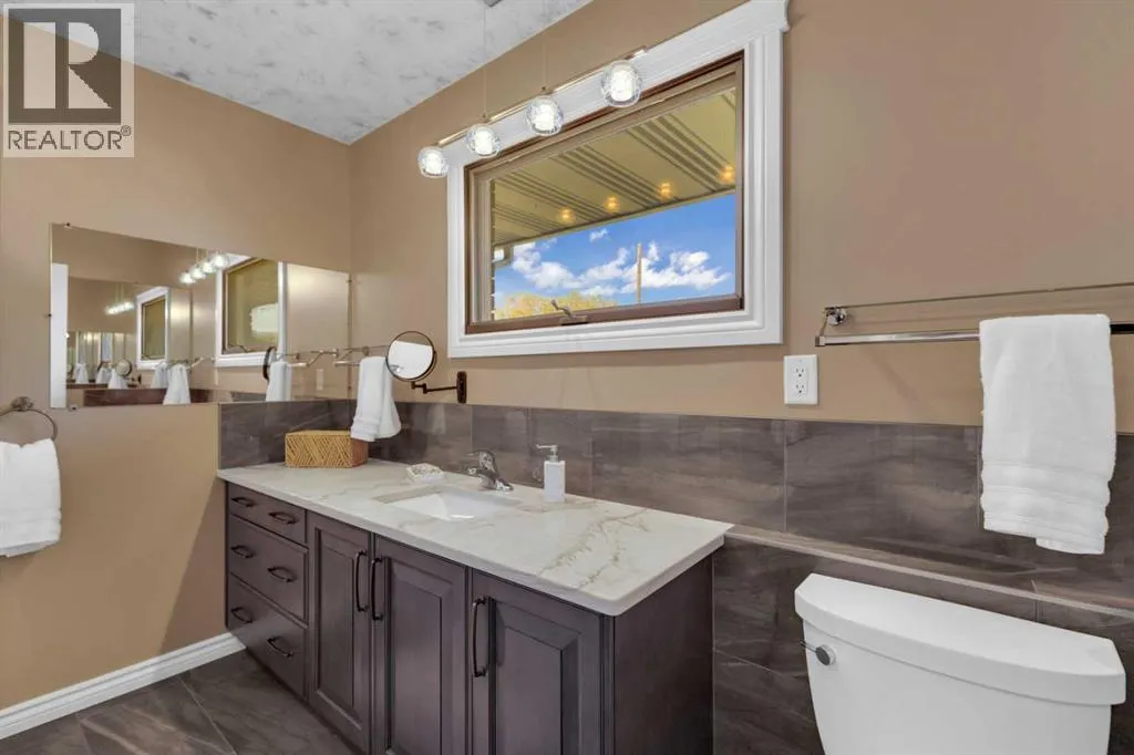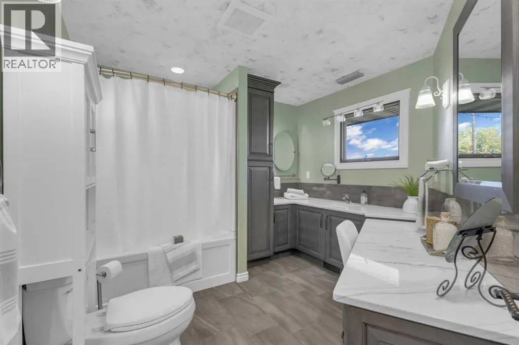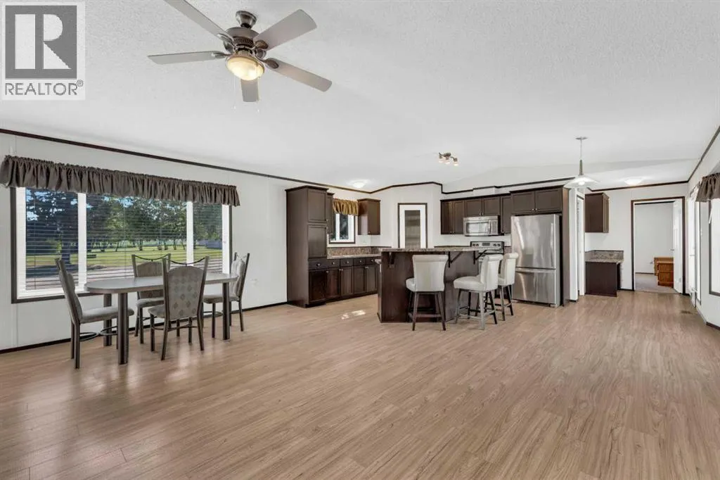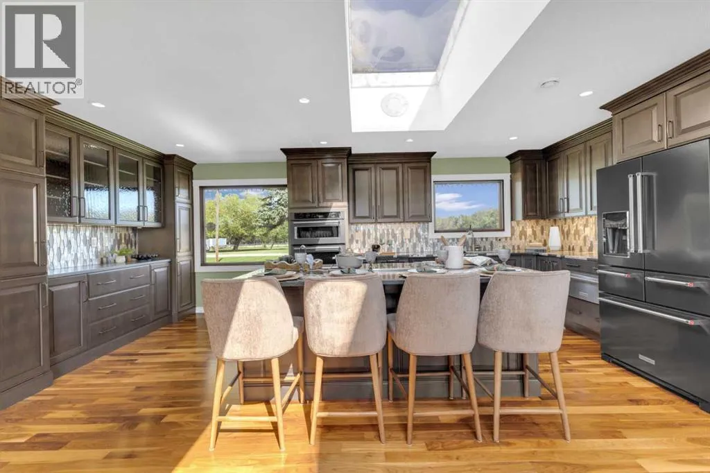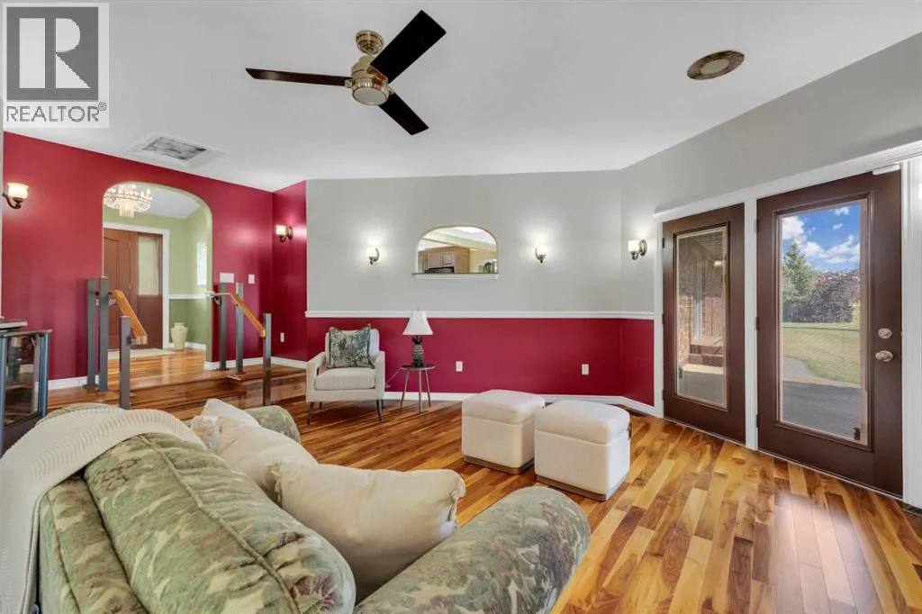This exceptional property offers 17.92 acres with two residences, a fully finished shop, and multiple outbuildings, located just 1 mile off Hwy 11A on a quiet dead-end road for added privacy, while still providing quick access to both Red Deer and Sylvan Lake. The main home is a spacious bungalow, fully renovated in 2016 with a new roof in 2010. Highlights include hardwood and tile flooring, granite countertops throughout, and an open concept kitchen with a large granite island, black stainless steel appliances, induction cooktop, convection wall oven, warming oven, built in microwave, beautiful cabinetry, and a stunning tile backsplash that flows through the kitchen and dining area. The living room features a wood-burning fireplace, while the sitting room offers a gas fireplace. The primary suite includes a walk-in closet and a luxury ensuite with full bathroom and a deep soaker jet tub in its own private area. Two additional main floor bedrooms, a full bathroom, a half bathroom and the laundry area complete the main level. The basement is nearly finished with a large recreation room, cold room, and utility room with two furnaces, water softener, and A/C. The attached oversized double garage is heated with radiant heat. A second residence, a 2014 manufactured home, offers 3 bedrooms, 2 full bathrooms, air conditioning, washer/dryer, a walk-in pantry, a primary suite with walk-in closet, and a deep corner jetted tub. Outbuildings include a 60â x 100â heated shop with radiant heat, three oversized doors (16â and 14â), bathroom with urinal, washer/dryer hookup, concrete floors in excellent condition, and 220V power in shop (3), quonset (2) and garage (1). Additional buildings include a 70â x 40â Quonset with concrete floor, power, and roughed-in underfloor heating, plus five sheds. Both the shop and Quonset feature durable metal roofing. Approximately 16 acres are currently seeded to barley under a gentlemanâs agreement until mid-September. This rare offering combines two residences, extensive outbuildings, privacy on a dead-end road, and a prime location close to town â the opportunities here are truly endless. (id:27476)