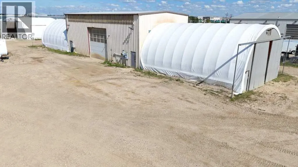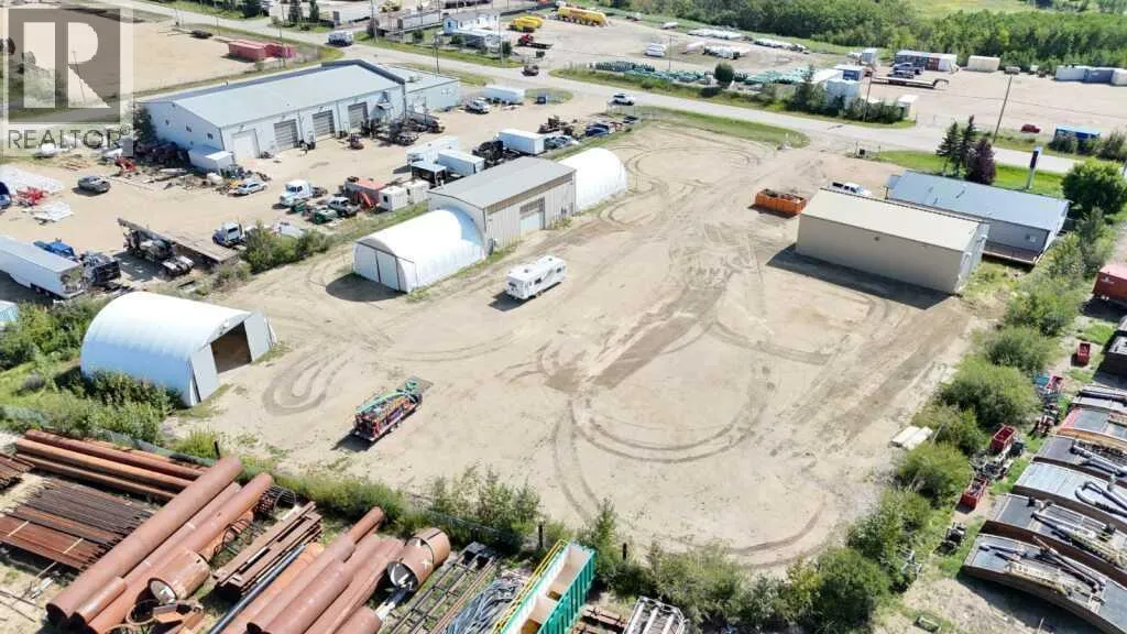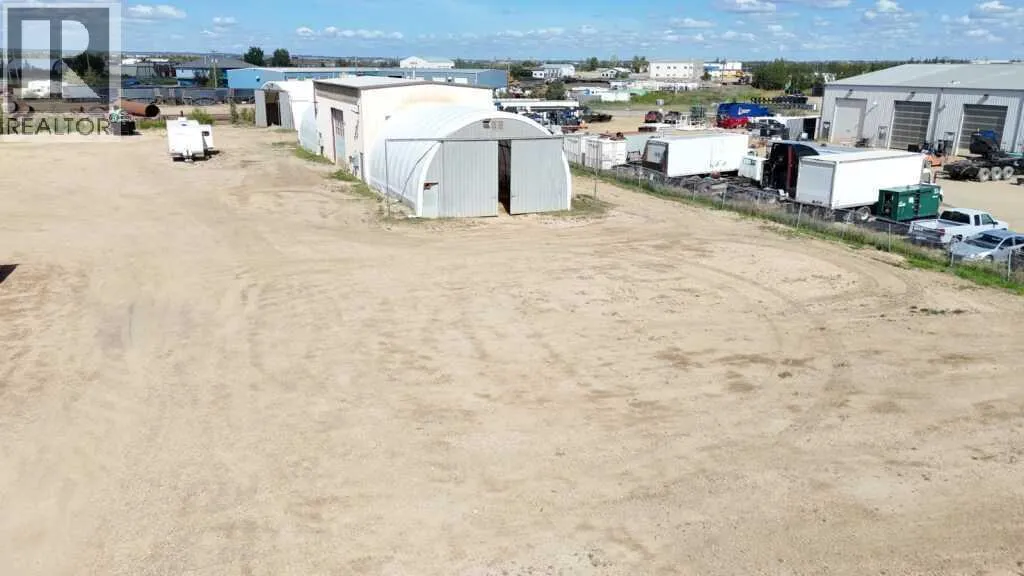 Exceptional industrial property on 2.04 acres with a total of 9,967 SF across four buildings. The site includes a modernized 2,187.93 SF office trailer with six offices, a boardroom, reception, and washrooms. A 2,040 SF main shop is equipped with radiant heat, exhaust fans, and 225A, 3-phase power. The 1,800 SF fabrication shop offers trench drains, radiant tube heat, and 400A, 600V 3-phase service, plus two 1,200 SF heated Quonset shelters for storage and overflow. An additional 1,520 SF powered Quonset with a concrete floor provides cold storage space. The yard is fully fenced, graveled, and designed for easy truck access, with remote gate entry and security cameras in place. Recent improvements include office and yard cleanup. A well-equipped and versatile property in Blindman Industrial Park. (id:27476)