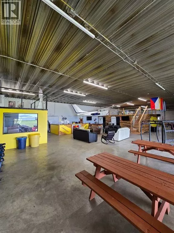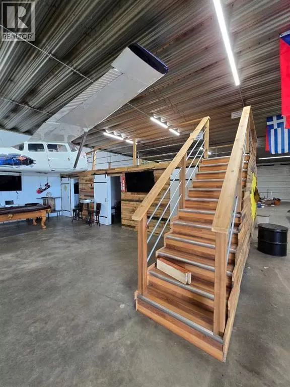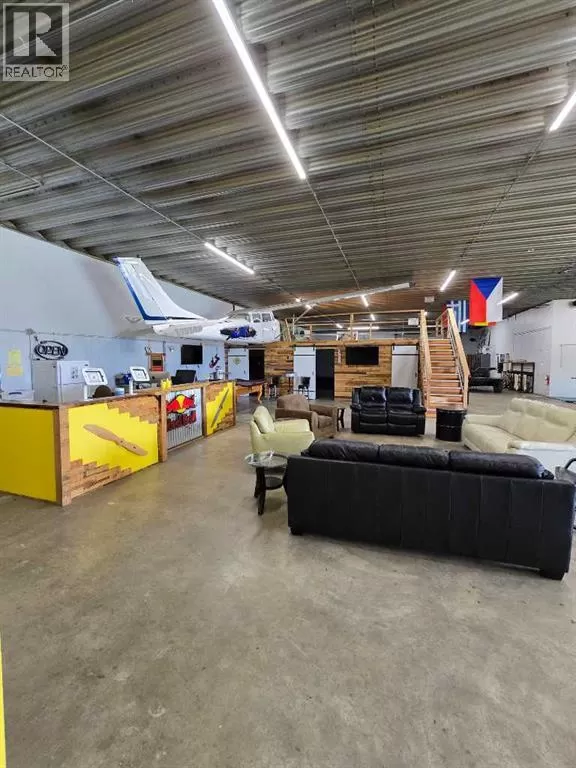 Amazing setup. Front offices and modern upgraded one bedroom suite. 16,470 sqft of shop/warehouse/clubhouse style open area with several barn door accessed rooms. Approximately 4700 sqft cold storage airplane hangar in the rear included at no cost with main hangar lease. Overhead doors, large kitchen/wet bar at the front of the open area. There is a partial airplane hanging over the bar with working lights. This place has to bee seen to appreciate it's vibe. Would suit storage, private club, or bring your idea. The airport itself has been upgrading the runway with new blacktop after about 40 years of use. Recent upgrades to the building include the suite add-on (permitted), granite counter tops, tile, hardwood floors, appliances and interior heating. 2 bathroom upgrades, staff room, cupboards, flooring etc. Main heated hangar area had the drywall cleaned up and new hot water tank. All upgrades were done 7 years ago. Property is also offered for sale MLS A2248736 (id:27476)