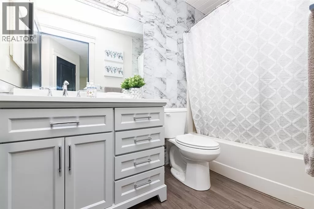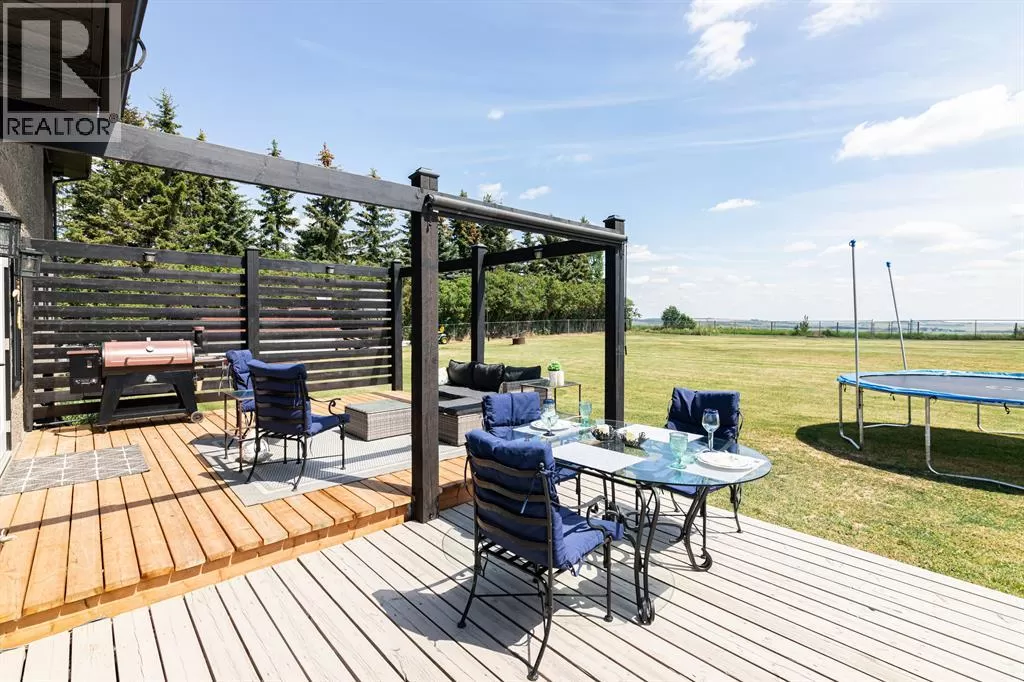~Exceptionally beautiful property inside and out~ BREATHTAKING VIEWS~ See the city lights twinkle as you look out from the west and enjoy the tranquility to the EAST!!! AMAZING TRANSFORMATION from old to new, with a complete professional renovation top to bottom! This home features: triple pane windows, new flooring, paint, bathrooms, kitchen, 220 in garage, new garage heater, appliances and much more! The front foyer boasts high ceilings and a beautiful, curved staircase! A sunken formal living room with wood burning fireplace and large windows located in the front off the entrance, flows to the spacious dining that also features a large window, built in modern cabinets and a large storage/panty tucked behind a beautiful barn door. The kitchen features expansive quartz countertops, a 4x8 island, STUNNING WHITE CABINTRY, reverse osmosis, 5 burner gas range, a walk-in pantry with coffee station and incredible MODERN tiled backsplash! The large QUARTZ peninsula seats 4 and is conveniently located adjacent to the double patio doors that walk out onto a large private patio and east back yard. The family room off the dining boasts high ceilings, a beautiful brick feature wall and a gas fireplace; a large comfortable living space for family gatherings and movie nights. THE HOT TUB ROOM is truly a remarkable place ALL YEAR ROUND to enjoy your mornings or evenings, and is completely set up for entertaining friends, drinks and BBQ'S. Main floor also features MAIN FLOOR LAUNDRY ROOM located off the garage entrance, and a spacious office with BUILT IN CABINETS! THE GORGEOUS CURVED STAIRCASE leads to the second floor where you'll find an illegal SUITE above the garage with a 4-piece bathroom, 2 bedrooms, a full-size living room, kitchen area, and separate entrance. The PRIMARY BEDROOM also located on the upper floor has a HOTEL FEEL, sunken and behind French Doors featuring a beautiful wood burning fireplace, door to the private balcony and views to the west overlooking the CIT Y! AMAZING AND GENEROUS size 5 piece en-suite has a large sunken spa like tub, water closet, separate shower, expansive counters with dual sinks and a door to the east PRIVATE BALCONY. There is enormous closet space for him and her. No shortage of beautiful upgrades throughout, lighting, flooring, air conditioning and more. The basement has 2 rooms close to completion, very little left to do, roughed in for a fourth bathroom, one room is used as a gym, there is a large storage room and full access to the hot tub above, for any maintenance. All new plumbing, and electrical, furnaces, sump pump, new garage heater, making this home an attractive purchase with peace of mind. Enjoy the tranquility acreage living has to offer, minutes to RED DEER, nothing left to do but enjoy your new beautiful home. (id:27476)