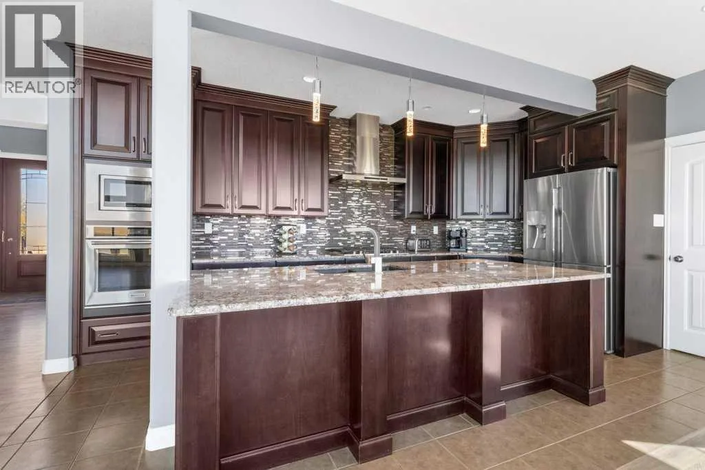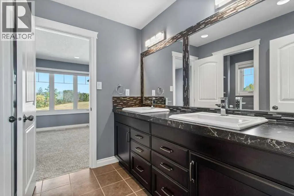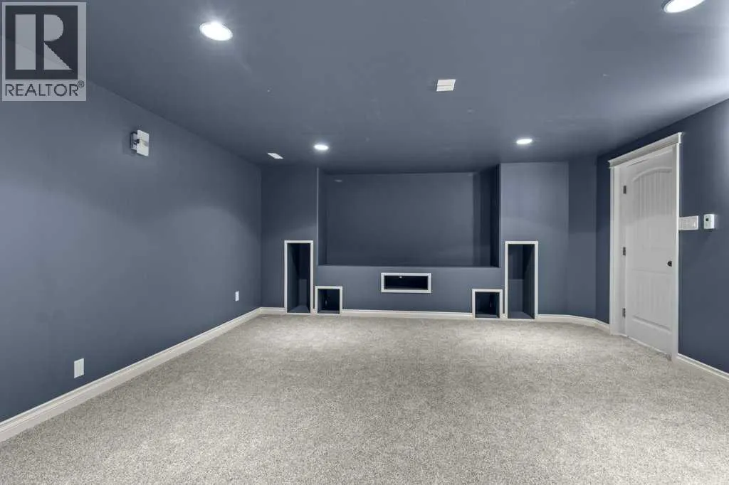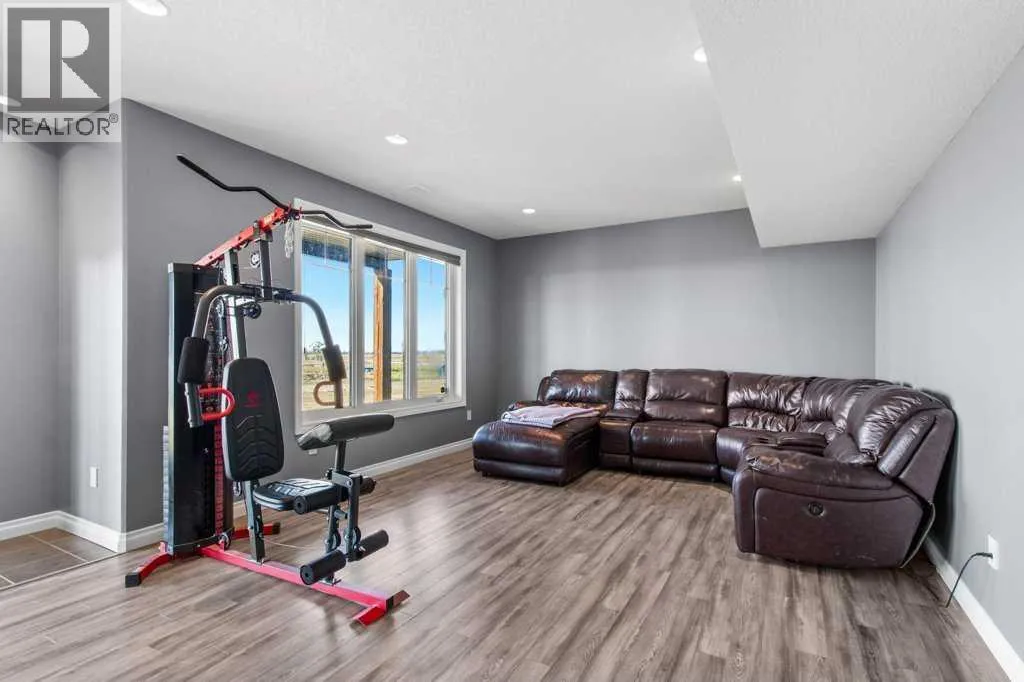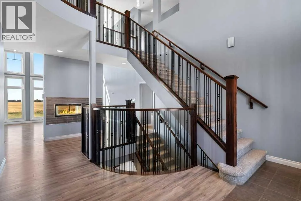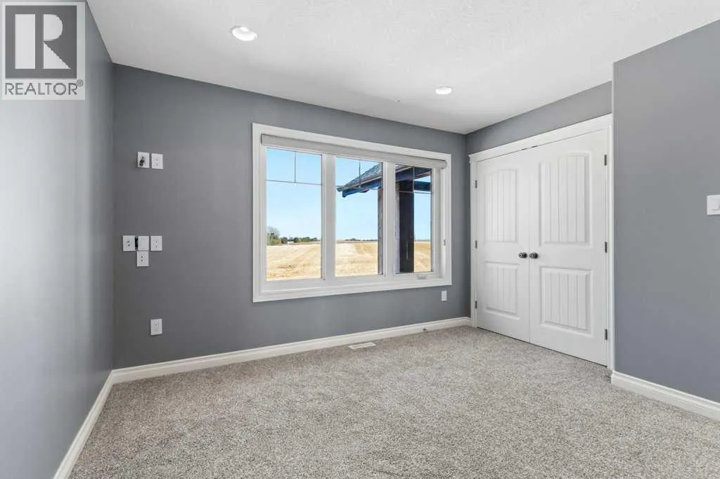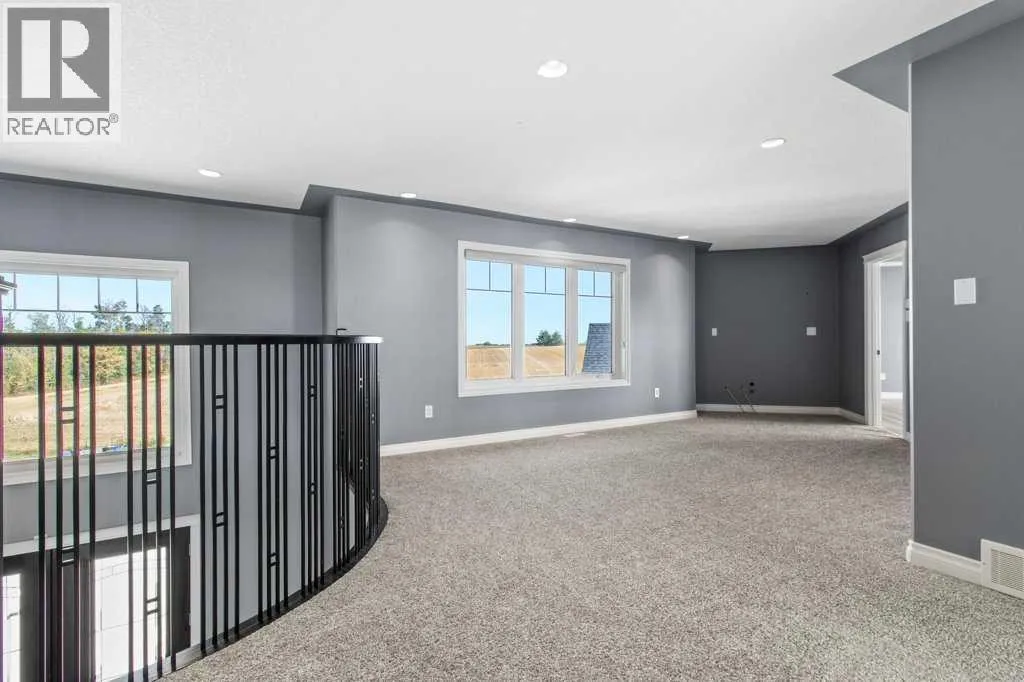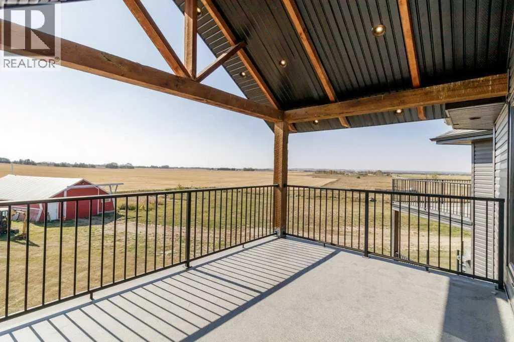 Stunning fully finished 2-storey walkout on 3.83 acres, located just minutes from Red Deer with only approximately 1 km of gravel to house (from Red Deer on the Burnt Lake Trail route). This spacious home is designed for modern family living, offering 6 bedrooms, 5 bathrooms, multiple living areas, a theatre room, and several decks with incredible views. The main floor features a grand 2-storey staircase, an open living room with a gas fireplace with oversized windows, and a chefâs kitchen with ceiling-height cabinetry, granite counters, gas range, and an extra-large island. The main floor primary suite includes a walk-in closet with laundry and a spa-inspired ensuite with jetted tub, dual sinks, upgraded cabinetry and a shower prepped for steam with digital thermostat, dual heads & body jets. Upstairs youâll find 4 bedrooms including a second primary bedroom with a private ensuite and deck, and a large family room. The finished walkout basement offers a large rec room, theatre room, bedroom, full bathroom, and wet bar rough-in. This property boasts extensive upgrades and infrastructure: Land & Services: All black dirt removed and clay packed for a future shop (pad with water, gas, and power already run). Water and power also available at camping area. Septic includes a large 2-compartment tank with 500 ft field. 97 ft well with constant pressure system and new lines running to both house and garage. Shop: Fully insulated with concrete floor, forced air propane furnace, exhaust/roof fans, 220 & 110 wiring, mezzanine storage, and finished offices with laminate flooring.House Systems: All-weather windows & doors, Liberty security system with exterior cameras, automation wiring, and in-ceiling stereo wiring (2 speakers per room, media room prepped). In-floor heating (garage & basement) with individual thermostats. Two furnaces (main/basement + upstairs), 2 A/C units, humidifiers, large IBC boiler system with extra hot water tank and full HVAC. LED lighting throughout with exterior pot lights. The theatre room is fully insulated and soundproofed, wired for speakers and projector, all connected to a temperature/moisture-controlled media room. Additional highlights include a heated 4-car garage with drains to septic, RV pad with amp service, glass deck railings, dual electrical panels, water softener, upgraded blind package (some electric), and fresh paint. This acreage offers a rare blend of luxury finishes, thoughtful design, and long-term planning, making it ideal for a large or blended family looking for space, comfort, and convenience just outside the city. Garage is 29 x 58 and the shop is 29 x 48 plus office space of 14 x 12 and storage 15 x 12. Main level 1890 square feet, upper level 1614 square feet, lower level 1817 square feet, total developed is 5321 square feet. (id:27476)
