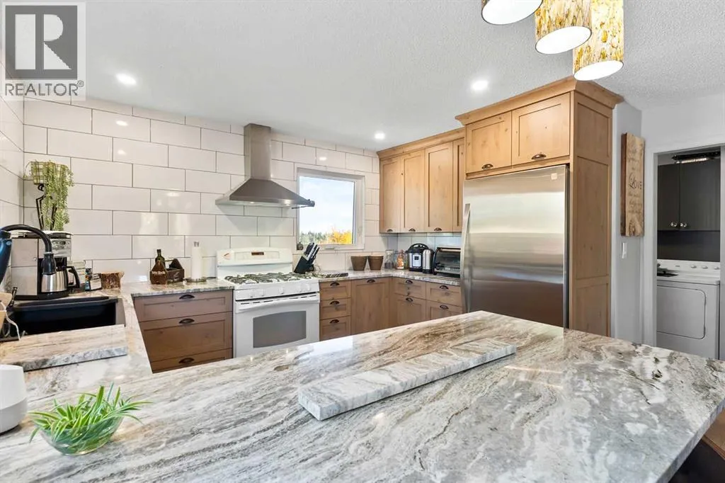 Welcome to this exceptional 52-acre property, a rare find for those seeking privacy, space, and the perfect setup for country living. Zoned Agriculture and located just 8 minutes off Highway QE2, this property offers a peaceful retreat with all the conveniences of modern upgrades and easy access to nearby cities â only 50 minutes to Calgary and 35 minutes to Red Deer. The main home is a spacious five-bedroom residence, ideal for a large family or hosting guests. Beautifully updated kitchen featuring Knotty Alder cabinetry and granite countertops. Recent mechanical upgrades include a newer forced-air furnace, upgraded hot water heater, electrical panel, submersible well pump, and water treatment system, ensuring comfort and peace of mind. Privately tucked away from the main home is a second residence, perfect for rental income or extended family. This well-maintained 3-bedroom modular home with an addition and large deck has also been upgraded with twin furnaces, electrical panel, water heater, and its own submersible well pump. With separate utilities including septic, power, gas, and water, it offers independence and privacy for its occupants. For the horse enthusiast, this property is truly a dream. The 32â x 72â barn is fully equipped with stalls, a tack room, 6 pens 4 stalls, outdoor pens, water, and power. The land is gently rolling with green pasture, walking paths, camping setup with power and approximately 30% treed, offering both beauty and functionality. The property is fully fenced and cross-fenced, ideal for livestock or horses. Additional features include a 49.5â x 57.5â shop with two 220V power panels, water hookups, and the potential to develop a living space or workshop with a ached 16â x 49.5â covered carport. Numerous sheds throughout the property provide ample space for equipment, tools, or small animals. Enjoy the peace and quiet of country living with outdoor recreation just minutes away â including Glennifer Lake, only 20 minutes away, and t he Little Red Deer River just down the road. Paved access right to the driveway and a house set well back from the highway make this an ideal location to call home. This is more than just a property â itâs a lifestyle. Donât miss your opportunity to own this beautifully maintained and versatile piece of west country ranch land. Directions: West of Bowden AB on Hwy 587 for 6 miles(10KM) . Turn into Driveway North side road #10. Follow driveway to right. (id:27476)