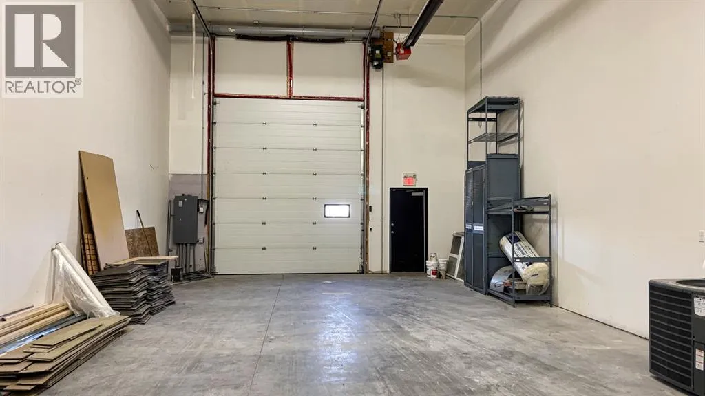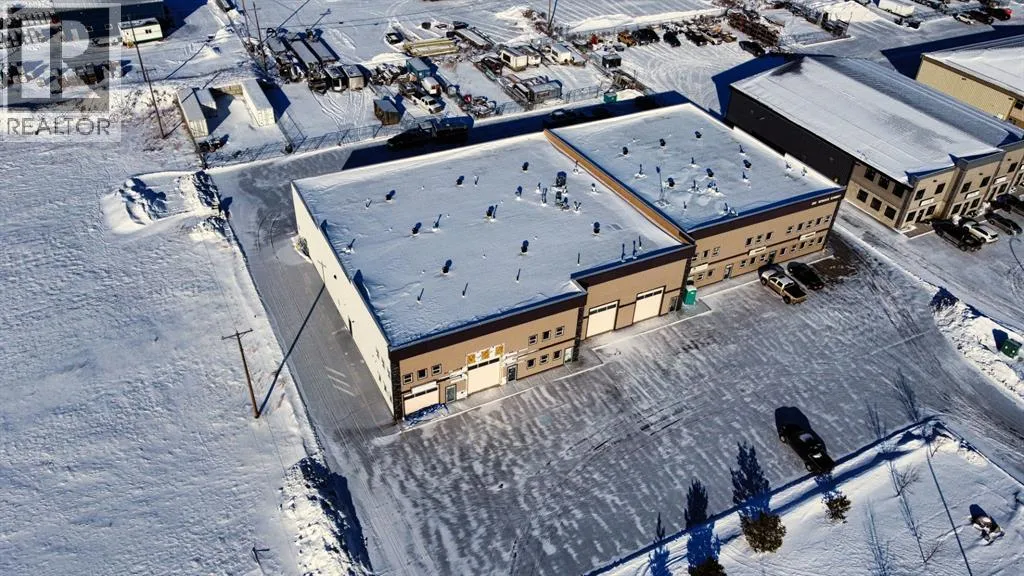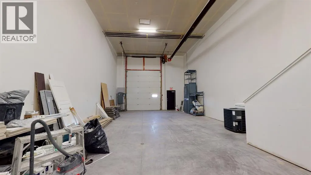 Ideal south side location in Piper Creek Industrial park, just south of the Westerner grounds/Centrium. This building was constructed in 2015 and shows near new, with a 2751 sq. ft. footprint (Condo plan measurement) and 3332 total developed space (Interior measurements) including mezzanine with exterior fenced storage compound. This incredible space has both a front drive 14 ft. overhead door and a rear drive 14 ft. overhead door with two separate bays and office space in the centre. The possibilities are endless, as the front could be used as a show room or additional shop space, or could be sub-let to a tenant. Also ideal deal for the hobbyist or business owner that desires some extra space for a man cave. Both the front and back shop/showroom spaces have overhead radiant heat, front bay is 24'x 34', rear bay is 24'x55'. The office mezzanine has force air. The upper mezzanine consists of two offices, a bathroom and a kitchen room. The lower central space below the mezzanine has another large room ideal for show room/reception or office space, plus two additional rooms that could be used for storage or small office and another bathroom. Front bay flooring has been left bare concrete as the new owner may decide they want carpet for a showroom, epoxy, paint, or leave as is, The front parking area is paved as well as the rear access and parking. Current lease expires March 15, 2026, tenant may wish to renew if desired by purchaser. Condo fee is $482 per month. (id:27476)