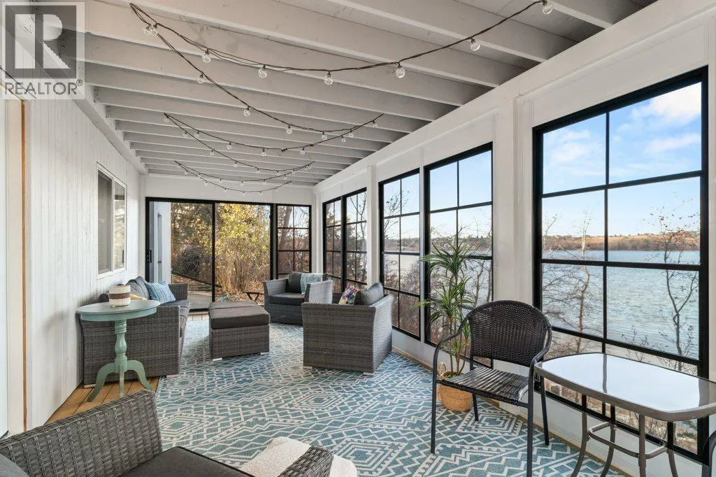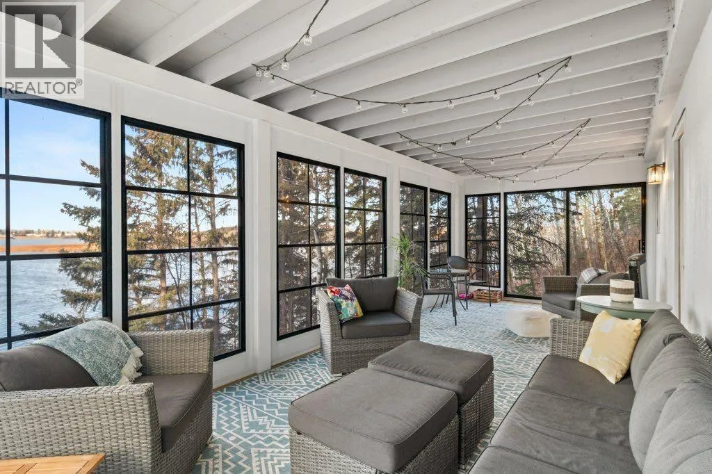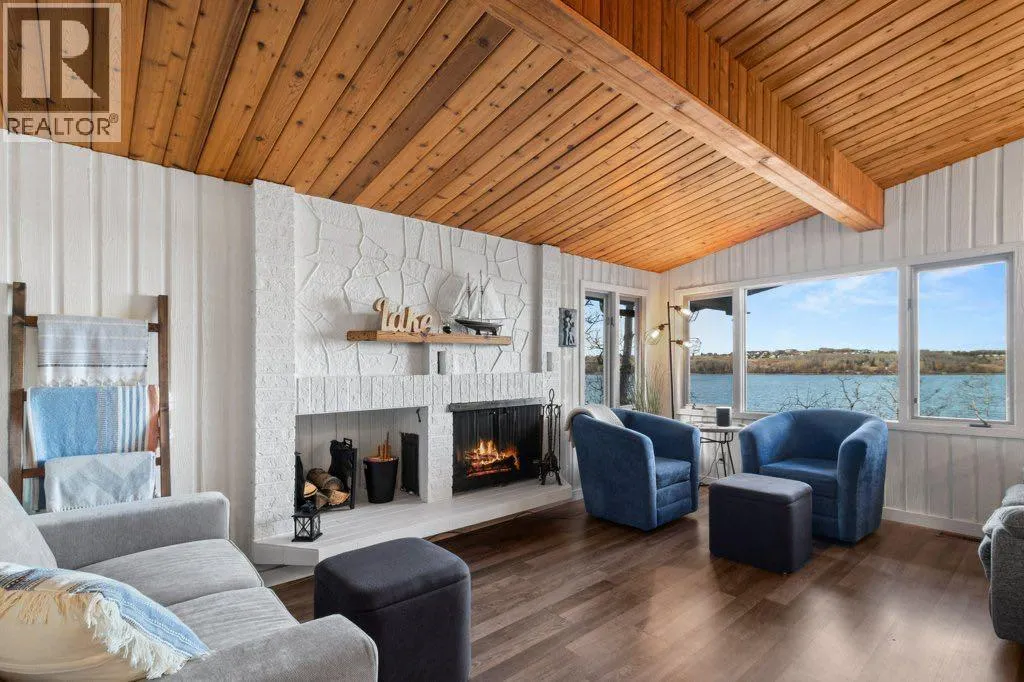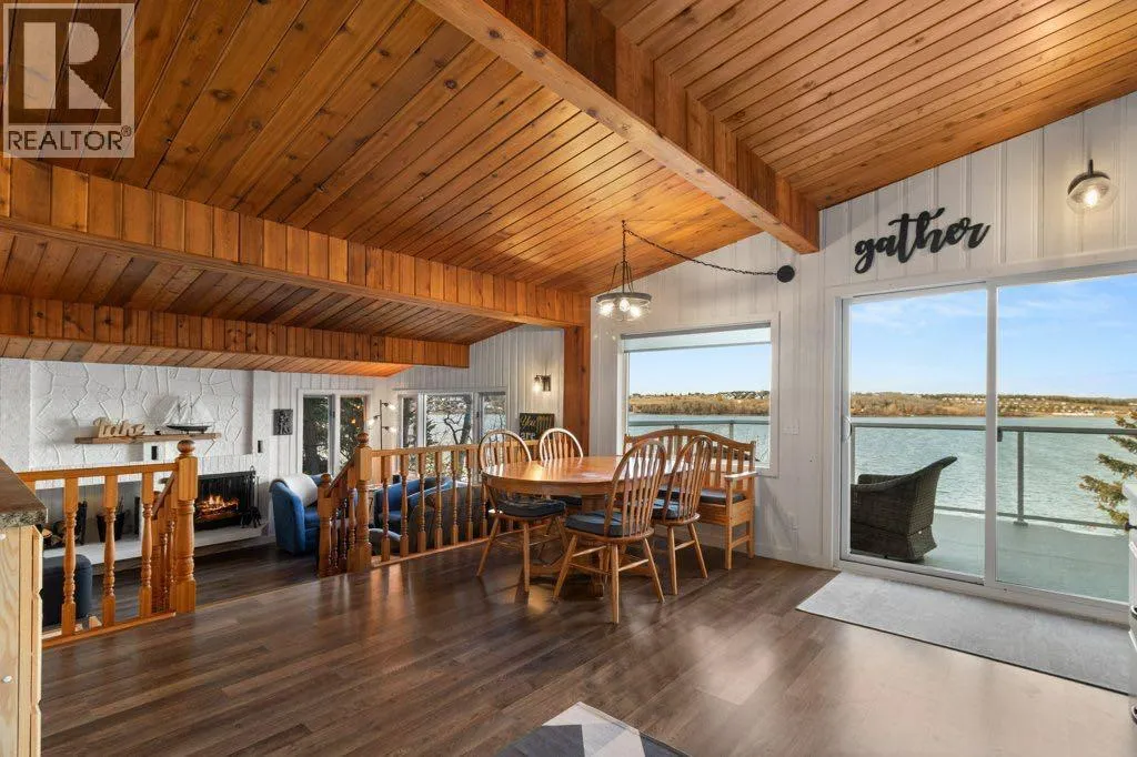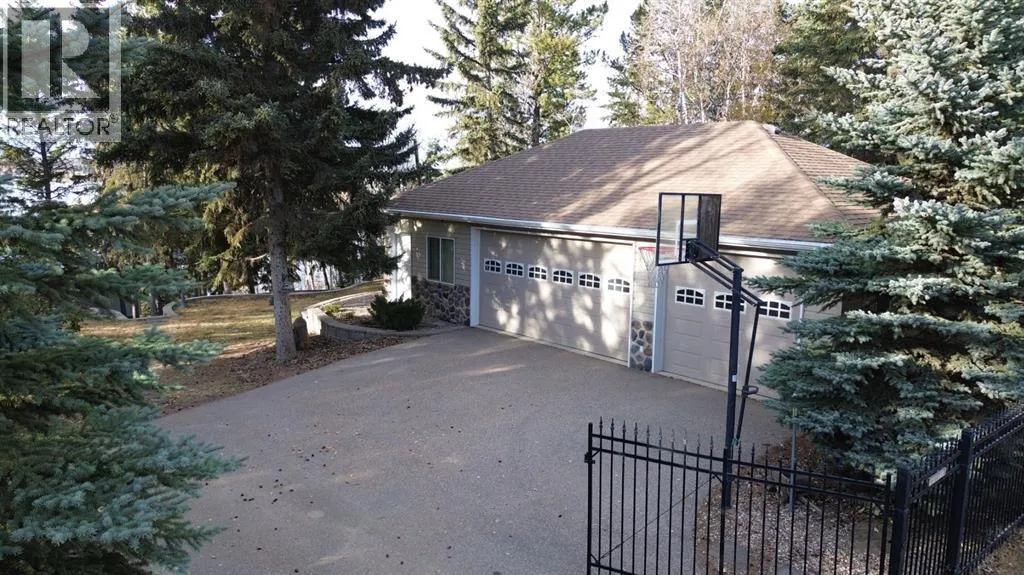 LAKEFRONT PARADISE! Beautiful mature spruce trees and extensive landscaping cover this one of a kind property. Cobblestone pathways lead to your awesome walkout Lake House. Everything finished and ready for year round fun including a low maintenance floating dock system. Easily one of the best views on the lake from your top and lower decks. Huge 26x42 detached garage to store your boat and park your vehicles. There's a separate space with 2pc bath for extra visitors off the side of garage. Private water well & underground sprinkler system. Extensive landscaping and stunning view points. Upgraded septic system with lift station and large 3100 Gal holding tank, top of the line instant hot water heat system, upgraded electrical panel and a fully serviced RV site with sani-dump. Inside your lake house, vaulted cedar ceilings, fireplace, two decks, three bedrooms, walkout, heated tiles in bathroom floor and much more. Both upper and lower decks/sunroom have been recently rebuilt. Enjoy the beautiful lakefront view from the fully enclosed Sunscapes sunroom. Boat house and level lakefront area to soak up the rays and watch the family water sports. This is your golden opportunity with an amazing 100 ft of lakefront. Sleeps up to 10 or more guests! Property sells fully furnished and turn key. Beautiful 18 hole golf course, lakefront lounge and more directly across the lake. This is a West Facing property that benefits from stunning sunsets and warm sunshine. Pine Lake is very popular for all water sports and known for its excellent fishing. This is a cottage for all seasons. Boat dock/ lift & Lawn mower included. All this only 90 minutes from Calgary, 20 minutes from Red Deer & 2hrs from Edmonton. (id:27476)