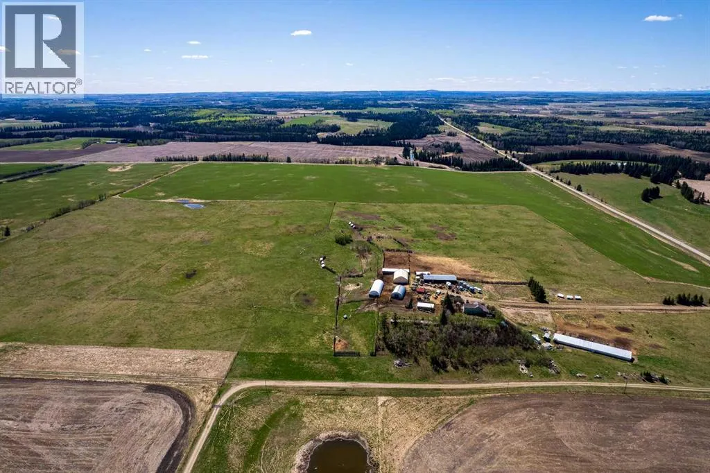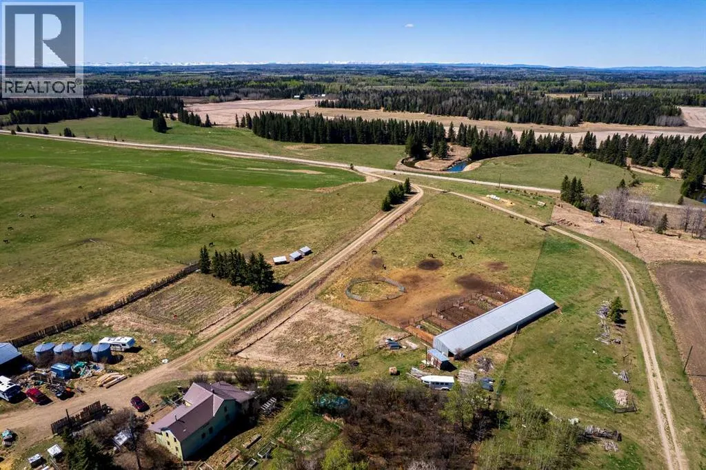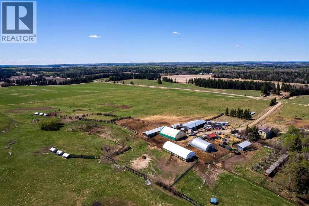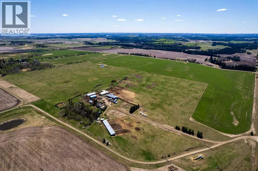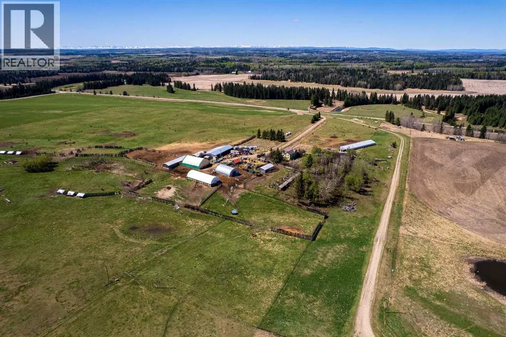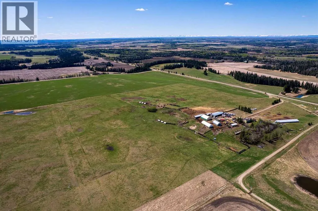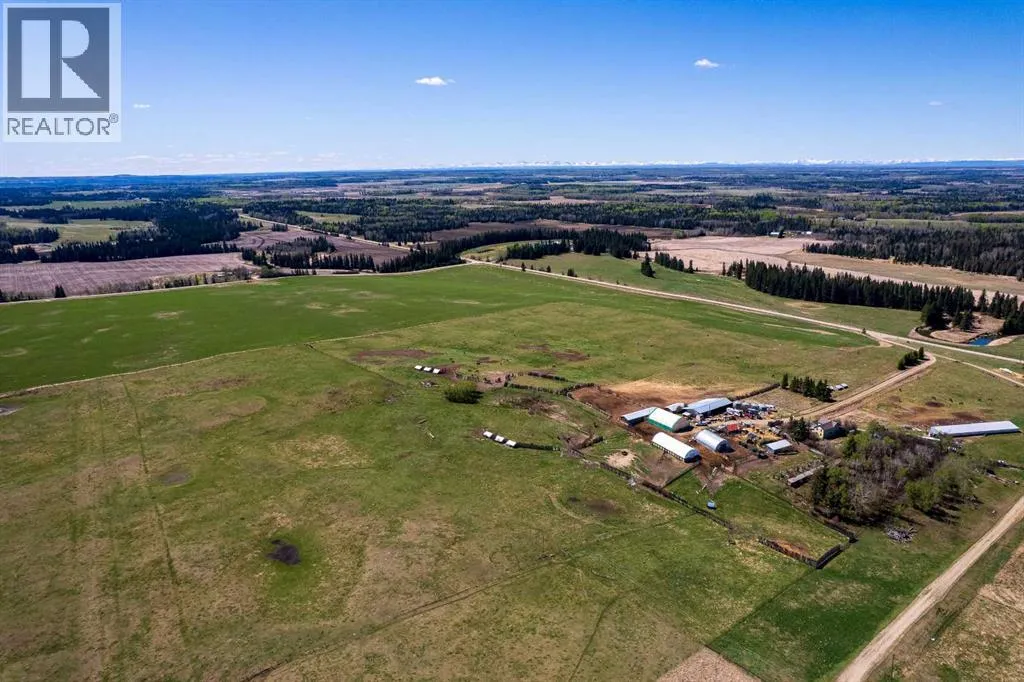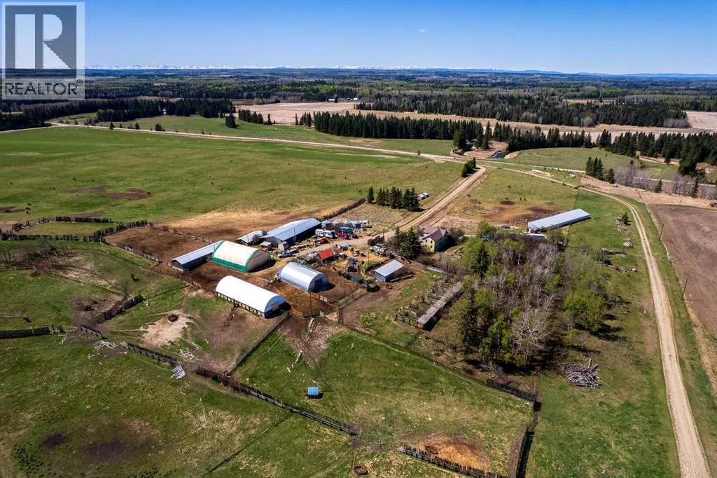 158 Acres â Two Titled Parcels in Prime Central Alberta land with Rocky Mountain ViewsThis expansive 158-acre property in Red Deer County is a rare and versatile offeringâtwo separate titles combine to create a unique blend of productive farmland, private pasture, and homestead potential, all set against the stunning backdrop of Albertaâs Rocky Mountains.Land Breakdown:74.44 acres of cultivated cropland83.45 acres of private pasture and homestead landKey Features:Fully perimeter-fenced and turnkey for livestockComplete high-quality steel corral system and cattle-handling setupPerfect for farming, ranching, or a rural business ventureIncredible privacy, yet easily accessible via gravel roadWhether youâre looking to expand your agricultural operation or build a quiet country lifestyle, this property offers exceptional functionality, flexibility, and long-term value.Heritage Home & UtilitiesThe original farmhouse is rich with character, built from solid fir and topped with a durable tin roof. While it requires updates, itâs a solid foundation for customization. The main floor includes a kitchen, living area, sunken family room, one bedroom, small bathroom, and laundry room. Upstairs youâll find three more bedrooms and a spacious rumpus room.Included appliances: fridge, stove, dishwasher, washer, and dryerHeating: Wood-burning stove for cozy, year-round comfortWater: Three wells (1 soft, 2 hard), with filtration systemSeptic: Updated in 2017Infrastructure for Serious AgricultureBarn: Heavy-duty metal barn with 8 large birthing/bull stalls, power, water, and a bathing areaQuonsets:Large (40' x 120') â 12 metal horse stalls, poweredMedium (40' x 60') â Straight-sided, ideal for riding, auctions, and eventsAdditional Outbuildings:120-ft metal shop with multiple bays, drive-through access, and oil pit200-ft bull shelter with 6 paddocks, auto-waterers, and steel fencingSeveral three-sided livestock shelters (both newer and older)Livestock System:16 interlocking pastures14 auto-waterers on cement pads (not all in use)Storage:4 steel grain bins3 large fuel tanks includedRecreational Value & Lifestyle:Located in Albertaâs famed recreational corridor, this property offers great access to outdoor adventureâtrout fishing along the Raven River, trophy hunting, hiking, and horseback riding are all nearby.Nearby Attractions & Distances:Swan Lake â 40 minBanff â 1.5 hrsCochrane â 1 hrCalgary International Airport â 1 hr 15 minEdmonton International Airport â 1.5 hrsSpruce View â 8 minInnisfail â 20 minOlds â 35 minRed Deer â 40 minCommunitySpruce View is a friendly rural community offering amenities like grocery stores, restaurants, and regular local eventsâeverything you need, close to home.Property Taxes: $2,261.85 (id:27476)