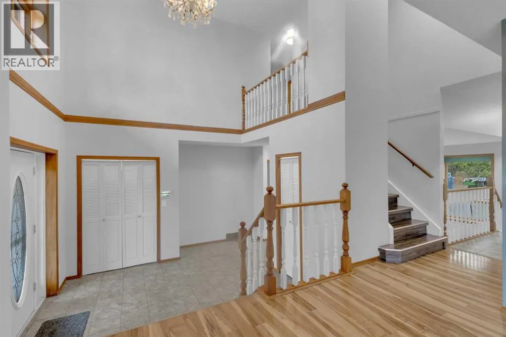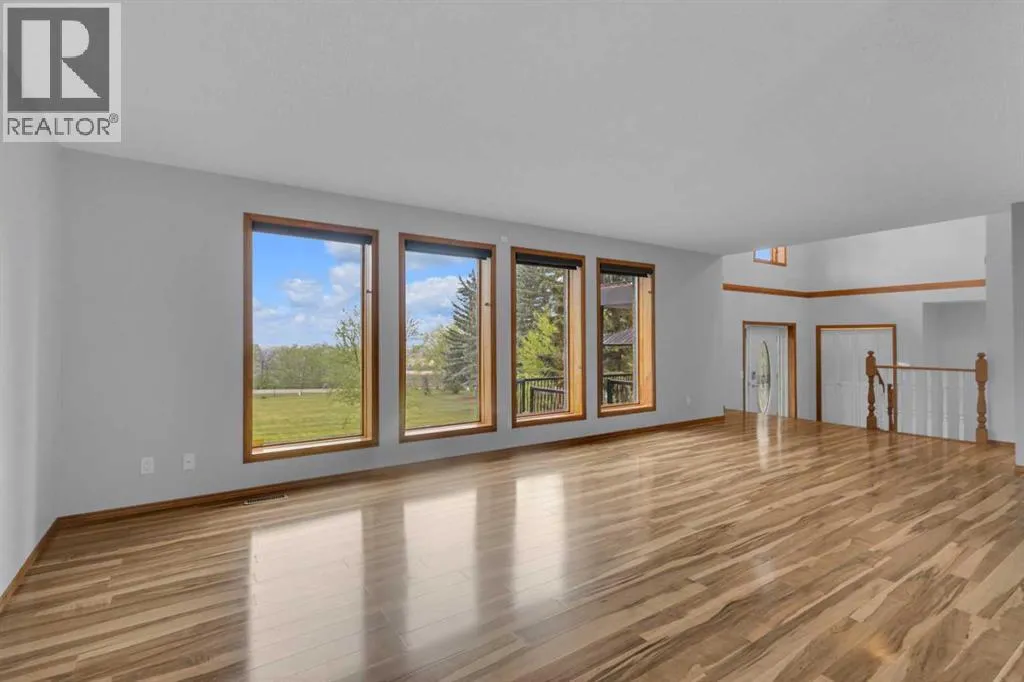 Experience the perfect blend of country tranquility and city convenience in the sought-after community of Springvale Heights, just minutes from Red Deer. This remarkable acreage captures sweeping views of the Rockies and the city, offering both peace and proximity. Built with architectural foresight and quality, the home features 9â energy-efficient walls and a long list of recent renovations. Step inside through the impressive front entryway, where soaring ceilings set the tone for the elegance throughout. Designed with both comfort and functionality in mind,the home offers three convenient entrances. The chef-inspired kitchen is the heart of the homeâbeautifully upgraded with granite countertops, modern stainless steel appliances (including a gas stove), redesigned cabinetry, crown molding, and a stylish backsplash. A welcoming dining area and formal living room, both with upgraded flooring, create the perfect space for gatherings. The cozy family room features a wood-burning fireplace and leads to a versatile multi-purpose area with extra storage, a renovated laundry room, a bathroom, and direct garage access. The main-floor primary suite is your private retreat, showcasing a spa-inspired ensuite with marble counters,a jacuzzi tub, and a walk-in closet. Upstairs, a second primary suite features balcony accessâperfect for sunset views or watching fireworksâplus an elegant ensuite with a double quartz vanity and subway-tiled shower/tub combo. Two additional bedrooms and another full bathroom complete the upper level. The lower level is ideal for family fun or entertainingâperfect for a home theatre, games room, or teenage hangout. It also includes a large mechanical/storage room with two brand-new furnaces and a new hot water tank. Car enthusiasts will love the attached heated garage with radiant heat, 14-foot ceilings, new 10x10 overhead doors, and 220V wiring. Outside, enjoy the two expansive west-facing decks, mature landscaping, fruit trees, and a fully fence d yardâideal for kids, pets, and entertaining. Thereâs ample space for trailers, campers, and extra parking. Located just three miles from Red Deer, this property offers pavement right to your door, access to school bus service, and community amenitieslike a playground and ball diamonds. With grocery and food delivery available, you truly can have the best of both worlds. This isnât just a homeâitâs a lifestyle. Come see why Springvale Heights is one of Central Albertaâs most desirable acreage communities. (id:27476)