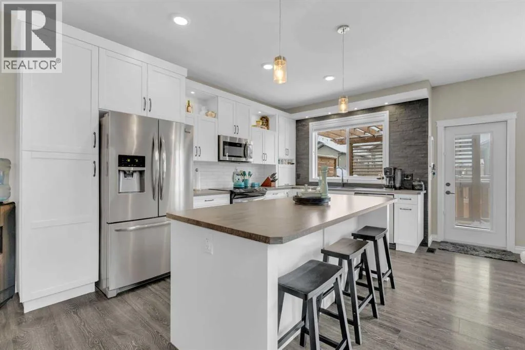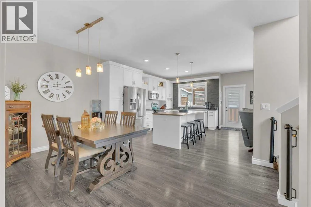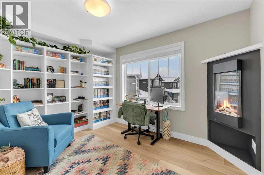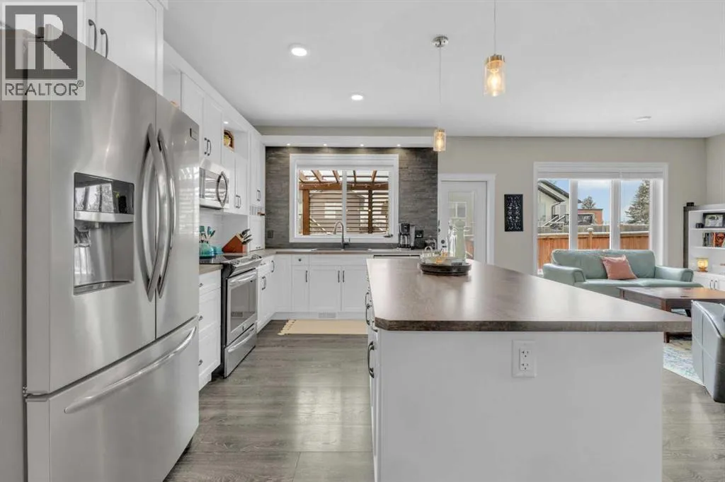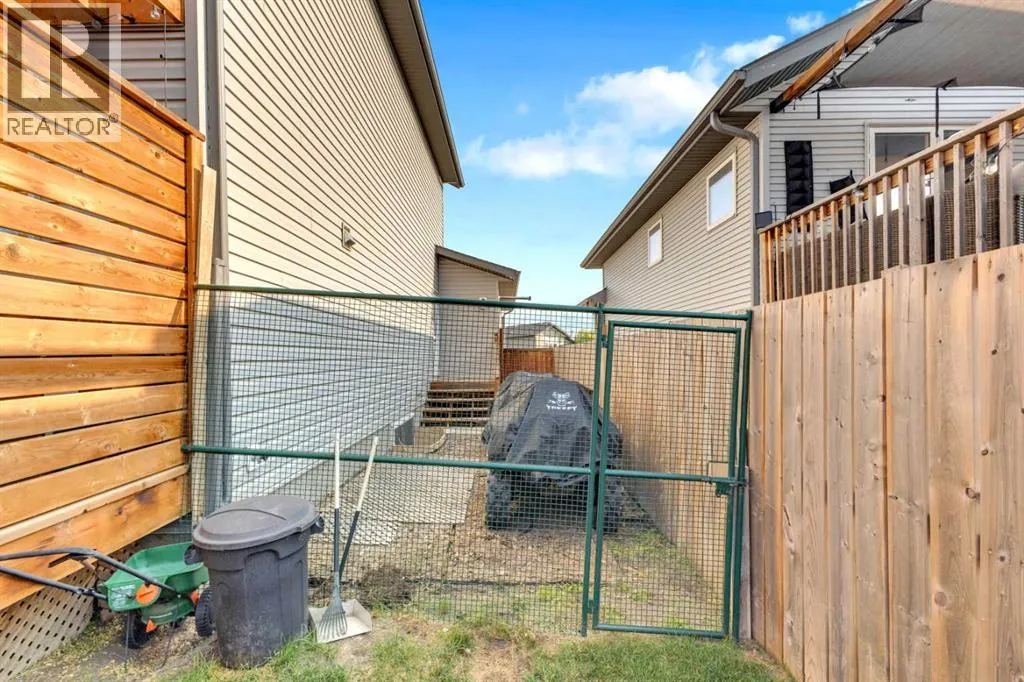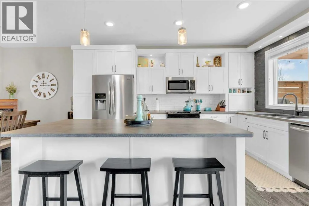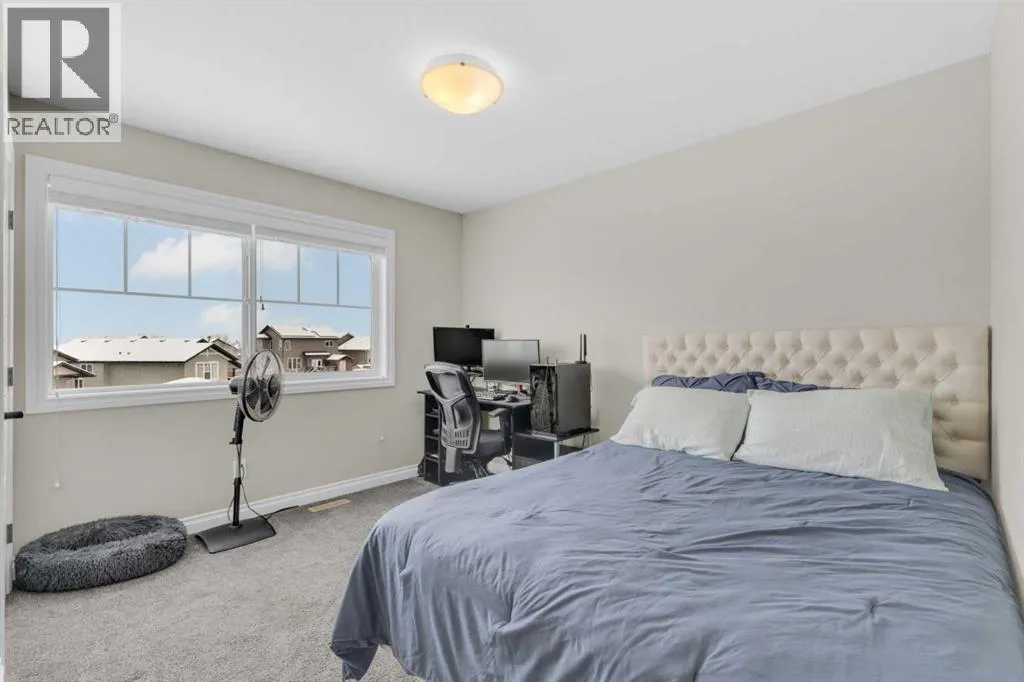 Welcome to this stunning property situated on a spacious pie-shaped lot, offering both an attached heated garage and a separate detached garage â perfect for anyone needing extra parking or workspace.Built in 2018 (detached garage built in 2024), this home features a thoughtfully designed main floor with an inviting open-concept layout that seamlessly connects the kitchen, dining, and living area. The kitchen impresses with white cabinetry, a large island, stainless steel appliances, a double silgranit sink, a kick sweep (central vac) and a garden door leading to the deck and fully fenced yard.The cozy living room centers around a gas fireplace with custom built-in wall unit, creating the perfect gathering spot. A convenient mudroom off the garage offers access to a dog run, and a stylish 2-piece powder room completes the main level.Upstairs, youâll find three bedrooms, two full bathrooms, and a laundry room that connects directly to the primary suiteâs walk-through closet and ensuite bath â a truly functional design. One of the bedrooms has been converted into a beautiful home office with built-in shelving and an electric fireplace.The unfinished basement is ready for your personal touch, complete with rough-ins for a future bathroom.Outdoor living is a dream with a deck featuring a pergola and privacy shades, a shed, and an extra-wide concrete driveway providing plenty of parking space. Enjoy comfort year-round with central A/C and a heated front garage. (id:27476)