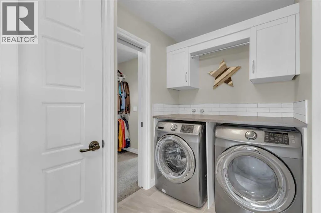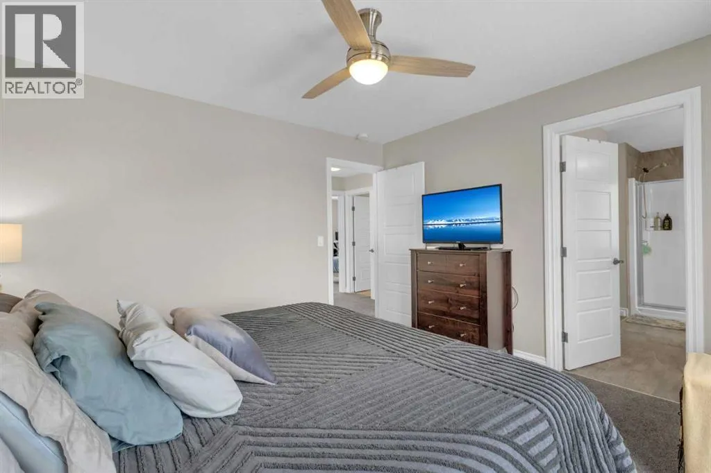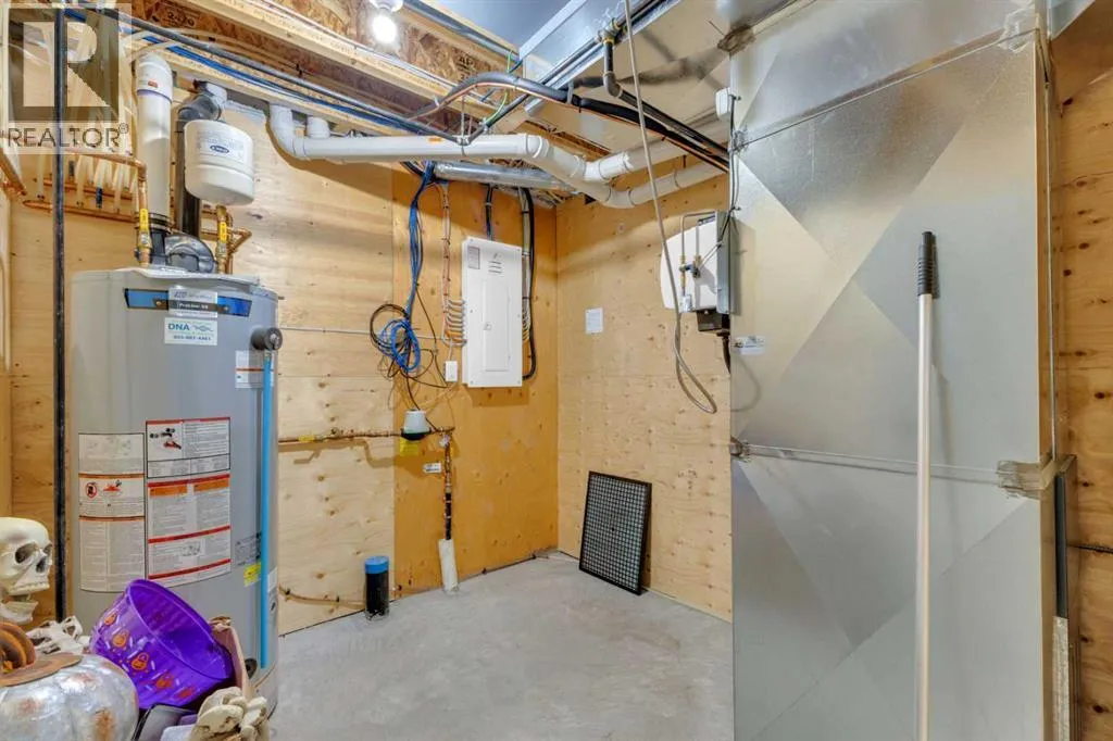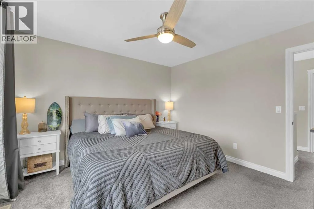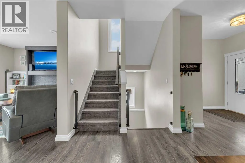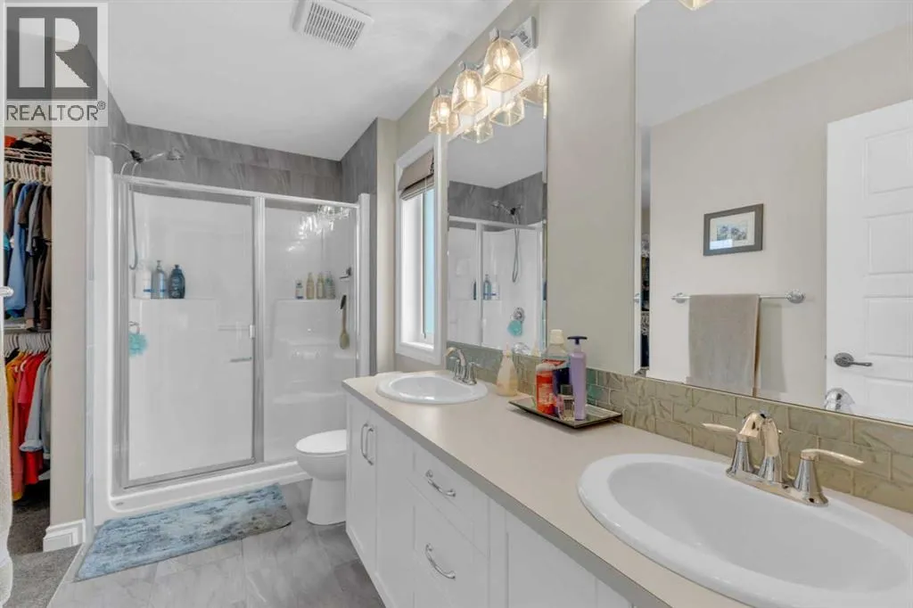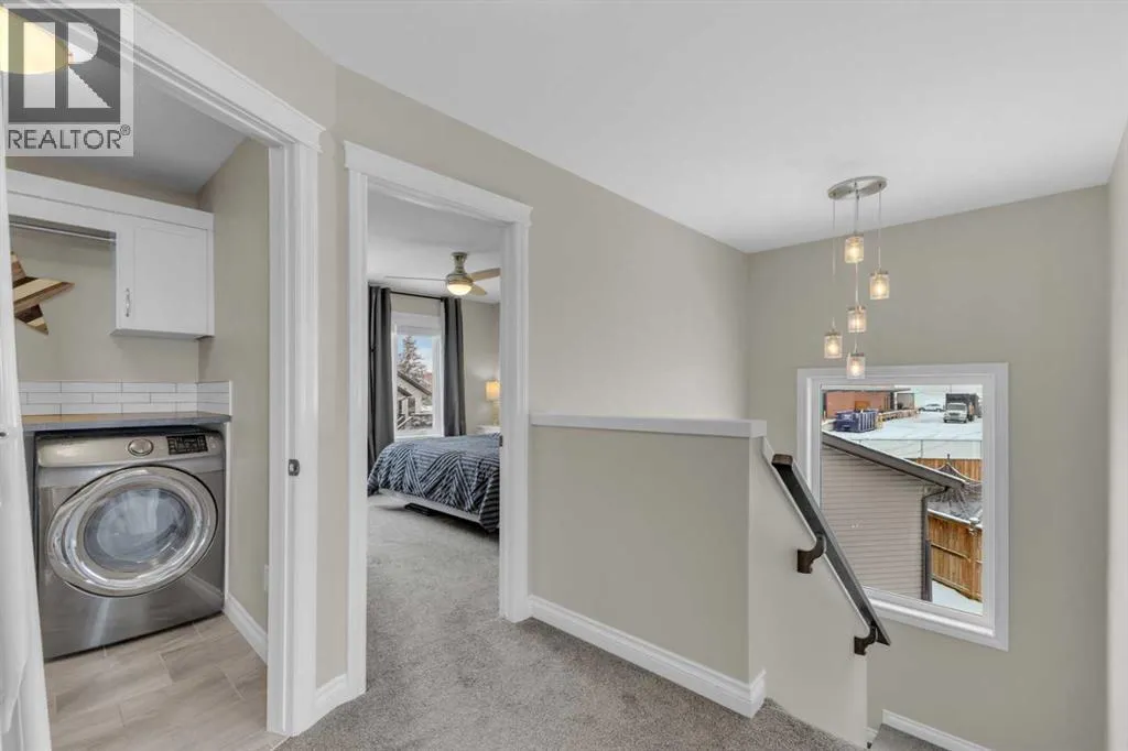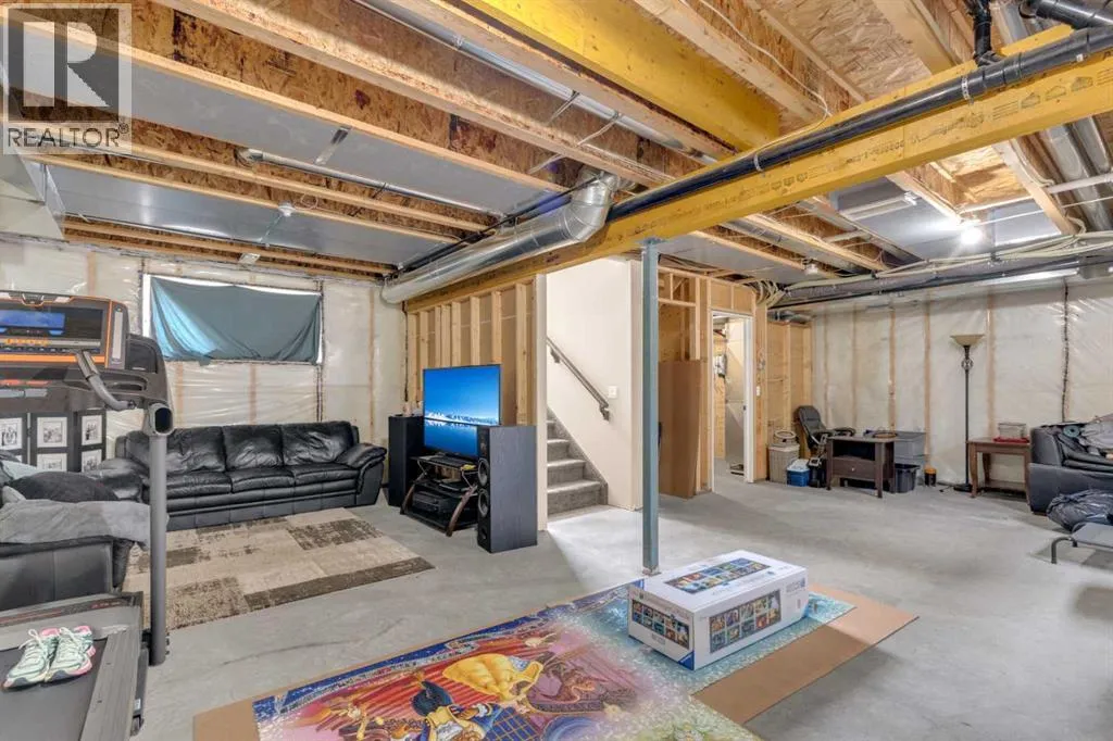 Welcome to this stunning property situated on a spacious pie-shaped lot, offering both an attached heated garage and a separate detached garage â perfect for anyone needing extra parking or workspace.Built in 2018 (detached garage built in 2024), this home features a thoughtfully designed main floor with an inviting open-concept layout that seamlessly connects the kitchen, dining, and living area. The kitchen impresses with white cabinetry, a large island, stainless steel appliances, a double silgranit sink, a kick sweep (central vac) and a garden door leading to the deck and fully fenced yard.The cozy living room centers around a gas fireplace with custom built-in wall unit, creating the perfect gathering spot. A convenient mudroom off the garage offers access to a dog run, and a stylish 2-piece powder room completes the main level.Upstairs, youâll find three bedrooms, two full bathrooms, and a laundry room that connects directly to the primary suiteâs walk-through closet and ensuite bath â a truly functional design. One of the bedrooms has been converted into a beautiful home office with built-in shelving and an electric fireplace.The unfinished basement is ready for your personal touch, complete with rough-ins for a future bathroom.Outdoor living is a dream with a deck featuring a pergola and privacy shades, a shed, and an extra-wide concrete driveway providing plenty of parking space. Enjoy comfort year-round with central A/C and a heated front garage. (id:27476)