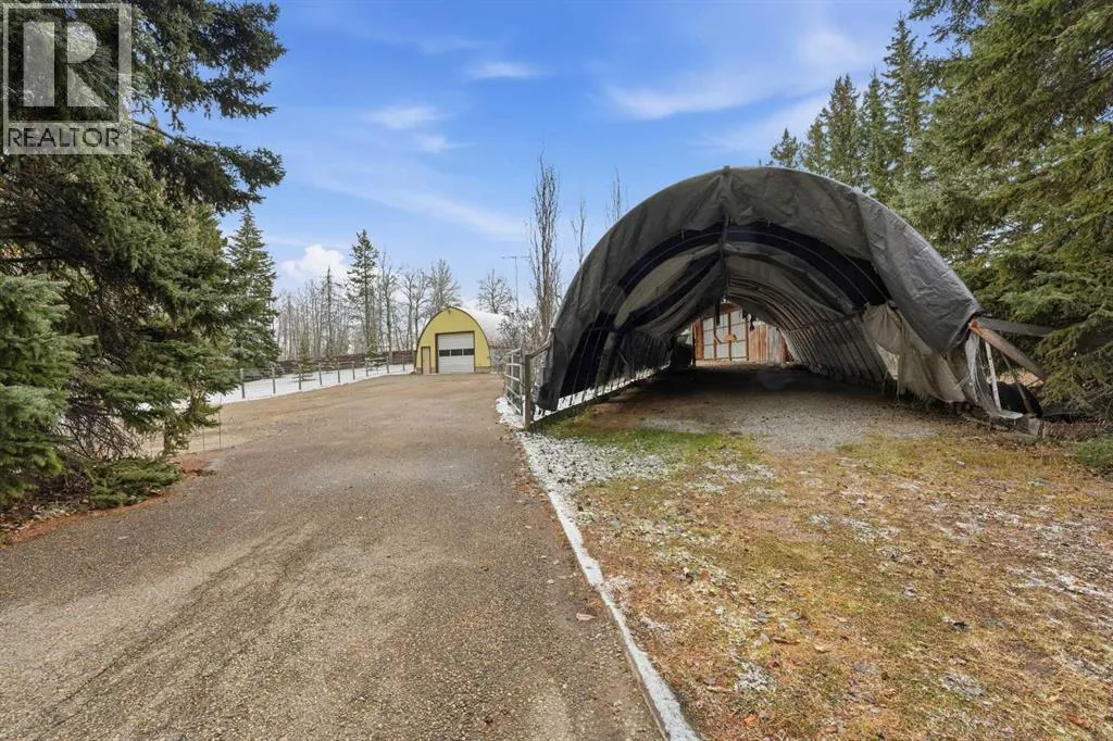 Your Own Private Slice of Country Paradise. Tucked away at the end of a quiet dead-end road in Red Raven Acres, this 1.2-acre property is surrounded by mature spruce trees, offering the peace and privacy youâve been dreaming of. The spacious double-wide modular home is ready for your personal touch â bring your vision and make it shine! Inside, youâll find a large primary bedroom with a 4-piece ensuite and private deck, the perfect spot to enjoy your morning coffee while soaking in the sounds of nature. Major updates have already been done for you such as brand new septic tank and mound (2024) and hot water tank (2019). Outside, youâll love the 24â x 32â Quonset with a concrete floor, 220 wiring, air compressor, in-floor heat and hot water tank â ideal for projects, hobbies, or extra storage. Thereâs also a 16â x 40â open-faced pole shed (metal clad) plus a large canvas storage shelter for all your extras. This property offers the perfect blend of seclusion, space, and potential â a peaceful retreat just waiting for someone to make it their own. (id:27476)