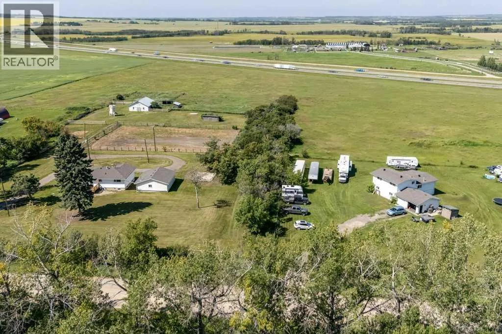 Whatâs better than one house on a property? Two houses AND two double garages! All located on 29.44 acres in a prime location! Enjoy easy access to Highway 2, Innisfail, and Penhold, or an easy, short drive to the south end of Red Deer making commutes for work easy! House #1 is a 3-level split offering just over 1,600 sq. ft. above grade with a very unique layout. The grade-level entry opens to a bright living room and a convenient 2-piece powder room-perfect for washing up after working outdoors. A few steps up youâll find the kitchen, dining, and sitting area with newer vinyl plank flooring and lots of cabinet space. Another short staircase leads to three generous bedrooms, including the primary, and a 4-piece bath. The undeveloped basement provides plenty of storage or the opportunity to create your own design that meets your needs. A double attached garage completes this package. House #2 is a recently renovated 3 bedroom bungalow (with the possibility of a 4th) featuring so many upgrades! New vinyl windows, vinyl plank flooring, both 4-piece bathrooms updated, fresh paint, new basement flooring, PEX plumbing, a new electrical panel, siding, shingles and more! The oversized double detached garage is heated and has its own electrical panel. The property also includes a barn with three tie stalls and three (possibly four) regular stalls, a well at the barn, and a second well at the house. The two homes share the septic tank and field. New post-and-rail fencing lines the access side of the property, and each homesâ private lane way has views of the rolling fields that are simply beautiful. This rare setup offers endless possibilities; rental income, hobby farming- all in an unbeatable location! (id:27476)