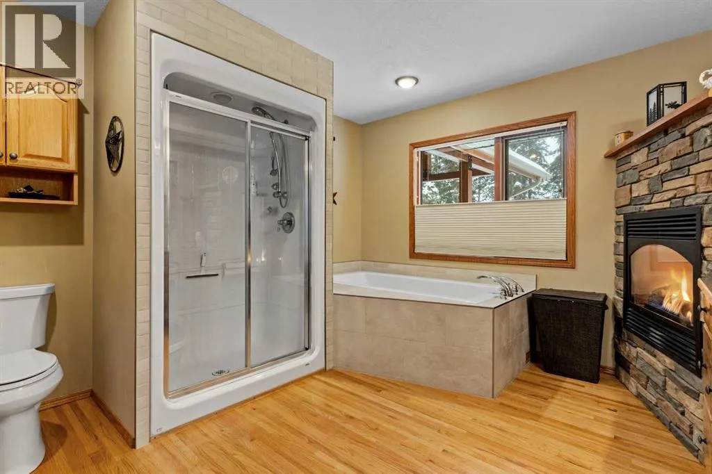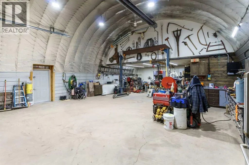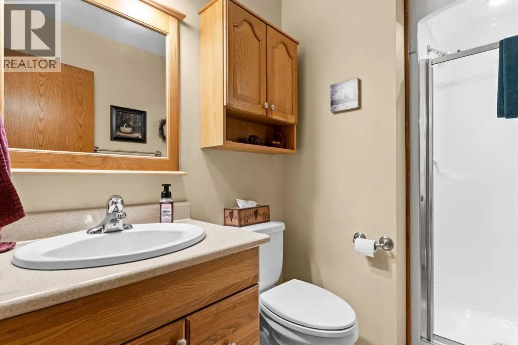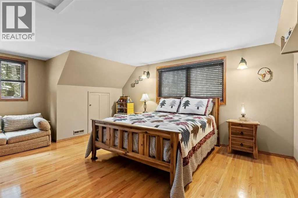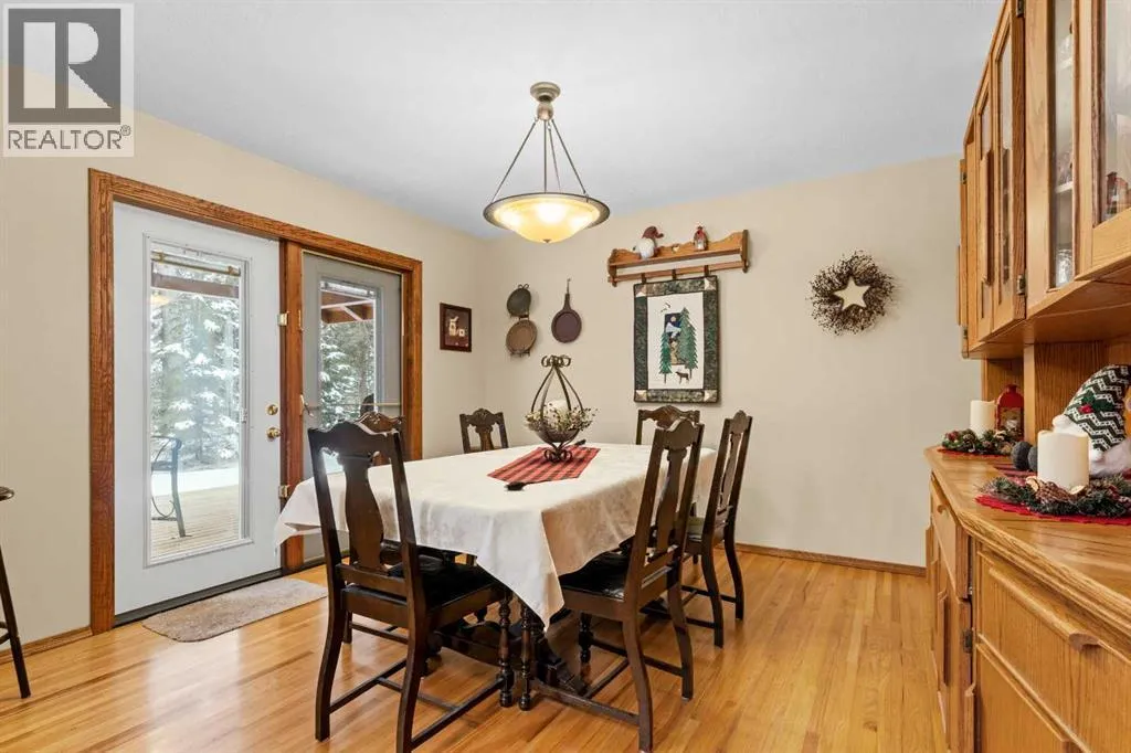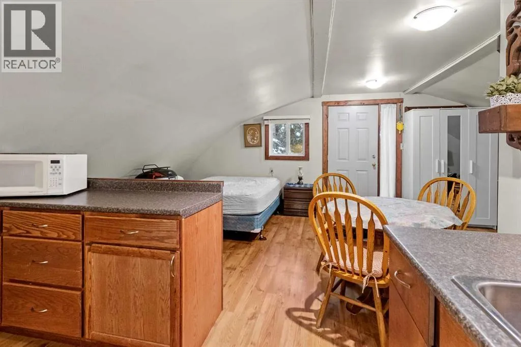 Welcome to your very own PRIVATE RETREAT! Offering 2,400+ Sq Ft of developed space in this 1.5 story home with 4 bedrooms & 3 Bathrooms! This inviting, lodge-style home is tucked among towering evergreens and wrapped in picture perfect tranquility. The exterior showcases warm half log siding, a striking stone chimney, and charming dormer windows, all framed by pristine forest views. There is an expansive rear concrete patio and this property is LANDSCAPED and WELL MAINTAINED. The main floor consists of beautiful HARDWOOD FLOORS and a wing design with the primary bedrooms and 4-piece ENSUITE on one side and another bedroom, 3-piece bathroom and family/rec room on the opposite side. Connecting the two is a spacious kitchen with center ISLAND, SS appliances and plenty of drawers, cabinetry and counter space. The kitchen is open to the cozy dining room and comfortable living space. Features: MAIN FLOOR LAUNDRY, plenty of STORAGE spaces and 3 FIREPLACES (2 wood burning & 1 gas in the primary ensuite). Upstairs houses 2 generously sized bedrooms, a storage/flex room and a 4-piece bathroom. The crawl space houses the utility components and offers even more storage. Outside you will find immaculately maintained landscape and a dedicated firepit area & GARDEN! The DETACHED GARAGE/SHOP was added onto and provides ample storage, parking, workshop space and is complete with 2-piece bathroom for added convenience. The STUDIO STYLE SUITE (Illegal, but County knows the suite is there) has an everything you need including a 3-piece bathroom. Great for guests accommodation! Great location just off pavement and just 15 minutes to Glennifer Lake and under 20 minutes to Bowden! Wheelchair accessible. (id:27476)