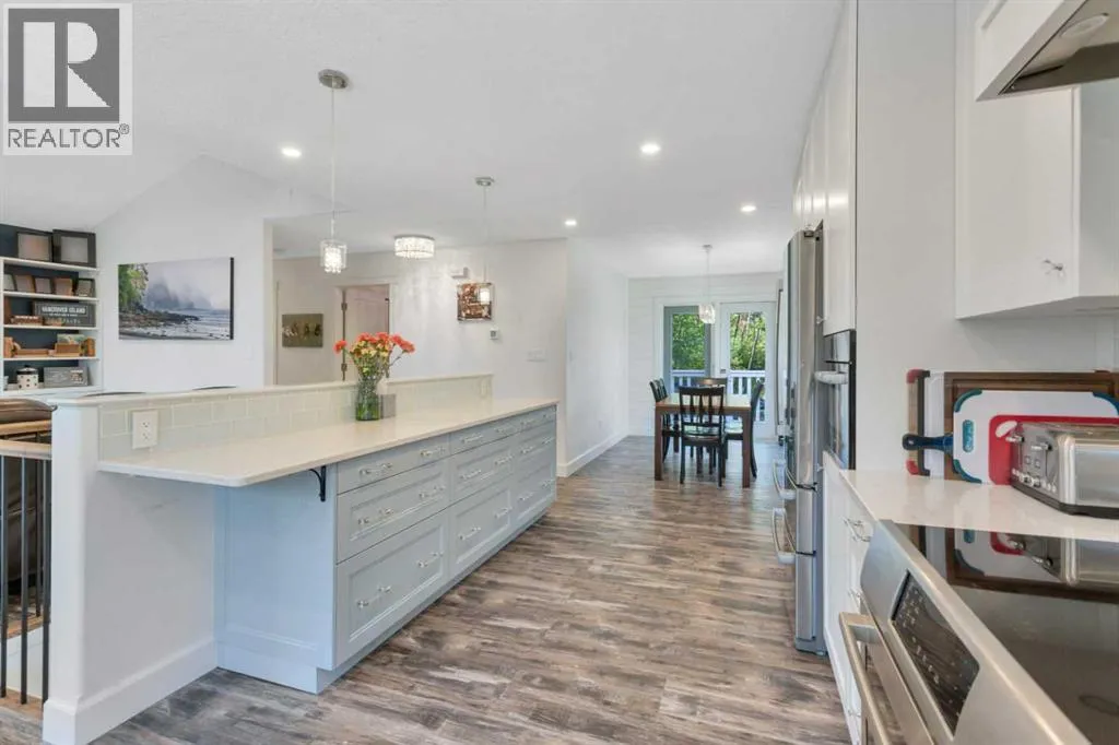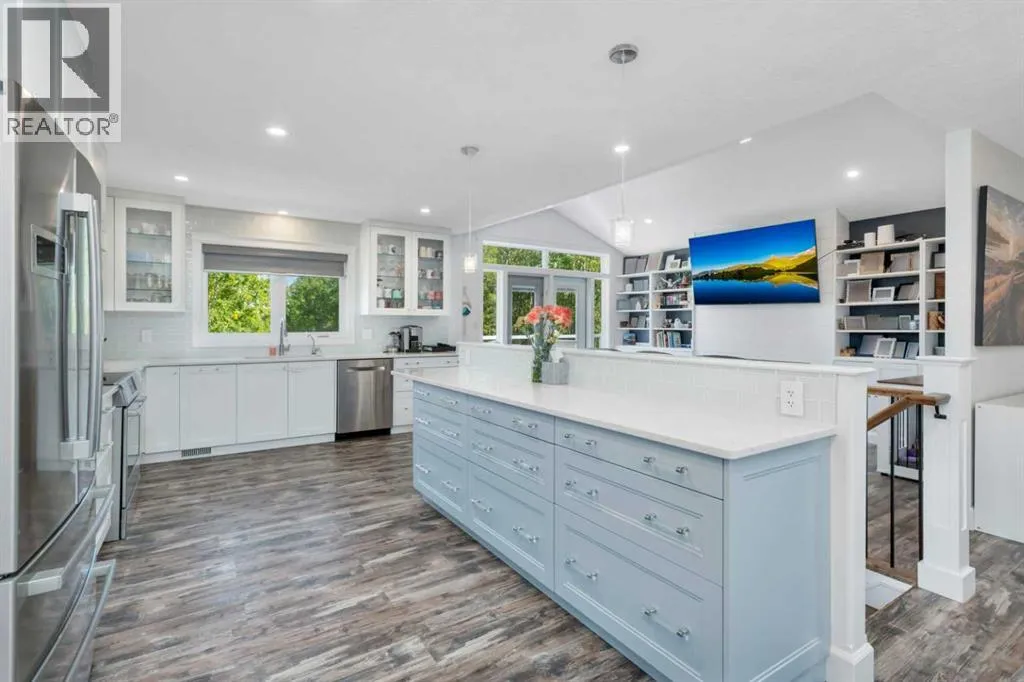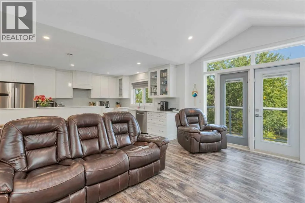 This stunning acreage is located in the Blindman Ridge subdivision, just minutes from Red Deer and all on pavement. Private, tranquil and surrounded by trees, this walk-up bungalow has been updated and modernized and is well suited for families or your dream retirement home. There is a den/bedroom at the main level entrance with a gorgeous 3 piece bathroom with beautiful tiled shower. The family room is bright and spacious with cozy gas fireplace. The Laundry area and mudroom offers tons of space and storage closets with access to the backyard and to both the heated attached 21x20 garage and the 36x26 heated shop c/w 10' ceilings and 220 power. Upstairs is an open concept and very bright living space with vaulted ceilings and built in cabinetry in living room. The functional kitchen space has quartz counter tops, tons of cabinets and high end s/s appliances. Windows surround the dining area allowing beautiful views to the outdoors. There are 3 bedrooms on the main floor. The primary is a good size with built in wardrobes offering tons of storage & a beautiful 4 piece ensuite with tiled shower. 2 additional bedrooms share the spacious 4 piece bathroom with soaker tub. The deck from the living room has been completely redone and there is an expansive lower level deck in the backyard with hot tub and lots of room for outdoor furniture. The surrounding outdoor space has a fenced area with dog kennel and there is a play center and trampoline for the kids. There is ample space for additional outbuildings & RV parking. Minutes to both Red Deer & Sylvan Lake, yet far enough away to be peaceful and relaxing, this is a perfect place to call home. (id:27476)