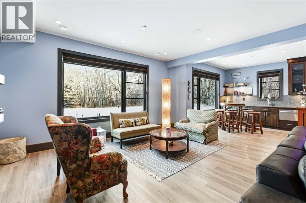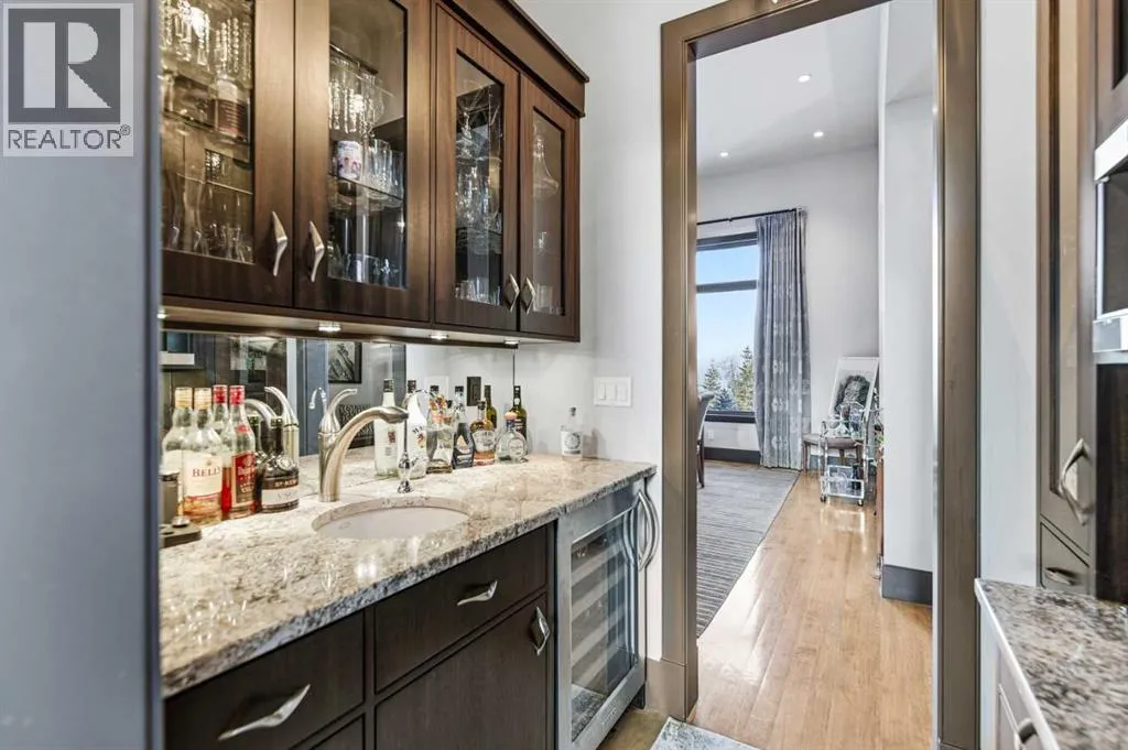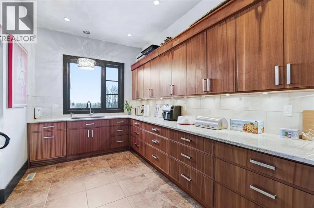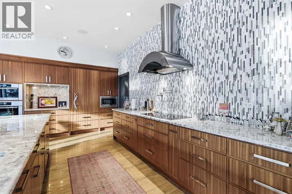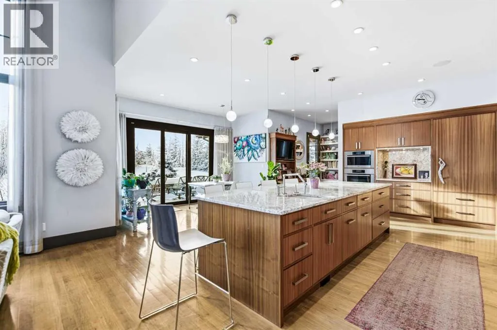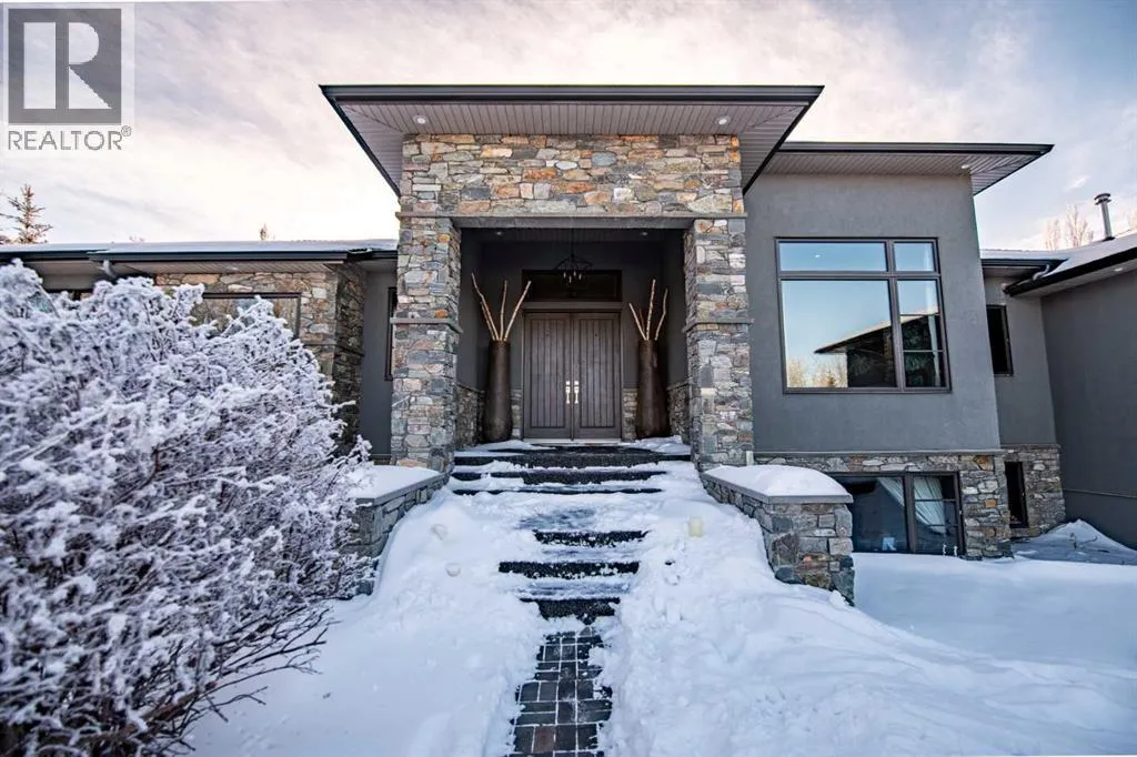 A sophisticated contemporary estate nestled on 1.93 acres, just minutes from the City. BUILT BY BOWOOD, this exceptional bungalow offers approximately 6,000 sq. ft. of refined luxury living, thoughtfully designed with extraordinary attention to detail throughout. A grand entrance welcomes you into the stunning great room, highlighted by a floor-to-ceiling gas fireplace framed by expansive corner windows, creating a bright and inviting space that sets the tone for this four-bedroom, five-bathroom residence. The open-concept layout seamlessly connects to a chefâs kitchen designed for the most discerning culinary enthusiast. Anchored by an impressive 11-foot granite island with prep sink and built-in dishwasher, the kitchen also features custom cherry wood cabinetry DESIGNED & BUILT BY SADONA CABINETS, a built-in refrigerator with designer hardware, induction cooktop, wall oven, steam oven, and a striking glass tile feature wall complemented by a sleek stainless-steel hood fan. A spacious butlerâs pantry with a second dishwasher provides abundant storage and functionality. Off the great room, a walk-through coffee and tea bar leads into the elegant dining room, complete with floor-to-ceiling built-in cabinetry and a large picture window that floods the space with natural light. This bright and airy ambiance extends into the expansive 3 SEASON ROOM featuring vaulted wood-clad ceilings, west-facing windows, a wood-burning fireplace, and a built-in BBQ with hood fanâperfect for entertaining while overlooking the fully landscaped grounds. The luxurious primary suite is conveniently located on the main level and offers a SPA INSPIRED ENSUITE with a deep soaker tub, fully tiled shower, double vanity, and a generous walk-in dressing room with built-in features. Completing the main floor is a private office or additional bedroom, an oversized mudroom and laundry area, and a rare three-car attached garage with additional space for motorcycles or yard equipment. The lower level is designed for entertainment and relaxation, featuring a large TV and games room, wet bar, wine cellar, and dedicated home gym. This level also includes a bedroom with private ensuite, two additional spacious bedrooms, and a full bathroom. Additional highlights include a multi-zone Sonos sound system, whole-home water filtration, main-floor air conditioning, multi-zone in-floor heating, outdoor water feature, pizza oven, and RV parking. This architectural masterpiece is designed to impress, offering an exceptional lifestyle that will captivate guests and inspire everyday living. (id:27476)