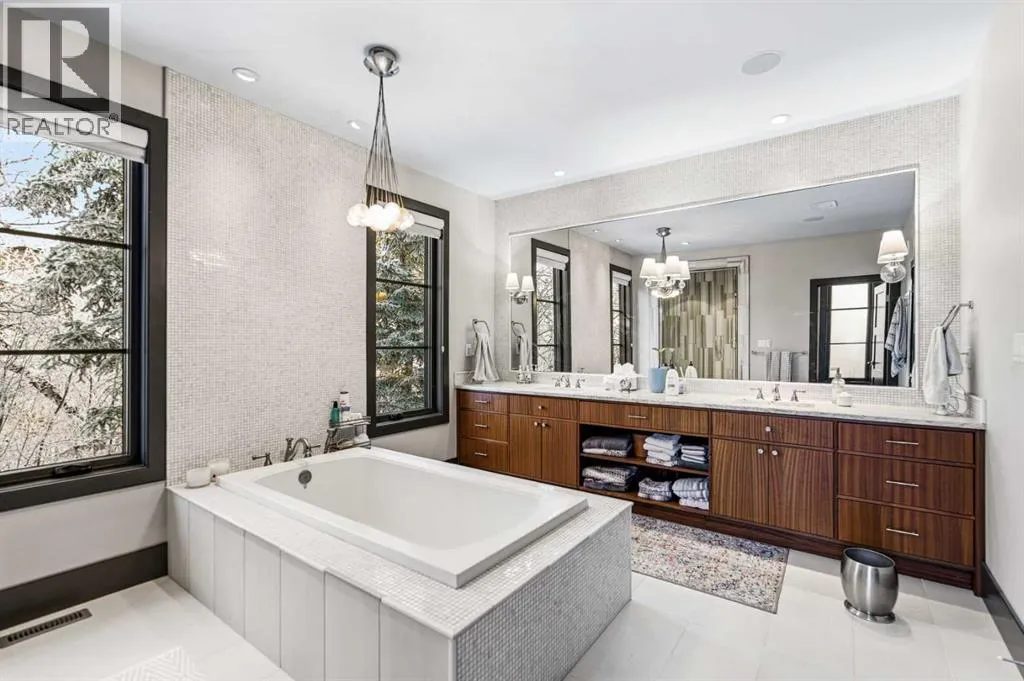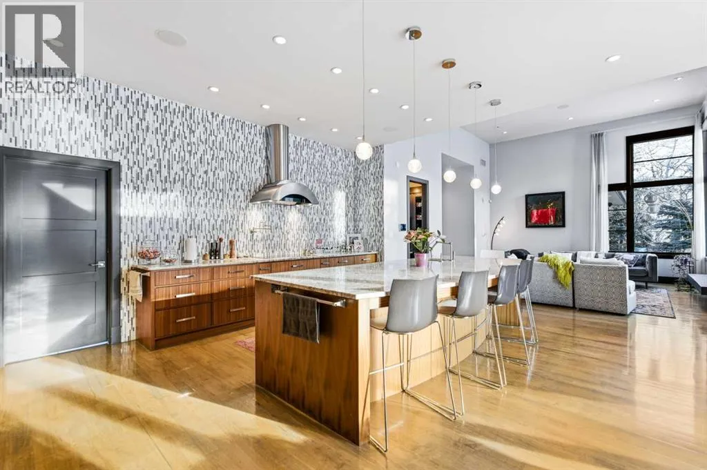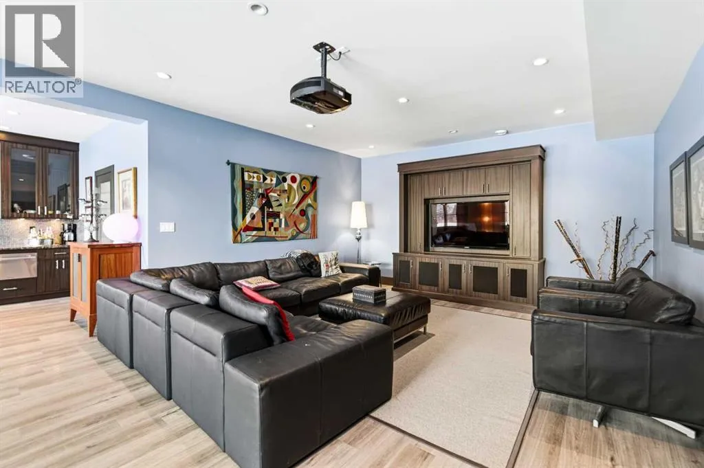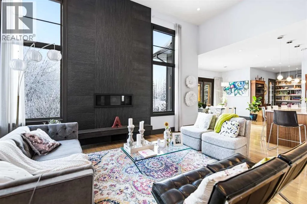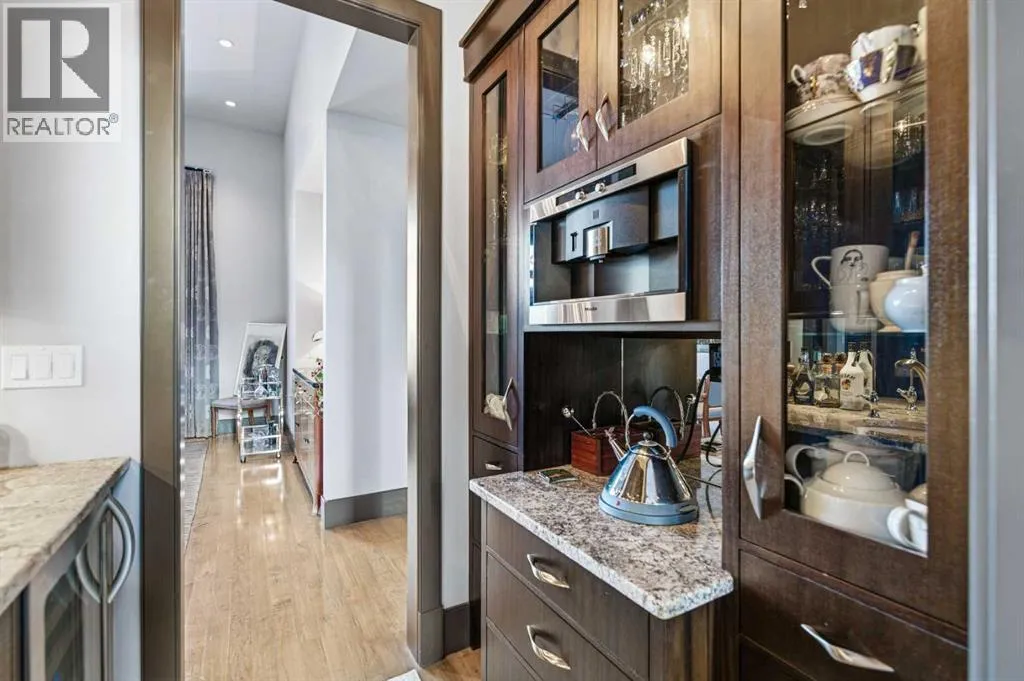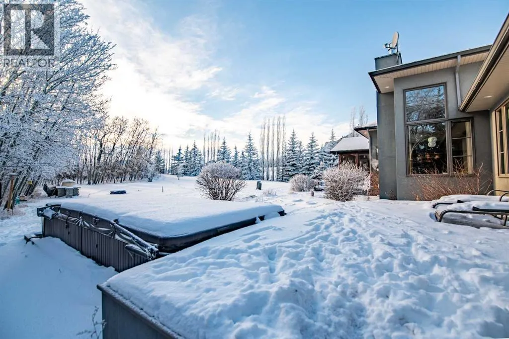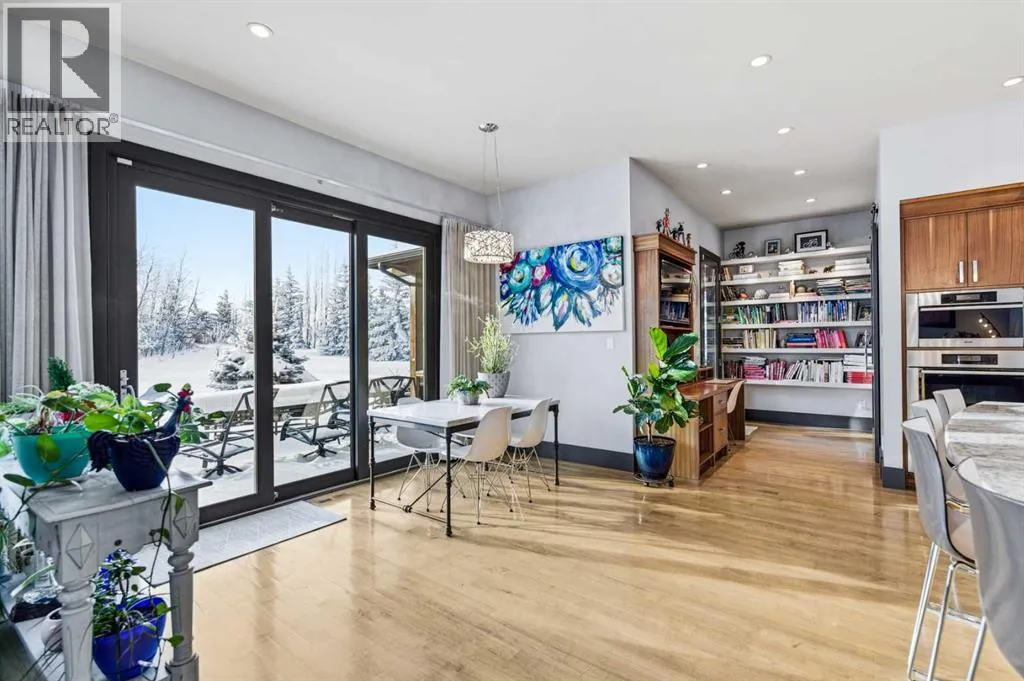 A sophisticated contemporary estate nestled on 1.93 acres, just minutes from the City. BUILT BY BOWOOD, this exceptional bungalow offers approximately 6,000 sq. ft. of refined luxury living, thoughtfully designed with extraordinary attention to detail throughout. A grand entrance welcomes you into the stunning great room, highlighted by a floor-to-ceiling gas fireplace framed by expansive corner windows, creating a bright and inviting space that sets the tone for this four-bedroom, five-bathroom residence. The open-concept layout seamlessly connects to a chefâs kitchen designed for the most discerning culinary enthusiast. Anchored by an impressive 11-foot granite island with prep sink and built-in dishwasher, the kitchen also features custom cherry wood cabinetry DESIGNED & BUILT BY SADONA CABINETS, a built-in refrigerator with designer hardware, induction cooktop, wall oven, steam oven, and a striking glass tile feature wall complemented by a sleek stainless-steel hood fan. A spacious butlerâs pantry with a second dishwasher provides abundant storage and functionality. Off the great room, a walk-through coffee and tea bar leads into the elegant dining room, complete with floor-to-ceiling built-in cabinetry and a large picture window that floods the space with natural light. This bright and airy ambiance extends into the expansive 3 SEASON ROOM featuring vaulted wood-clad ceilings, west-facing windows, a wood-burning fireplace, and a built-in BBQ with hood fanâperfect for entertaining while overlooking the fully landscaped grounds. The luxurious primary suite is conveniently located on the main level and offers a SPA INSPIRED ENSUITE with a deep soaker tub, fully tiled shower, double vanity, and a generous walk-in dressing room with built-in features. Completing the main floor is a private office or additional bedroom, an oversized mudroom and laundry area, and a rare three-car attached garage with additional space for motorcycles or yard equipment. The lower level is designed for entertainment and relaxation, featuring a large TV and games room, wet bar, wine cellar, and dedicated home gym. This level also includes a bedroom with private ensuite, two additional spacious bedrooms, and a full bathroom. Additional highlights include a multi-zone Sonos sound system, whole-home water filtration, main-floor air conditioning, multi-zone in-floor heating, outdoor water feature, pizza oven, and RV parking. This architectural masterpiece is designed to impress, offering an exceptional lifestyle that will captivate guests and inspire everyday living. (id:27476)