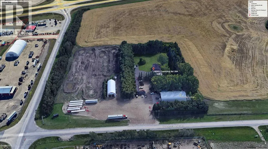 8.48 Acres virtually in town, with income! A perfect Live/ work combo, with this 1412 sq ft, 5 bed, 2 Bi-level home, with 12'x26' single attached garage, COMPLETELY RENOVATED from windows/ roof, interior and baths, painted cupboards and more. Home yard space beautifully landscaped w/ mature trees, asphalt driveway, features a 36'x50' (1,800 sq ft) heated Quonset, attached to that is a 29'x50 (1450 sq ft)office space w/ two offices - perfect for that home-based operation, and toy/ tractor storage all with flexible BSI County zoning. An additional 60'x100' heated quonset with floor drains, mechanic set up - with smaller office/ bath (currently rented out at $4,800/month gross) The expansive packed and gravelled Yard with around two acres of packed yard space, with Newly upgraded Power, Gravel and fencing for 21 energized parking stalls/ truck parking, fully leased on annual lease basis between $150-$200/stall ($3,200/month gross) another 34'x90' heated tent-Quonset w/ gravel pad (rented at $1000/month) . 40' sea-can included, along with over 3.5 acres of future development potential (currently a dirt bike track) which has endless potential. RV rental, sea-can storage yard, all big possibilities (subject to county approval) along with the $9,000/month in gross income, and future possibilities for additional income, along with space to run your own business, makes this property a real winner. Well & septic service the entire property, and is located on one of Red Deer's busiest Industrial Corners, just off HWY 11A! (id:27476)