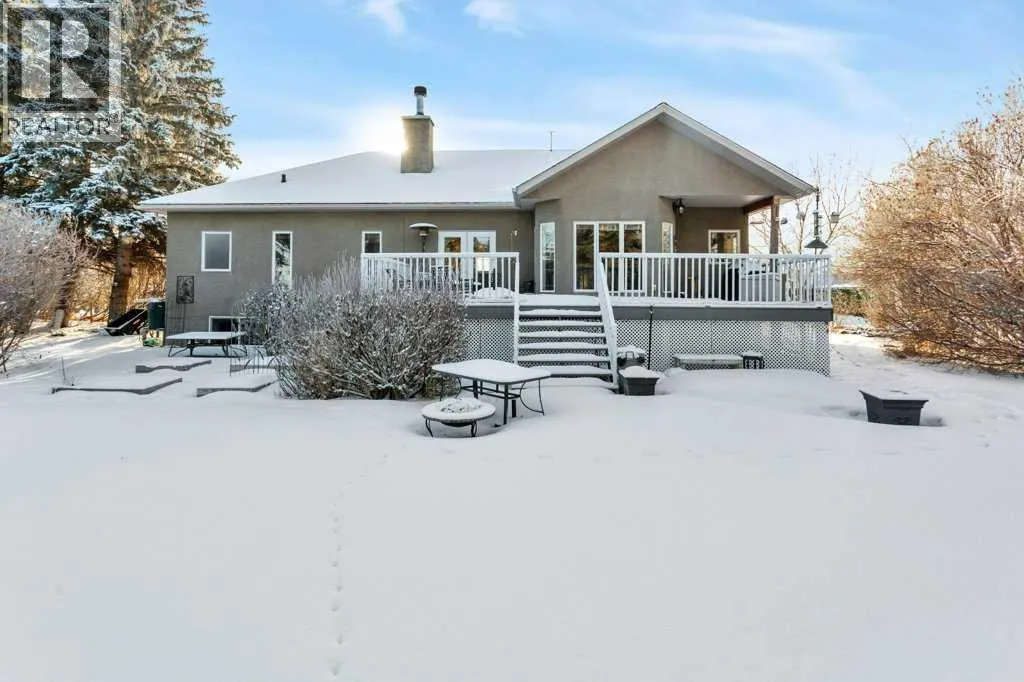 Acreage living at it's absolute best! Have a look at this beautiful excutive custom built bungalow. Room for everyone with this 6 bedroom 3064 sq ft home. Located minutes from Innisfail in the private and quiet county subdivision of Tanamera acres this home is sure to please. Placed on a 1.4 acre lot exterior featues include custom brick finishing exterior, large double attched heated garage. Your own pickleball/tennis court partially paved lane leading to secondary detached 28x30 garage with metal roof, gazebo, firepit, wonderful large rear deck with large concrete pad below all nestled in very private park like setting with mature landscaping and trees. Entering the home you are greeted with an inviting foyer and great room featuring a striking stone faced wood burning heataltor fireplace with built in shelving on both sides. Just as striking the kitchen shows off beautiful maple cabinets, top grade granite,5 burner gas stove and commercial grade hood fan. All set in upgraded hardwood and tile flooring. This bungalow delivers in the bedroom department as well with six bedrooms. Primary bedroom has a no expense spared ensuite with large walk in closet stand alone shower. Main floor also has laundry with sink and 2pce bathroom as you enter from the heated garage. Ten foot ceilings through out the home. Lower level is like entering a whole other home as you are overwhelmed with space, two large bedrooms plus a third bedroom, family room, exersize area and rec room for the pool table if you like. All under the coziness of in floor heat. Mechanical has water treatment/softener set up. Septic features a larger than needed twin tank system. Transferable starlink for your internet. Oh and in case you forgot all this and minutes from town! If you are looking for walk in ready needs nothing excutive style acreage bungalow do yourself a favor come have a look you will not be disappointed. (id:27476)