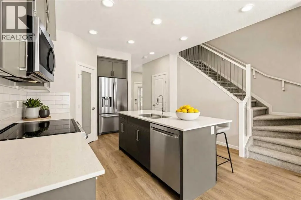 Discover this 1,775 sq ft home by Bedrock Homes in the beautiful community of Liberty Landing, Red Deer. Designed for modern living, this 4-bedroom, 3-bathroom home offers a spacious open-concept layout perfect for family life and entertaining. The main floor features a stylish kitchen with quartz countertops, a large island, and plenty of storage, seamlessly flowing into the dining and great room filled with natural light. A full bedroom and bathroom on the main floor add flexibility for guests. Upstairs, the primary bedroom includes a private ensuite and walk-in closet, accompanied by two additional bedrooms, a full bath, and convenient laundry. Built with Bedrock Homesâ renowned craftsmanship and energy efficiency, this home offers comfort, style, and long-term value. Located in Liberty Landing, a vibrant Red Deer community surrounded by parks, trails, and amenities. (id:27476)