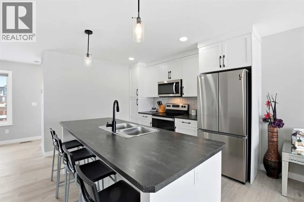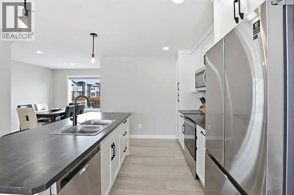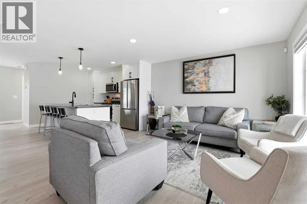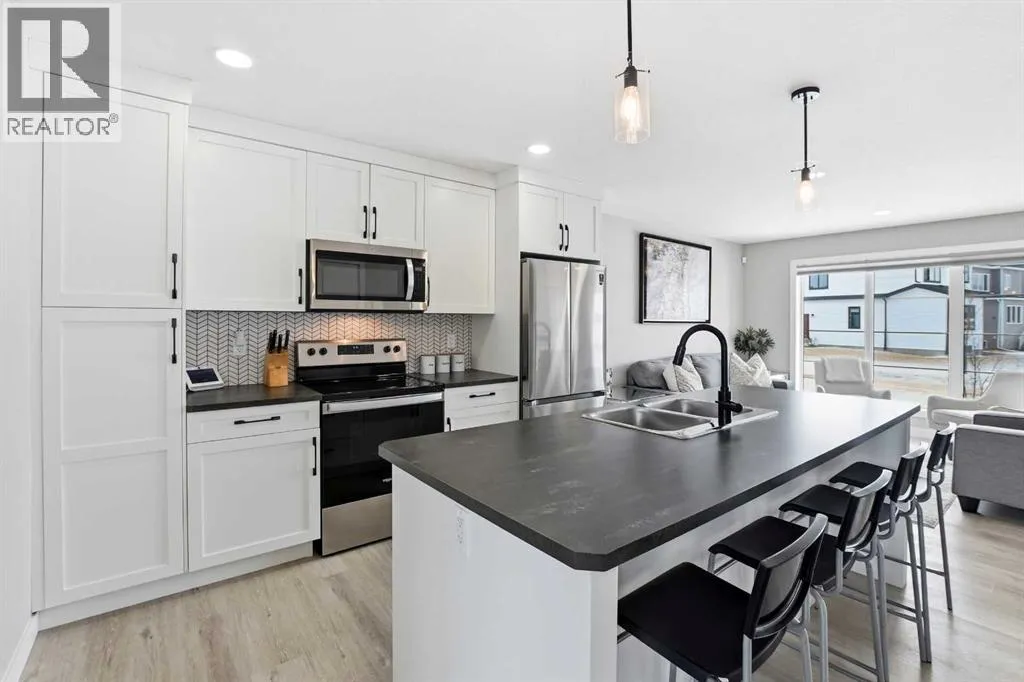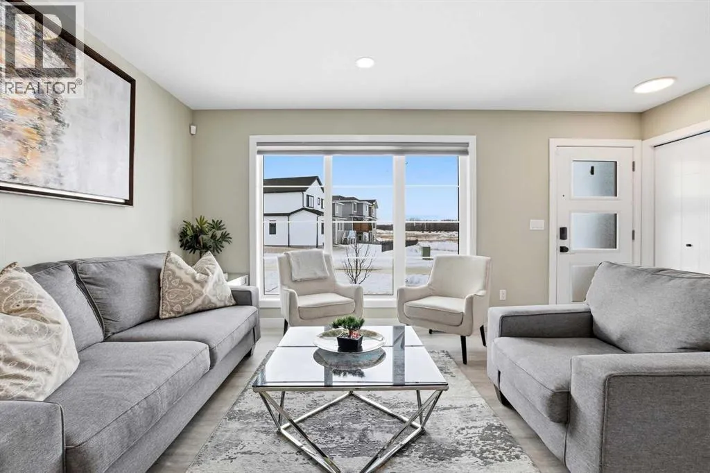 Welcome to this beautifully designed Falcon Homes townhouse in desirable Liberty Landing. Offering modern convenience, exceptional finishes, and effortless living. Sold FULLY FURNISHED and completely move-in ready, this is a rare opportunity to step into a professionally styled home with everything already done for you.Located in Liberty Landing, just minutes from Gasoline Alley, youâll enjoy quick access to shopping, markets, restaurants, and Highway 2. The community offers exceptional amenities, natural wetlands, abundant green space, and close proximity to an urban center.This functional 2-storey plan is thoughtfully designed for everyday living. The main floor showcases gorgeous vinyl plank flooring, large living room windows that allow in plenty natural light, and a bright open-concept layout. The kitchen features beautiful cabinetry, a full tile backsplash, stainless steel appliances, and a sit-up island perfect for casual dining or entertaining. A spacious dining area, convenient 2-piece bathroom, and access to the back deck.Upstairs youâll find 3 bedrooms, including a stunning primary retreat with its own 3-piece ensuite featuring a tiled shower with glass door. An additional 4-piece bathroom with tiled tub surround serves the upper level.The fully finished basement adds incredible versatility, offering a large recreation room, a 4-piece bathroom, and space with potential for a 4th bedroom, home office, or gym. Outside, enjoy the fully fenced and landscaped yard, perfect for relaxing or entertaining, along with off-street parking for added convenience.Best of all there are NO condo fees and the remainder of the new home warranty to be transferred to new owner. A beautiful blend of style, functionality, and location in one of the areaâs growing communities. (id:27476)