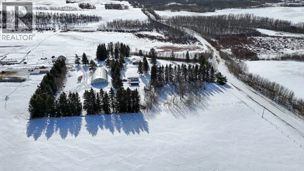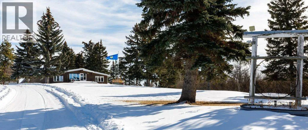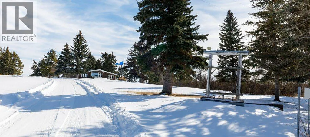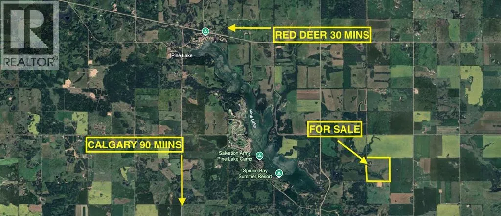 Rare opportunity to own a full, uncut ¼ section in a prime location at the south end of Pine Lake â just 30 minutes to Red Deer and only 90 minutes to Calgary! This incredible property offers a picturesque, parklike yard site surrounded by towering spruce trees and mature landscaping, creating a private and peaceful setting. A natural creek flows from Pine Lake through the south side of the land, enhancing the rolling hills, scenic pasture, and approximately 80 arable acres. Wildlife is abundant, with moose, deer, and elk commonly seen on the property. The 1960s ranch-style bungalow is nestled into the mature yard and has seen important mechanical upgrades, including a newer hot water tank and pressure tank. Thereâs also an additional set of services with Power, water and natural gas already installed and ready for a second home â ideal for extended family or future expansion. Outbuildings include a 24â x 36â detached garage, two large Quonsets, and two separate locations equipped for automatic livestock waterers, making this a functional and versatile agricultural setup. Whether youâre looking to farm, ranch, invest, or build your dream country estate, this is a rare chance to secure a full quarter section in one of Central Albertaâs most desirable rural communities. Approx 20 Acres of newly seeded hay crop on the South Side of the property is in alfalfa, brome & Timothy mix. Whispering Pines Golf & CC., boating and fishing at the lake is just around the corner! (id:27476)