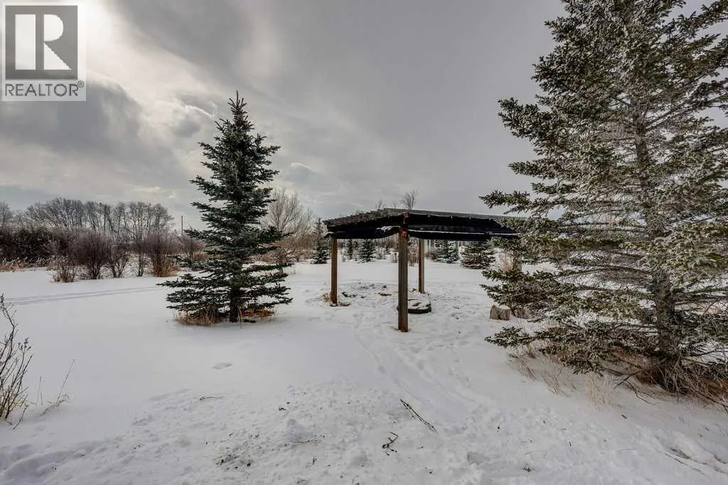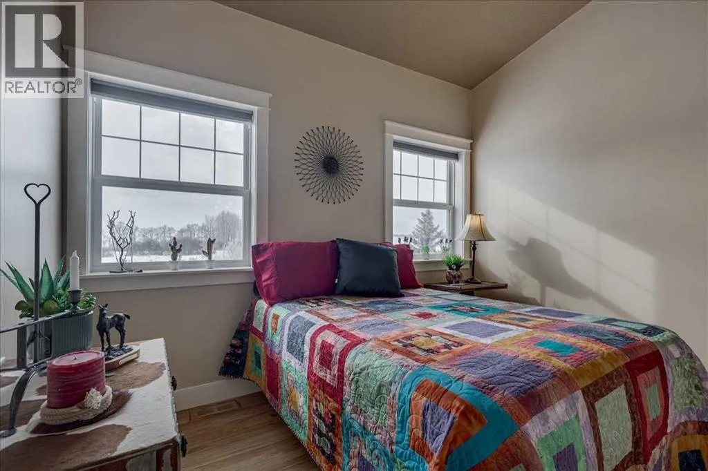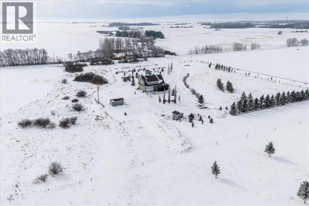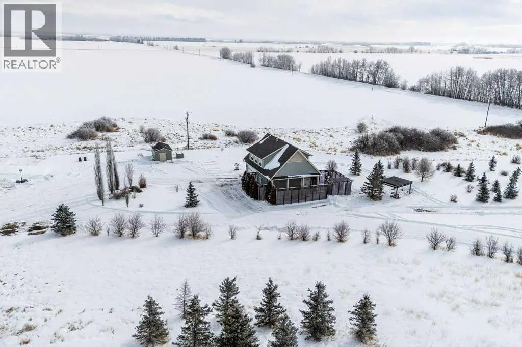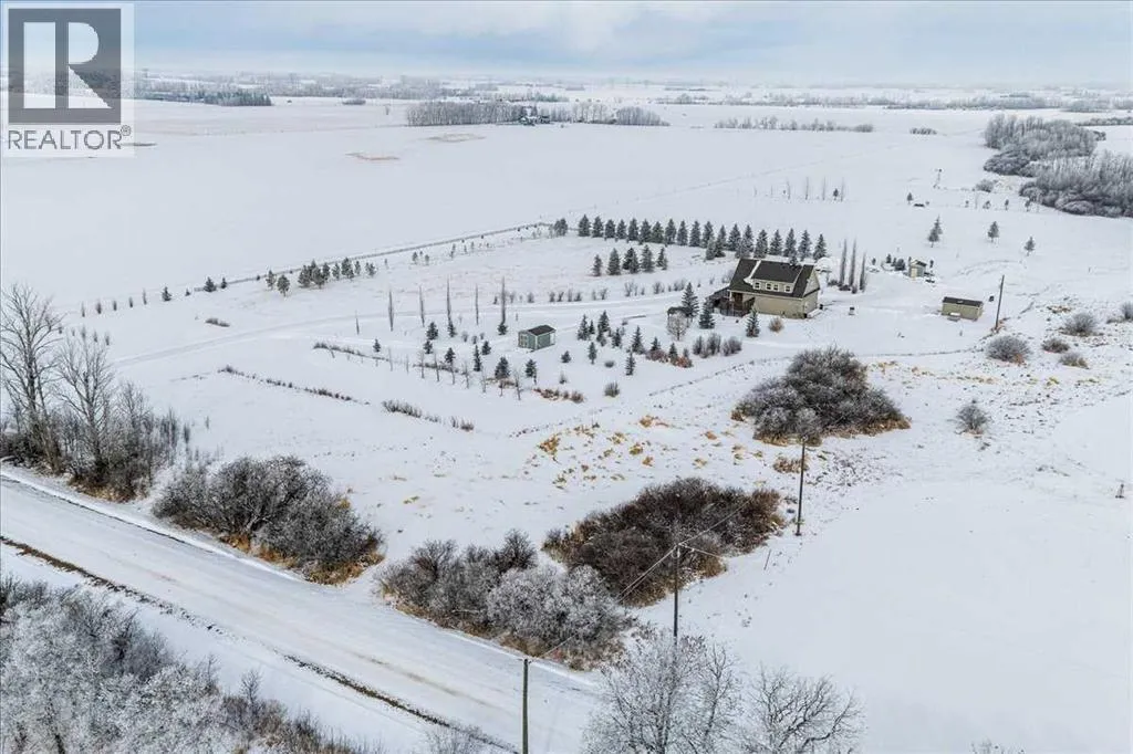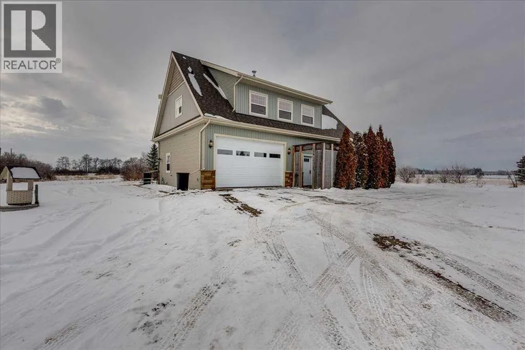Private, 21 acres surrounded by farmland, offering exceptional privacy and peaceful country living! Set back from the road and sheltered by mature trees, this AG-zoned property provides the space and freedom acreage buyers are looking for. A circular asphalt driveway at the front of the home provides convenient access and a welcoming approach to the property. Inside, a bright entry leads to the upper level. The main/ground floor offers a comfortable living area, a flexible den currently being used as a bedroom, and a 3-piece bathroom. The space is generously sized with room for a desk or small table in addition to bedroom furniture. Double doors from this area open onto a large patio, privately screened with decorative lattice- an ideal space for a future hot tub! The laundry and utility room is also located on the main floor and houses the boiler system for in-floor heating, along with a high-efficiency furnace. Convenient access to the double attached heated garage is also located on the main level. Upstairs, the living space opens beautifully with cathedral ceilings and dormer windows that bring in natural light while adding architectural character. Hardwood floors and wide mouldings create warmth throughout the space, while a gas fireplace adds comfort to the living area. The kitchen offers generous cabinetry, a large pantry, and an easy flow into the dining and living spaces. There are two bedrooms on the upper level, including the primary. A 4-piece bathroom connects the primary bedroom and living area in a Jack & Jill layout, creating an ensuite-style setup while still allowing convenient access from the living area. If upper-level laundry is required there is a set of hook ups available. Outside, the property continues to impress with beautiful landscaping. The pergola and firepit area create a comfortable outdoor gathering space, while several sheds provide additional storage. A seasonal creek flows 2-3 weeks of the year adding to the natural beauty of the property. Mature trees offer natural wind protection and privacy throughout the yard. A rare opportunity to enjoy a large parcel of land, quiet country living with space, privacy, and endless potential! (id:27476)