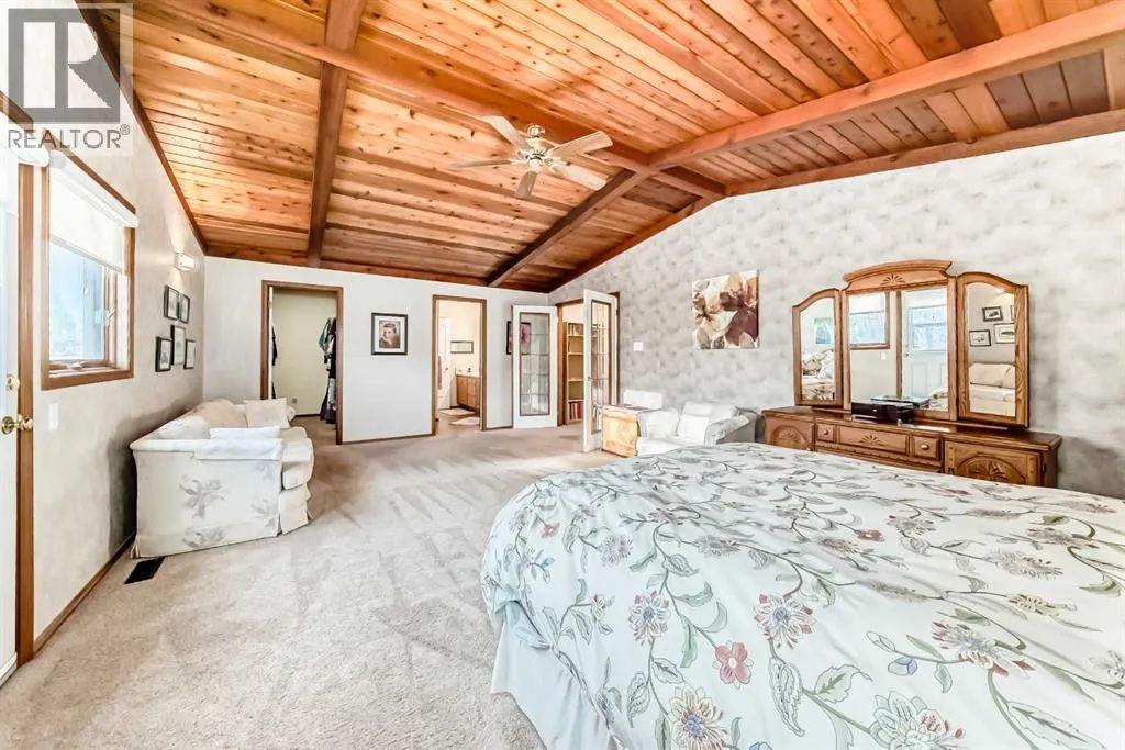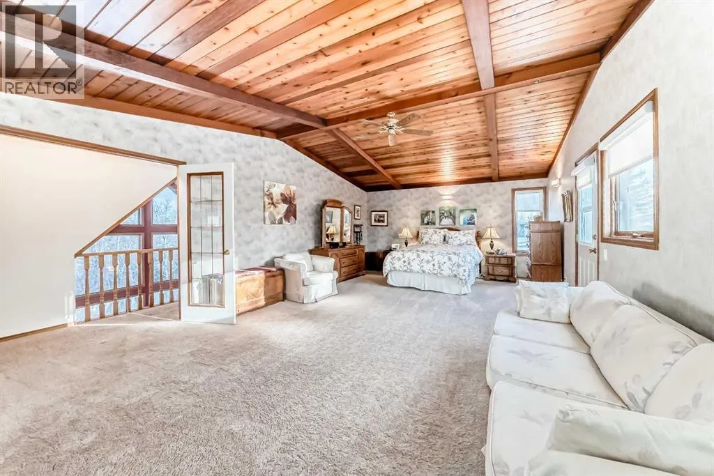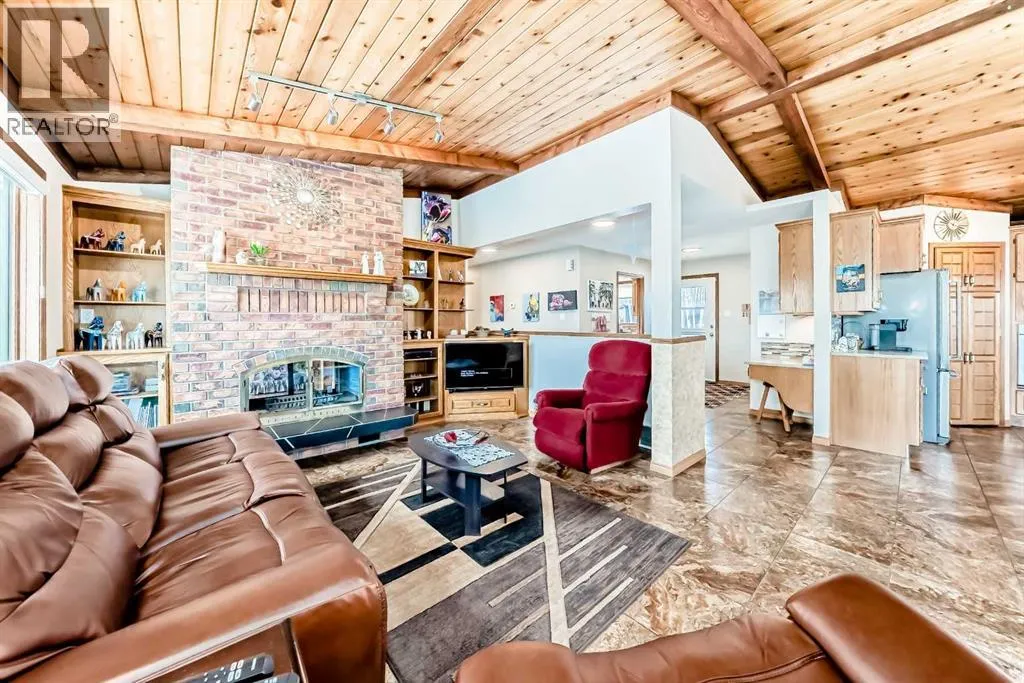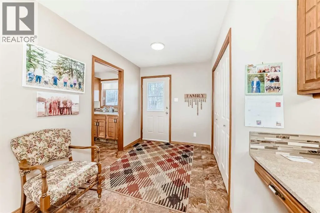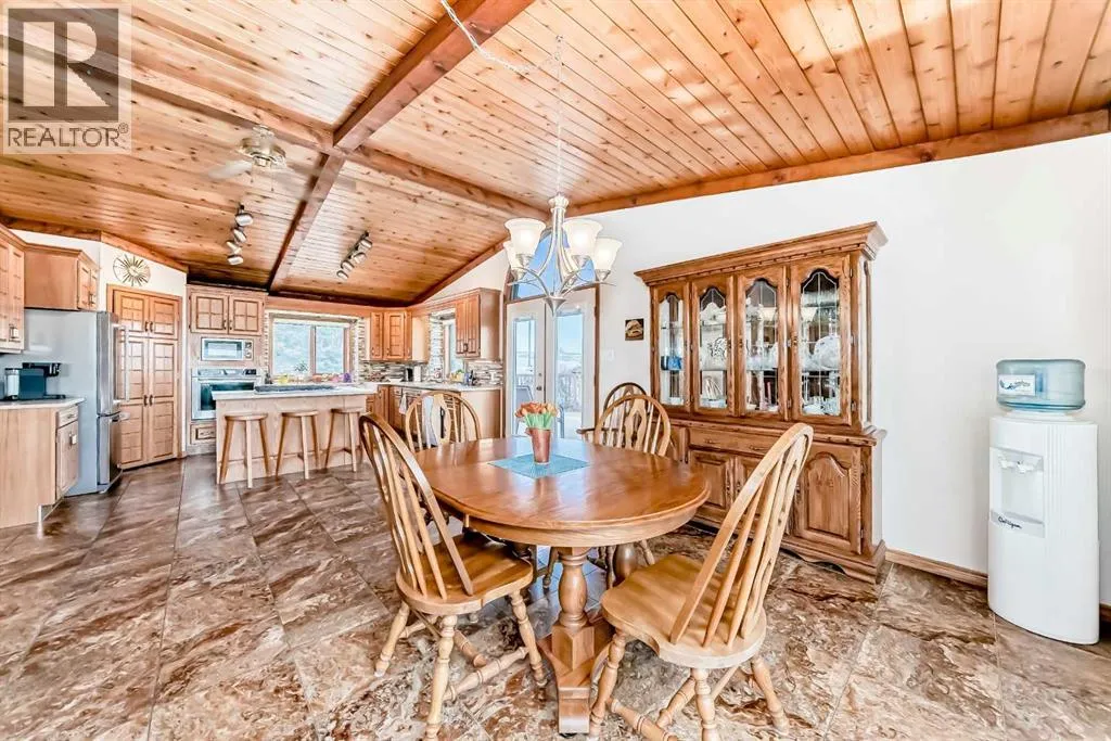 Welcome to this beautiful original-owner 3.39-acre custom-built acreage, offering a fully finished home with 5 bedrooms, 4 bathrooms, a large double attached garage, and an incredible 50â x 70â heated shop with a 12â x 50â addition complete with its own washroom. Step inside and youâll immediately notice the soaring vaulted cedar ceilings and the stunning recently renovated kitchen, designed to impress. This chefâs kitchen features solid oak cabinetry, granite countertops, stainless steel appliances, a large island with KitchenAid gas cooktop, corner pantry, and modern vinyl flooring. The spacious dining area easily accommodates large gatherings and overlooks the wraparound deck, making it perfect for entertaining. The inviting living room showcases a double-sided masonry wood-burning fireplace, creating a warm focal point for the space. On the opposite side, a large family room with near floor-to-ceiling windows captures breathtaking views of the surrounding landscape. The main floor also includes a bedroom, convenient main floor laundry, and a 4-piece bathroom. Upstairs youâll find a massive private primary retreat, complete with its own deck, walk-in closet, and a luxurious 4-piece ensuite. The walkout basement offers even more living space with a wood stove, games/craft room, cold room, additional storage, a 4-piece bathroom, and three more bedroomsâincluding one with its own 4-piece ensuite and walk-in closet. Outside, the property truly shines with a stunning landscaped yard recognized for rural beautification, a large wraparound deck perfect for gatherings, multiple storage sheds, a bunkhouse that sleeps six with a Murphy bed, and even a charming outhouse. The standout feature is the modern heated 50â x 70â shop with a 12â x 50â addition, 16â ceilings, 14â overhead doors, and ample space for large vehicles, equipment, or recreational toys. Ideally located just 17 minutes east of Red Deer and only 10 minutes to Delburne, this remarkable acreage offers the perf ect blend of privacy, space, and convenience. (id:27476)