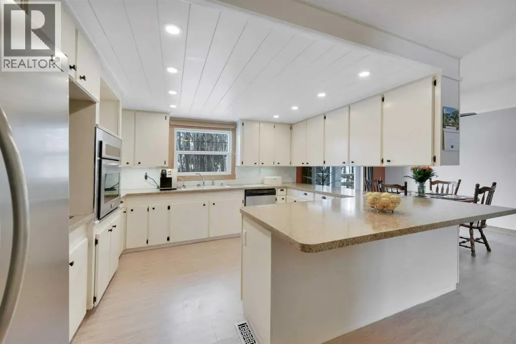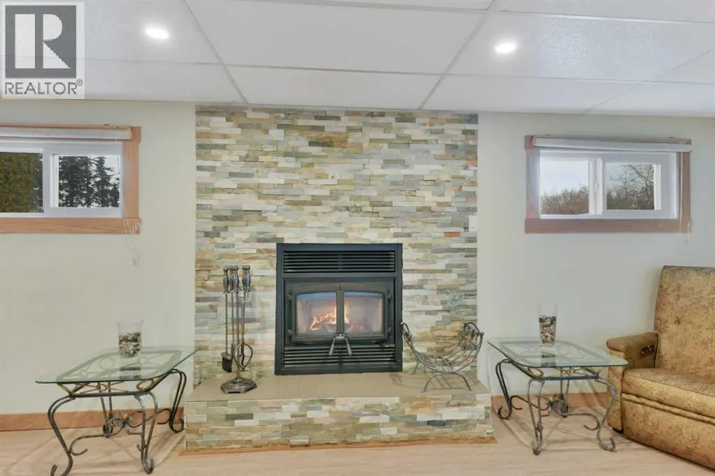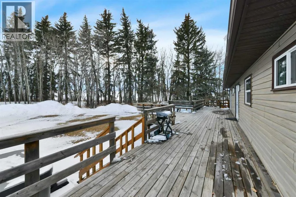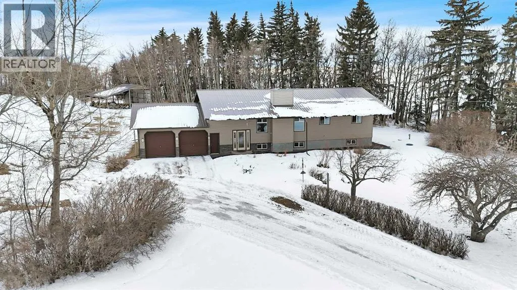 Situated on 10 private acres approximately 10 minutes to Gasoline Alley and Red Deer. This peaceful country property offers space, privacy, and a well-maintained home with extensive updates and multiple outbuildings. Located directly off Highway 42, the property enjoys convenient access while still offering a quiet rural setting with no immediate neighbours on either side. School bus service is available with pickup conveniently located at the end of the driveway.The 1992-built home offers a functional layout of 1649.45 sq feet featuring 4 bedrooms and 3 bathrooms, including three bedrooms on the main level and an additional bedroom and bathroom in the basement. The main floor features a spacious kitchen, large living room with wood-burning fireplace, main floor laundry, and a comfortable primary suite complete with a 4-piece ensuite and double doors leading to the deck. The basement provides excellent additional living and recreation space, including a large entertainment area with a circular birch wet bar, a hot tub with ventilation, additional storage areas, cold storage, access to the garage, and a wood-burning fireplace. Over the past decade the home has seen numerous important upgrades, including triple-pane windows, doors, furnace, and hot water tank. The home also features central vacuum with attachments, and newer vinyl plank flooring, along with quality oak finishes throughout. Heating includes a high-efficiency natural gas furnace along with two WETT-certified Osburn wood stoves with approximately 85,000 BTU capacity, providing both comfort and backup heating options. A wood pellet stove is also installed in the garage. The property features an oversized attached double garage with drywall, blown-in insulation, built-in shelving, mezzanine storage, and double-pane windows. Outside, the acreage offers exceptional rural functionality with a large deck with seating, hot tub, and firepit area. The front yard offers a wonderful blend of mature landscapin g and productive garden space. Fruit trees include apple, crab apple and plum, saskatoon berries, chokecherries, high-bush cranberries, and rhubarb. There are several agricultural outbuildings throughout the property including a 1950s dairy barn, storage shed, pole-frame combine shelter, and multiple animal shelters. In 2024, a new organic septic treatment system with four tanks and fermentation process was installed, designed to significantly reduce maintenance with pumping typically required only every 5â8 years. The system includes alarms and backup float protection. The property includes a well with newer pump and pressure system.With its combination of privacy, functional outbuildings, updated mechanical systems, and easy access to Red Deer, this acreage offers a rare opportunity for those seeking space, rural living, and flexibility with the bonus agricultural zoning. (id:27476)