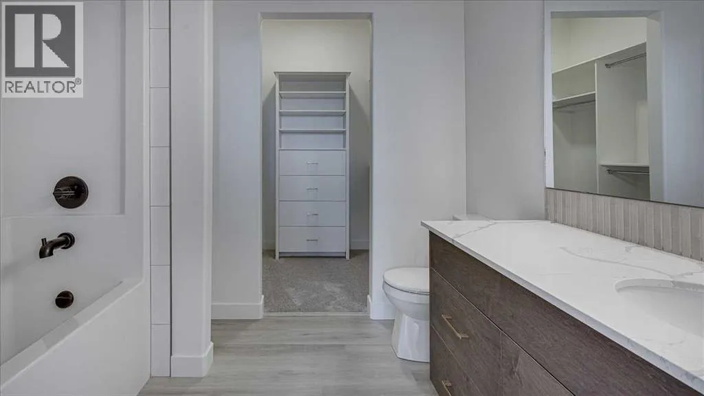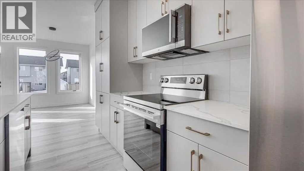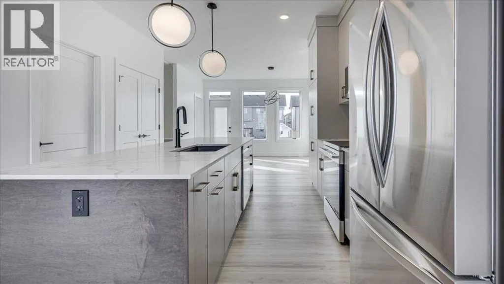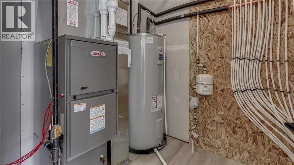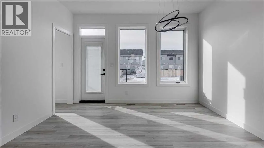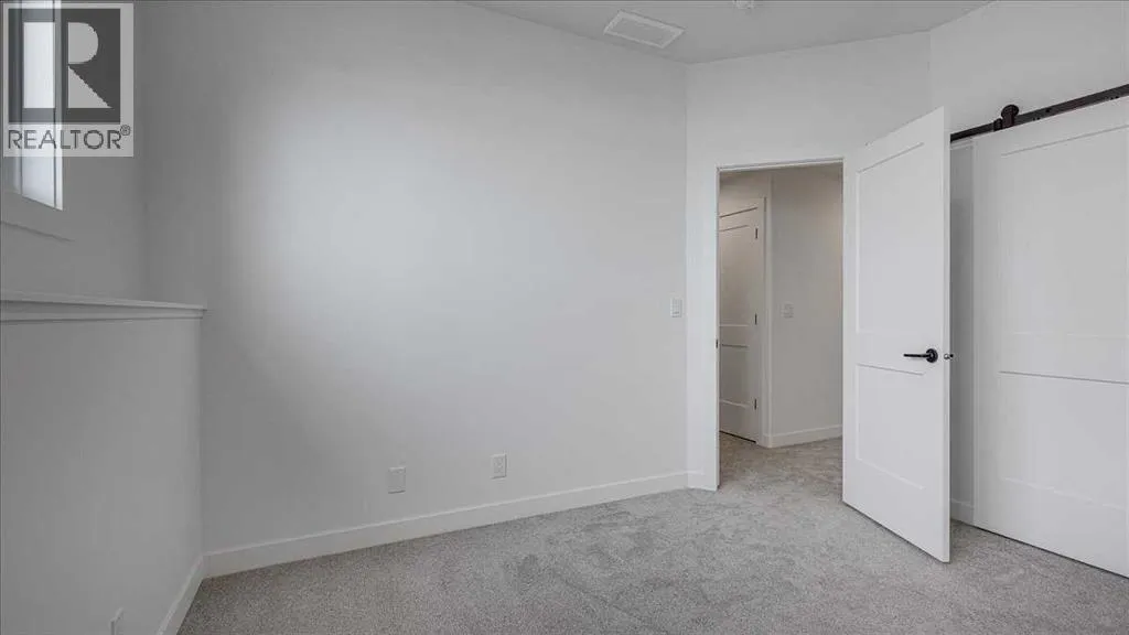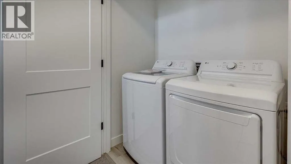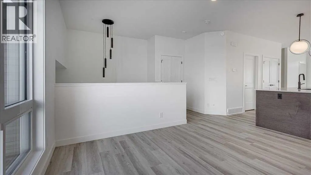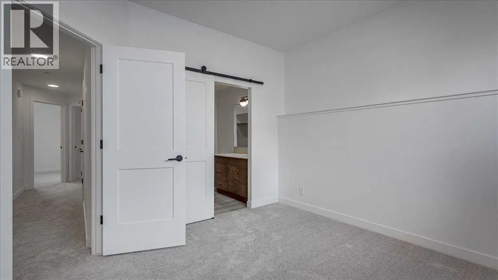 NO CONDO FEES & Great Location! This Brand new, stylish bi-level townhouse has 3 bdrms, 2.5 baths, with 4 appliances, conveniently located in Liberty Landing, close to Costco, restaurants + Highway 2 access. With lovely curb appeal, step into this bright home w/triple pane windows, up the stairs to this open floor plan that features a bright living room & dining room, with a chef's dream kitchen in the middle, with quartz countertops, stainless appliances & double door pantry. This huge island will become the centerpiece for family gatherings, favorite meals & deep conversations. Check out this mud room coming from your south facing backyard, that hides all your shoes & coats from your main area. There is also a convenient flex space outside this 1/2 bath area, perfect for a desk for working @ home, or dog crates or freezer...just imagine what you could use it for! On the lower level, you will find the primary bedroom master with a huge window w/barn door leading to your ensuite & walk in closet. 2 more good sized bdrms, full bath & laundry area fit also neatly on this level. There is also a spacious storage area under the stairs. Front yard will have sod, back yard will have top soil to grade + dividing fence done on the east & west property lines towards the parking area will be completed for you. This south facing backyard is where you will spend your summer evenings & 2 car off street parking off Paved back lane. This unique floor plan will impress with all the natural light & affordable price without being too small! GST included with rebate to builder. Interior pictures are of another unit with the exact floor plan and colors. Proposed possession is April 30/26 (id:27476)