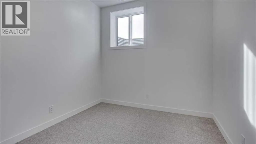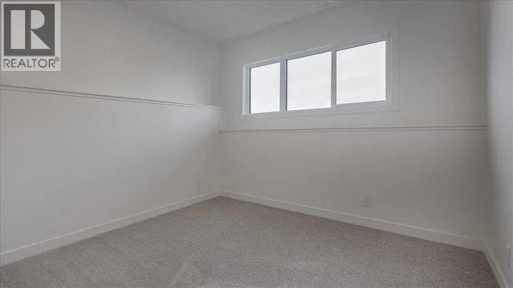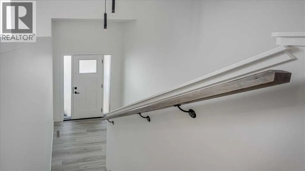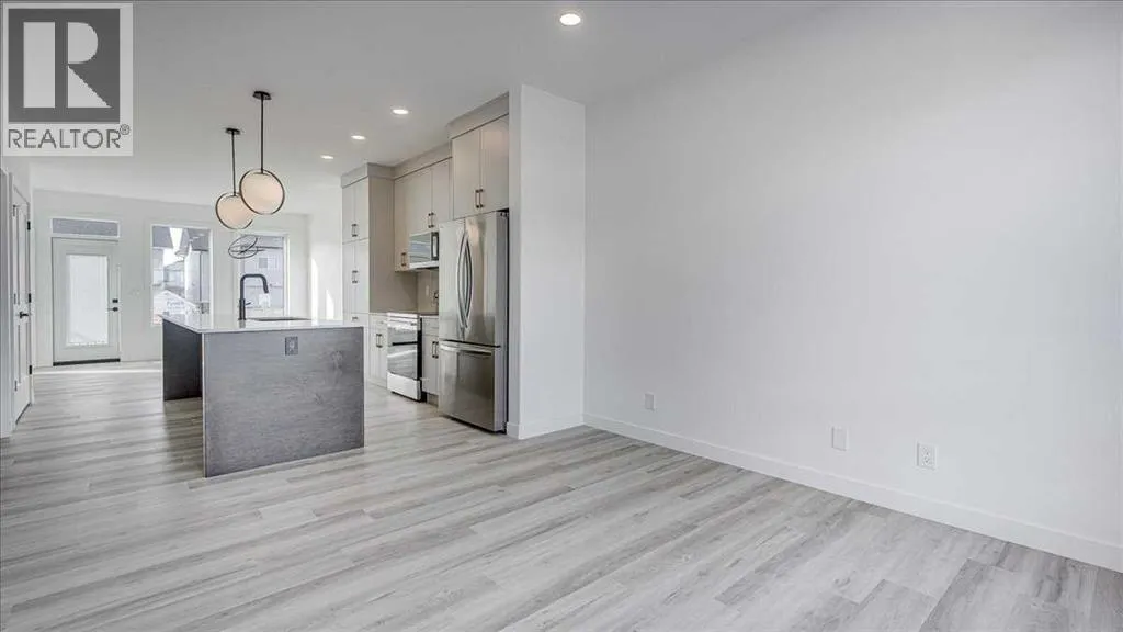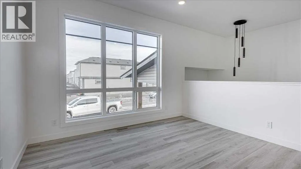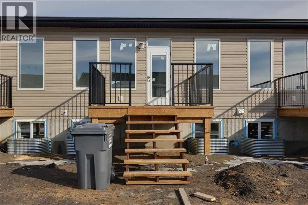 NO CONDO FEES & Great Location! This Brand new, stylish bi-level townhouse has 3 bdrms, 2.5 baths, with 4 appliances, conveniently located in Liberty Landing, close to Costco, restaurants + Highway 2 access. With lovely curb appeal, step into this bright home w/triple pane windows, up the stairs to this open floor plan that features a bright living room & dining room, with a chef's dream kitchen in the middle, with quartz countertops, stainless appliances & double door pantry. This huge island will become the centerpiece for family gatherings, favorite meals & deep conversations. Check out this mud room coming from your south facing backyard, that hides all your shoes & coats from your main area. There is also a convenient flex space outside this 1/2 bath area, perfect for a desk for working @ home, or dog crates or freezer...just imagine what you could use it for! On the lower level, you will find the primary bedroom master with a huge window w/barn door leading to your ensuite & walk in closet. 2 more good sized bdrms, full bath & laundry area fit also neatly on this level. There is also a spacious storage area under the stairs. Front yard will have sod, back yard will have top soil to grade + dividing fence done on the east & west property lines towards the parking area will be completed for you. This south facing backyard is where you will spend your summer evenings & 2 car off street parking off Paved back lane. This unique floor plan will impress with all the natural light & affordable price without being too small! GST included with rebate to builder. Interior pictures are of another unit with the exact floor plan and colors. Proposed possession is April 30/26 (id:27476)