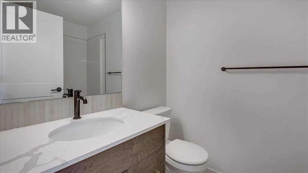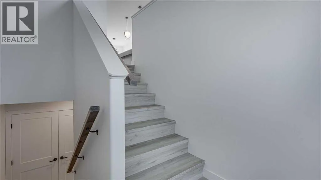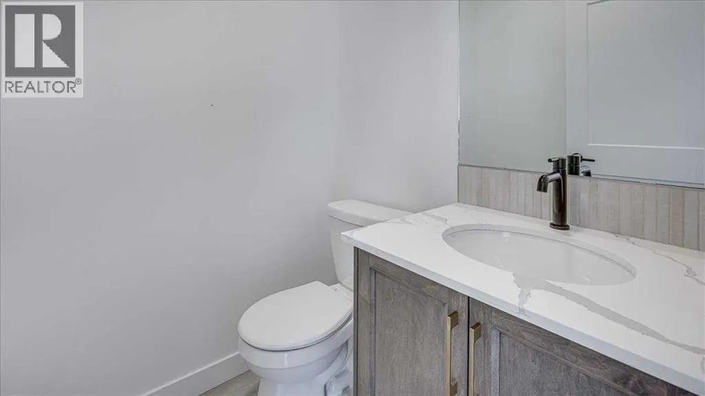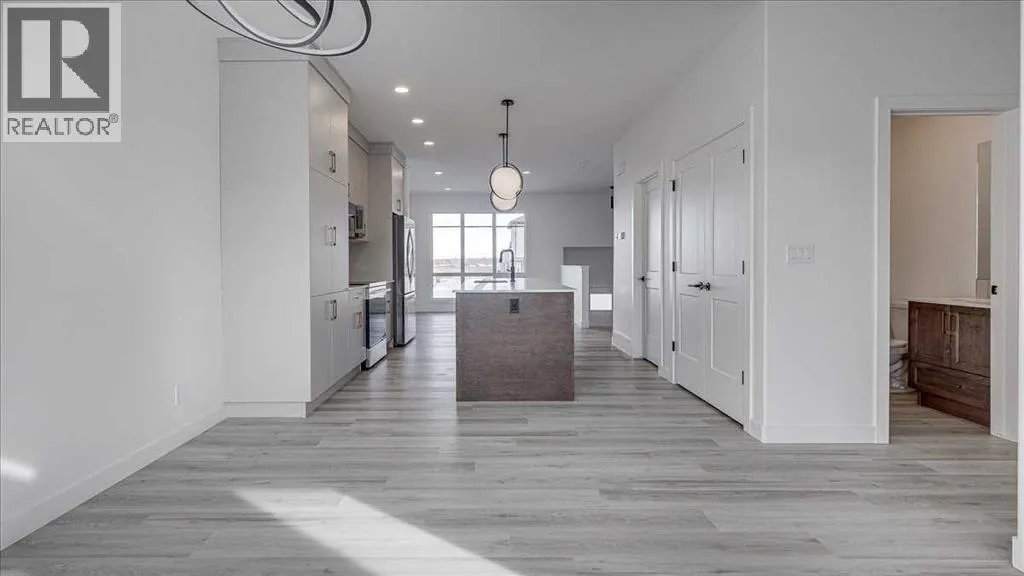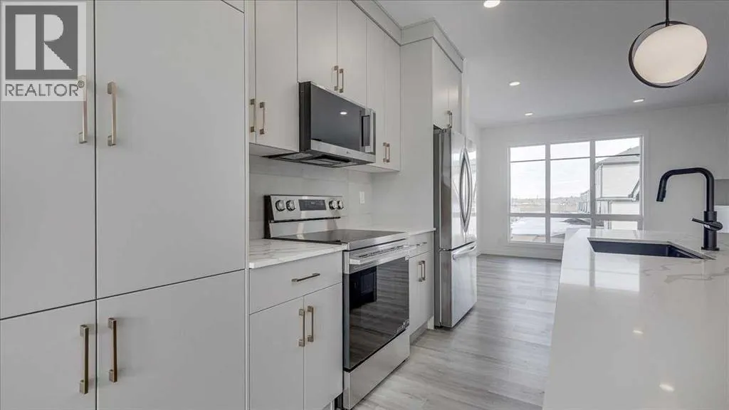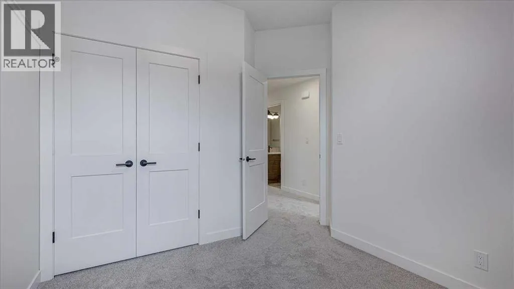 NO CONDO FEES & Great Location! This Brand new, stylish bi-level townhouse has 3 bdrms, 2.5 baths, with 4 appliances, conveniently located in Liberty Landing, close to Costco, restaurants + Highway 2 access. With lovely curb appeal, step into this bright home w/triple pane windows, up the stairs to this open floor plan that features a bright living room & dining room, with a chef's dream kitchen in the middle, with quartz countertops, stainless appliances & double door pantry. This huge island will become the centerpiece for family gatherings, favorite meals & deep conversations. Check out this mud room coming from your south facing backyard, that hides all your shoes & coats from your main area. There is also a convenient flex space outside this 1/2 bath area, perfect for a desk for working @ home, or dog crates or freezer...just imagine what you could use it for! On the lower level, you will find the primary bedroom master with a huge window w/barn door leading to your ensuite & walk in closet. 2 more good sized bdrms, full bath & laundry area fit also neatly on this level. There is also a spacious storage area under the stairs. Front yard will have sod, back yard will have top soil to grade + dividing fence done on the east & west property lines towards the parking area will be completed for you. This south facing backyard is where you will spend your summer evenings & 2 car off street parking off Paved back lane. This unique floor plan will impress with all the natural light & affordable price without being too small! GST included with rebate to builder. Interior pictures are of another unit with the exact floor plan and colors. Proposed possession is April 30/26 (id:27476)