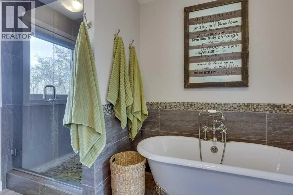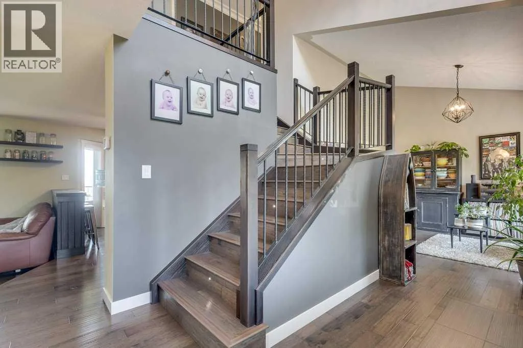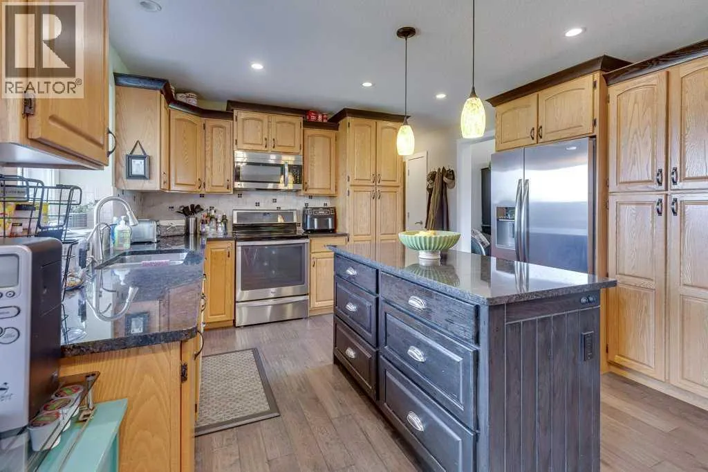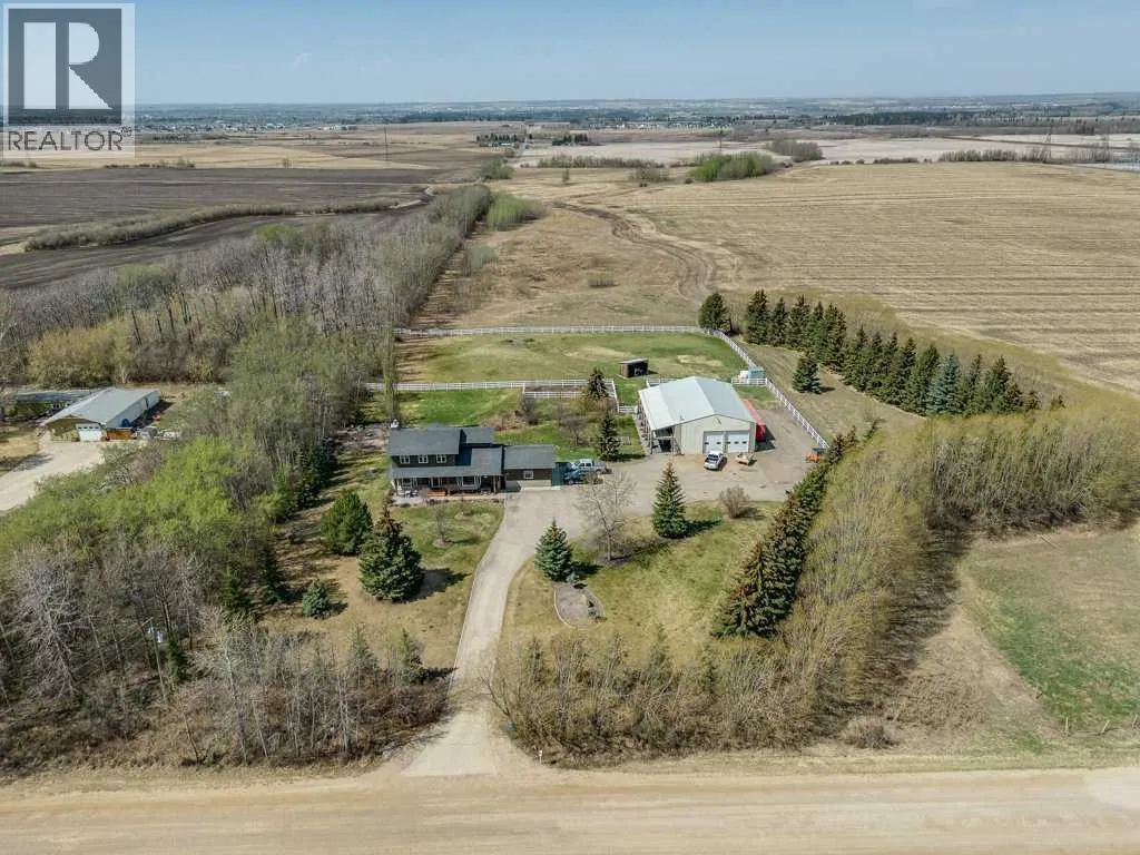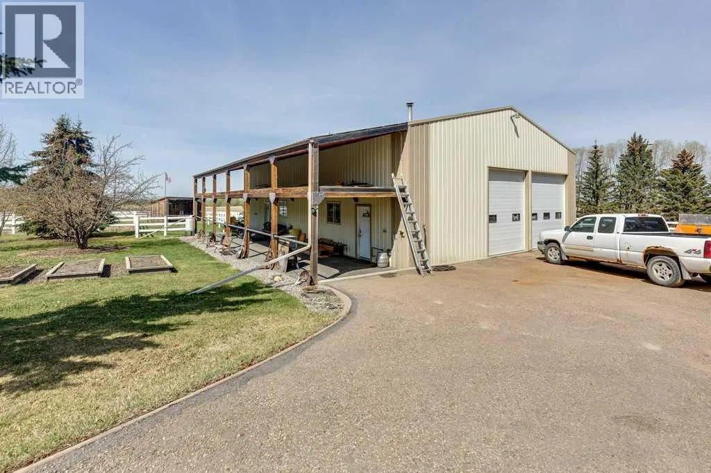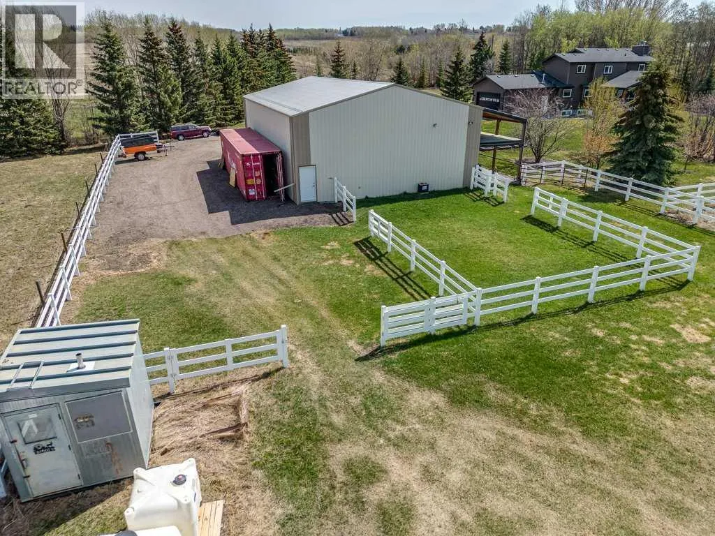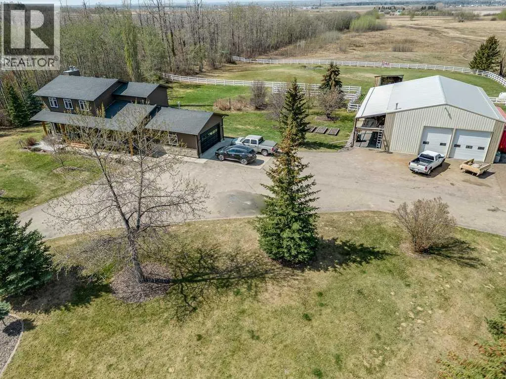 Located on the fringe of the Red Deer city limits this 3.24 acres has something for everyone. A renovated family home with 5 bedrooms, plus a den, 3 bathrooms, an attached garage. A 40x60 heated shop with mezzanine storage area and office space perfect for a home business, mechanic, welder or just lots of storage for all the toys. Set up for horses its cross fenced with shelter & waterer. The manicured yard with private campfire area, a treehouse for the little ones and a west facing deck with hot tub is perfect to watch the sunset over the city lights. Impressive front entry leads to formal living room with bay window, a handy front office area both with views to the east front yard. The updated kitchen with granite countertops, centre island, pots and pans drawers, full wall cabinets, desk area leads to large dining room for family feasts. Handy eating bar overlooking the cozy family room with brick surround fireplace, & built in cabinets. Main floor laundry, boot room and 3pce bathroom. Upstairs is large master bedroom with his/her closets 5pce ensuite with tiled shower, double sinks and a claw foot tub to soak in. 2 good sized bedrooms and a 4pce bathroom. Basement is finished with rec room, theatre room, 2 more bedrooms and huge utility/storage room. The heated shop is perfectly situated away from the house with 12x12 & 10x12 ft overhead doors, office space and 2nd level loft mezzanine area. Lots of parking and turnaround space for larger RVS or vehicles. White vinyl fencing to the west with 2 corrals and open area for your horses. Extensive landscaping, curbing, abundance of fruit trees & garden boxes with a tree lined perimeter. This private location is the perfect hangout for the local wildlife giving you hours of enjoyment watching their play. Just minutes to all amenities of the city, access to highway, Joffre plant , Canyon ski hill, Parkland nursery, Balmoral golf course, this is the total package. (id:27476)