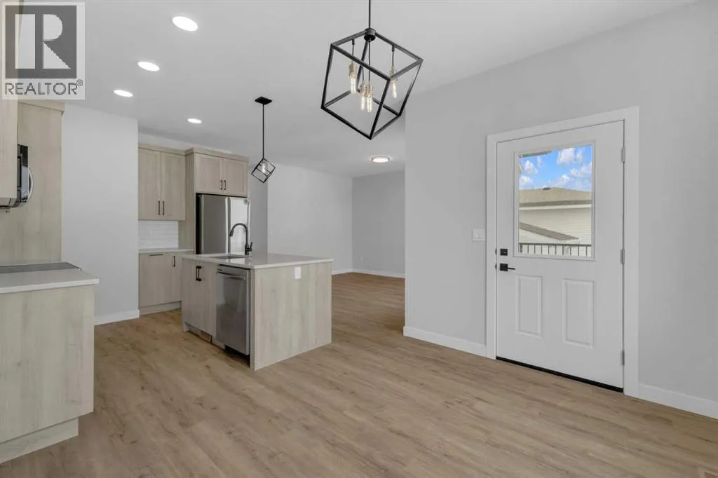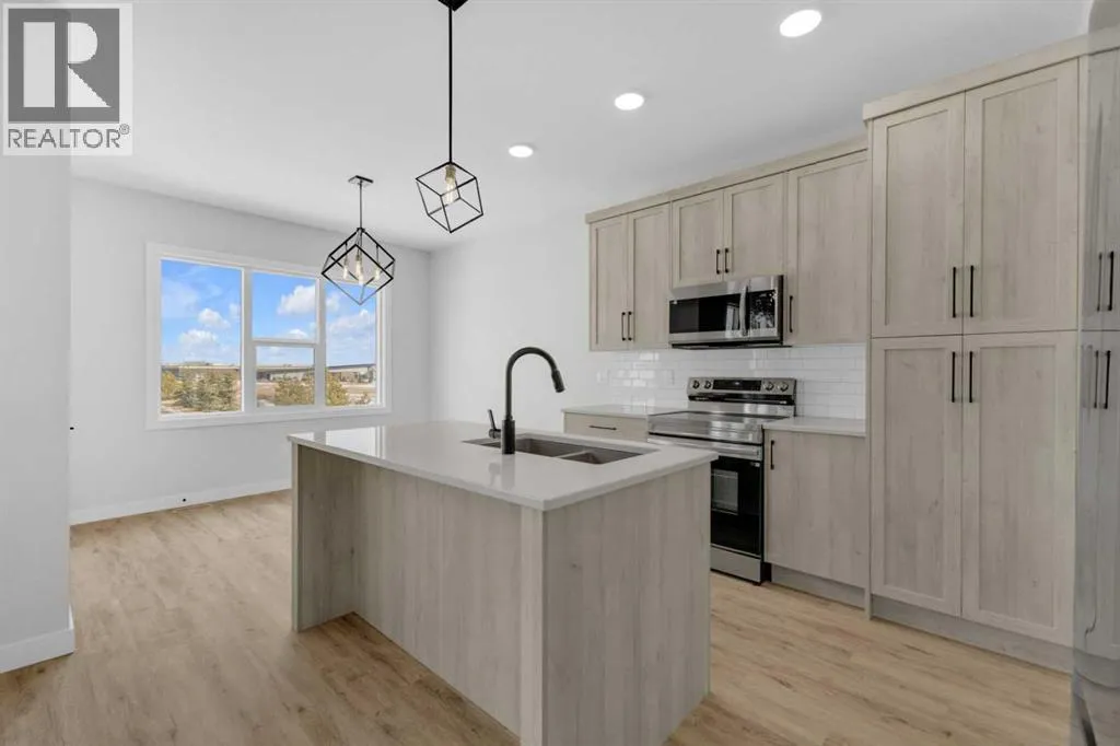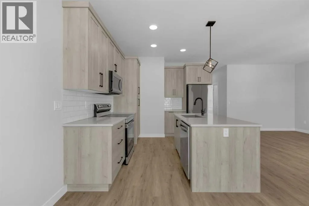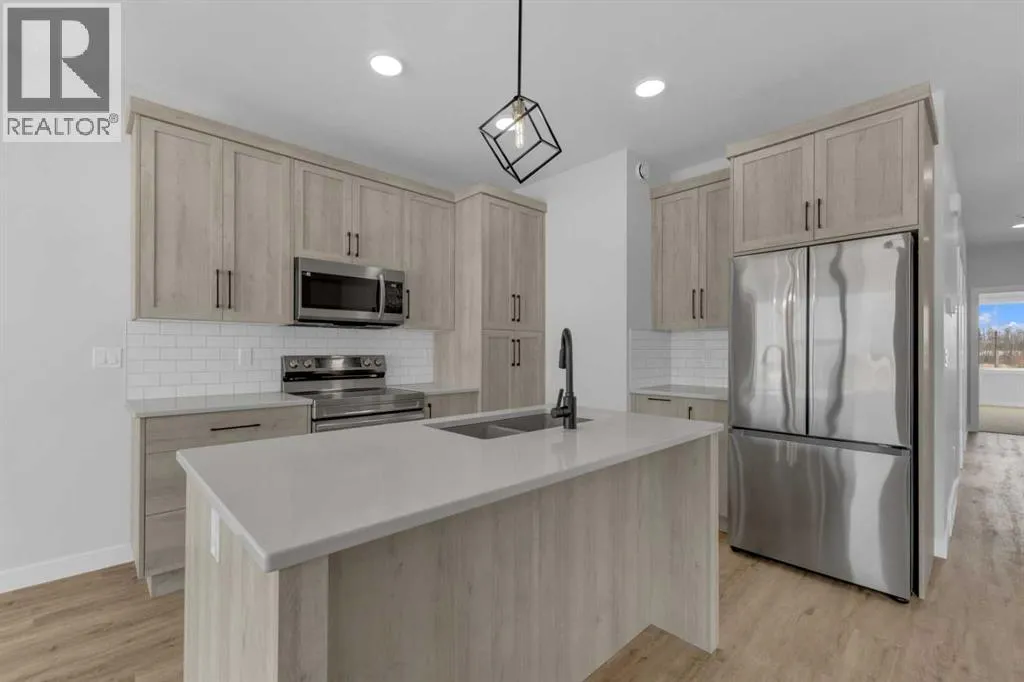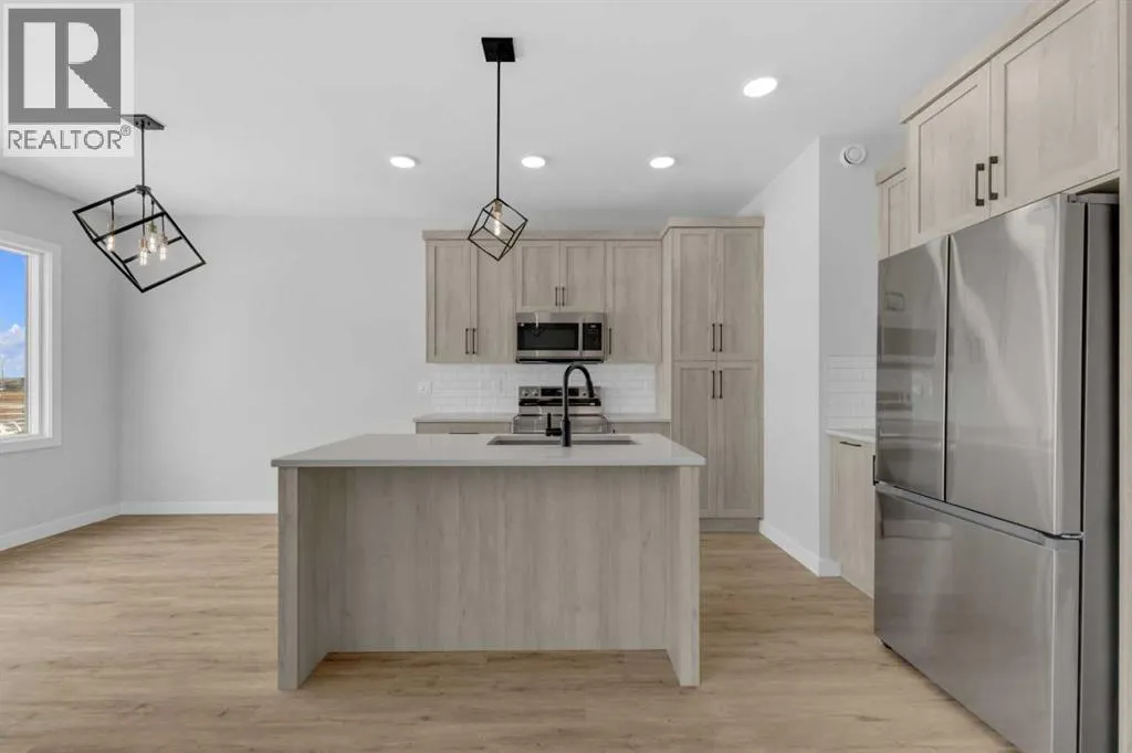 A smart layout, modern finishes, and a fully finished walkout, this brand new home in Liberty Landing stands out from the moment you walk in. Designed with separation in mind, the bi-level layout creates a natural divide between the main living space and basement, offering flexibility and privacy for families, guests. Built by Somerset Homes, this 1176 sqft contemporary walkout bi-level showcases quality craftsmanship and an upgraded finish package throughout. The main floor features a bright open-concept layout with large windows, luxury vinyl plank flooring, and a modern kitchen complete with quartz countertops, custom cabinetry, a granite sink, and stainless steel appliances.The home offers 5 bedrooms and 3 full bathrooms, with the fully finished walkout basement providing additional living space filled with natural light and direct access to the backyard.Exterior features include a front veranda with composite decking, skirting, and metal railing, along with an 8â x 12â concrete patio at the walkoutâideal for outdoor enjoyment.Additional features include shelving in all closets and a clean, contemporary design carried throughout the home.Located in the growing community of Liberty Landing, close to parks, walking paths, and amenities, this move-in ready home offers modern living in a desirable neighbourhood. (id:27476)