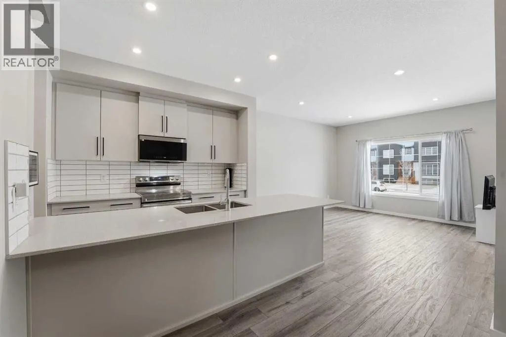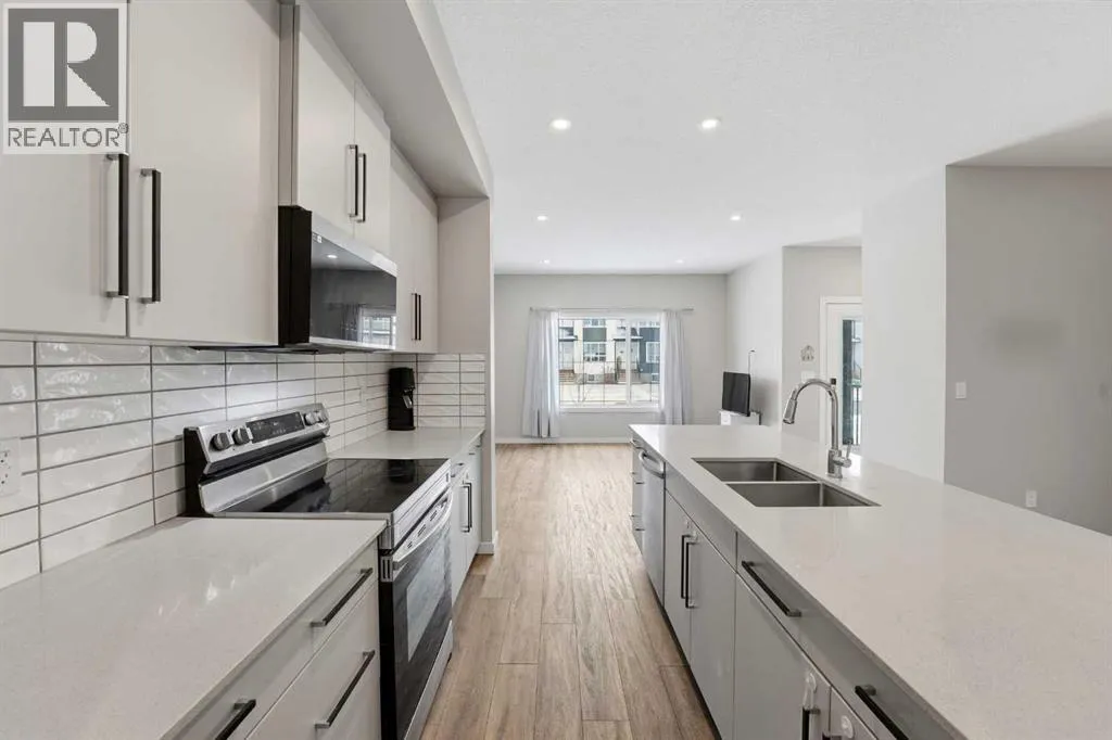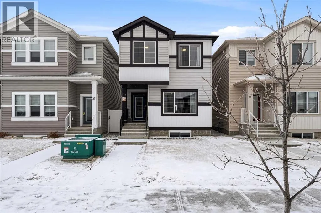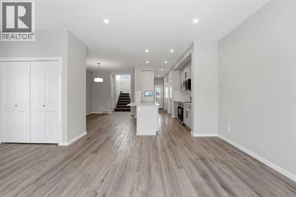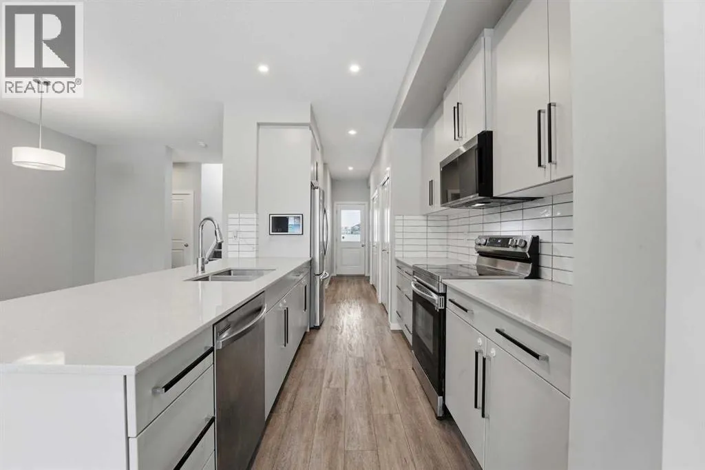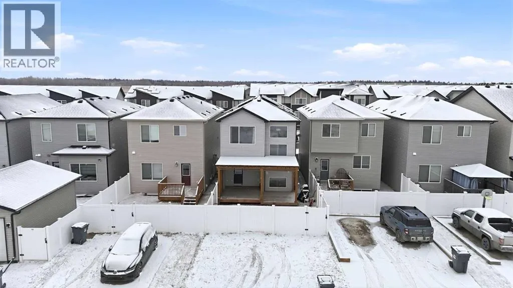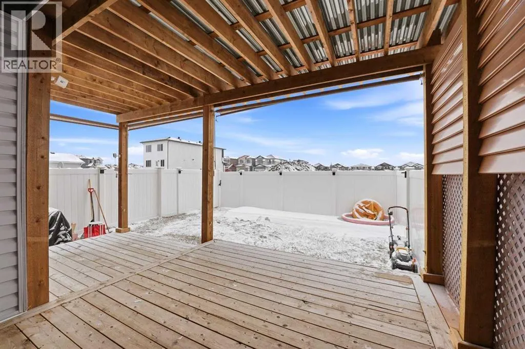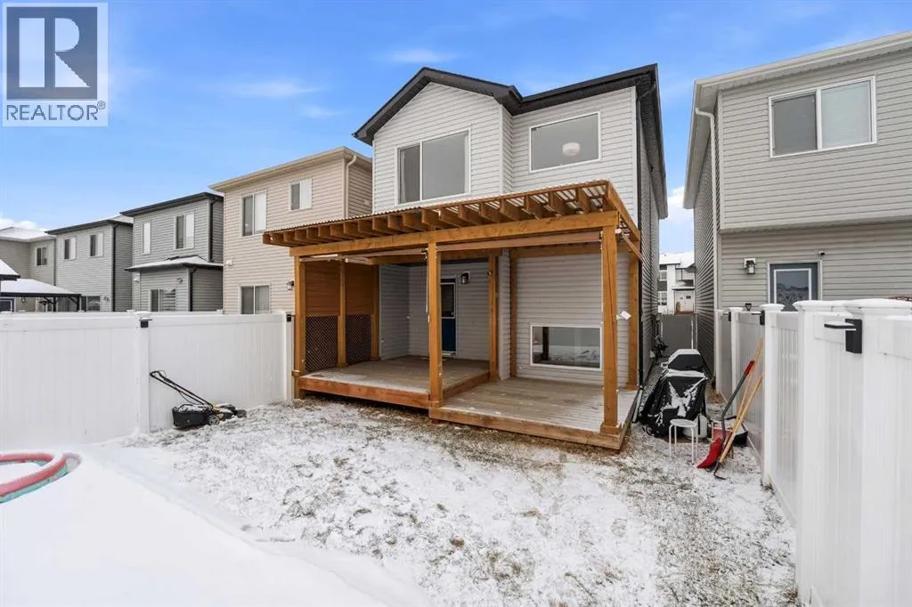 A two storey house with 3 bedrooms and 3 bathrooms. The front entryway greets you to the open style floor plan with laminate flooring that runs through the main floor. The living room is flooded with natural light through the large front window. Ceiling height kitchen cabinets are accented by quartz countertops, a new microwave hoodfan, stainless steel appliances, full tile backsplash, a large eating bar island with a sink, pot/pan drawers and a pantry for your convenience. There is a nice sized eating area and a powder room. Upstairs features 3 bedrooms, 2 bathrooms and a laundry closet. The king sized primary bedroom has a large walk through double sided closet & a 4 piece ensuite with an oversized glass/tile shower, an extended vanity, double sinks, quartz countertops and a water closet. The basement is unfinished and ready for your development with rough in for a bathroom. You'll love the backyard that features a 2 tier deck with a privacy wall and gazebo, vinyl fence and parking for two vehicles. The home features a Brilliant Light System, with touch dimmers, a screen and an app for Alexa to control the lights and thermostat. Better than new with all the appliances included, landscaping and fence! The home has solar panels (assumable contract). (id:27476)