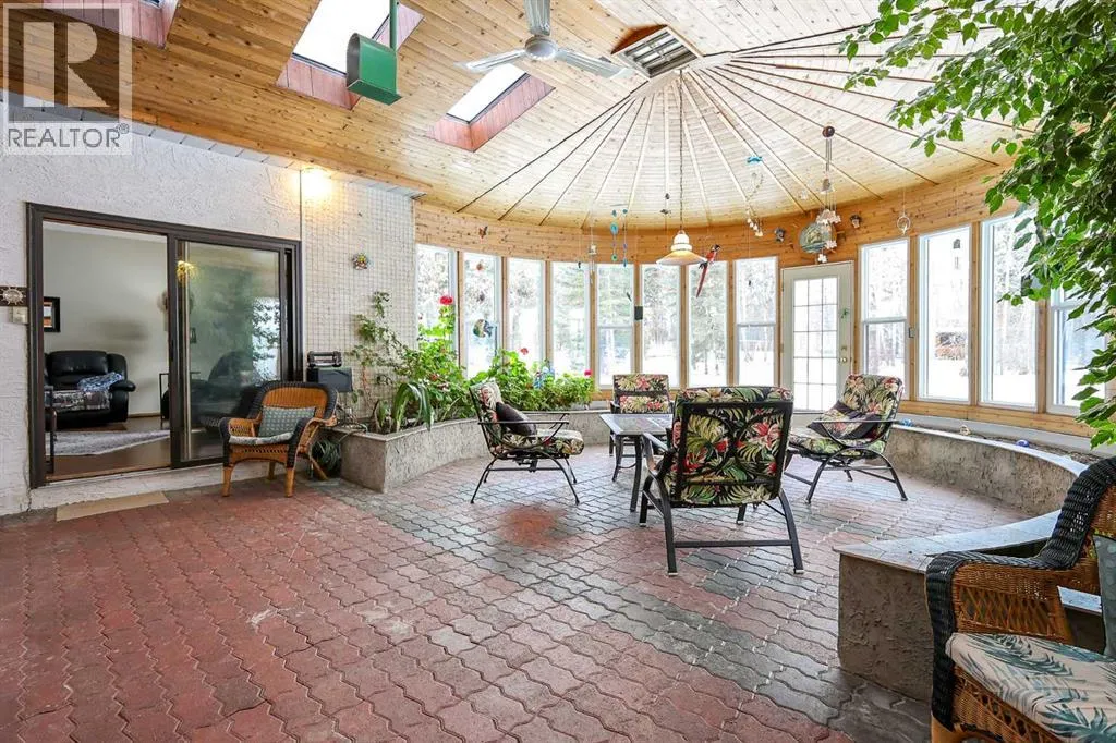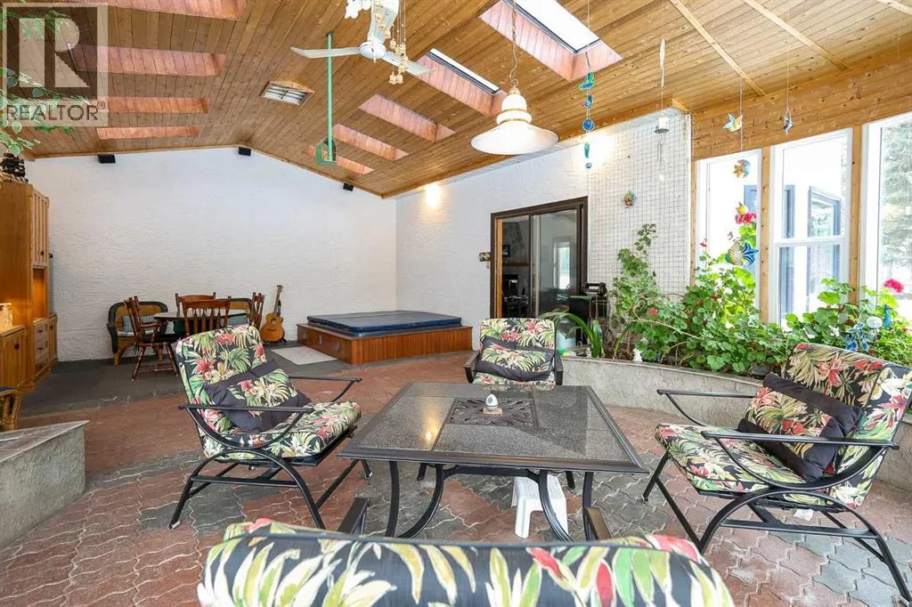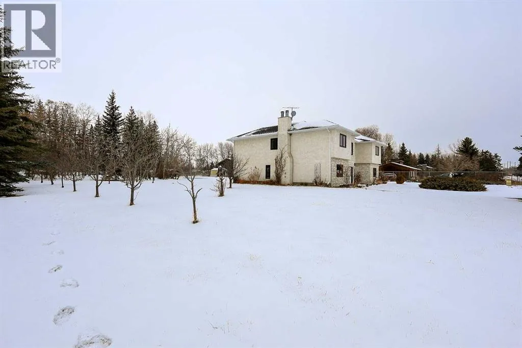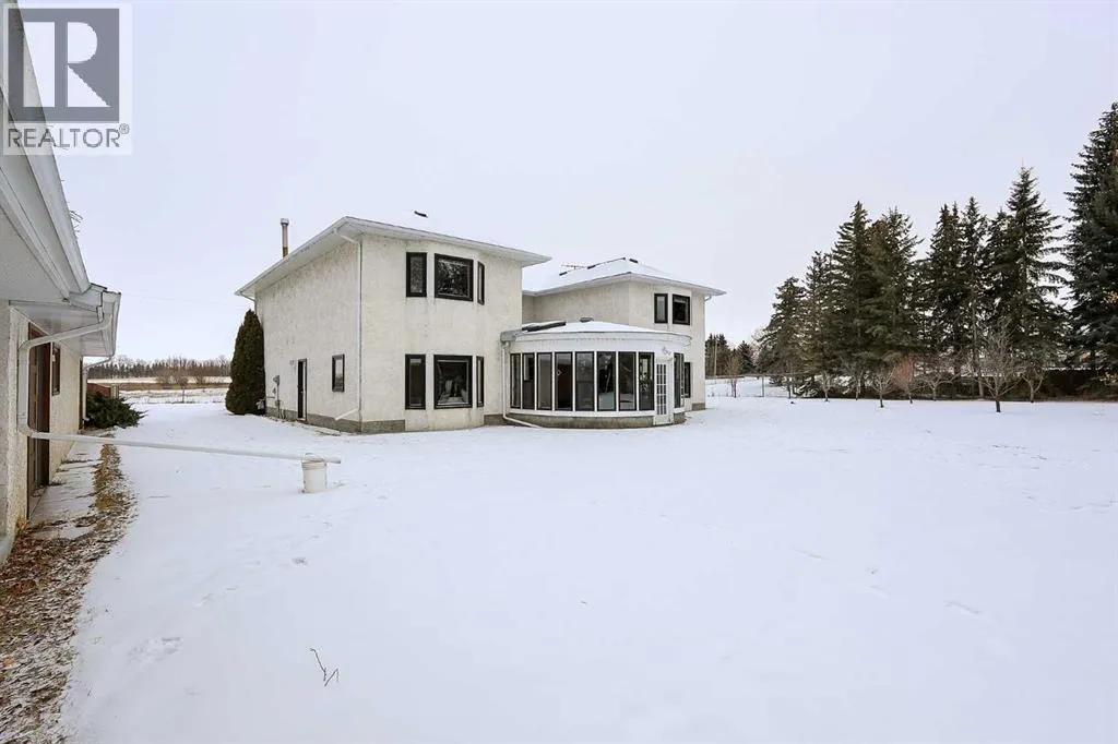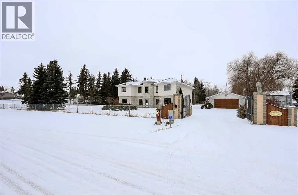 FULLY DEVELOPED, CUSTOM BUILT ESTATE HOME ON 1.08 ACRES ~ LOCATED IN MCKENZIE SUBDIVISION JUST MINUTES SOUTH OF RED DEER ON PAVEMENT ~ 48' X 24' & 22' X 28' DETACHED GARAGE & WORKSHOP ~ FULLY FENCED W/ELECTRIC GATED ENTRY ~ Pride of ownership is evident in this original owner home loaded with character ~ Recent updates include; new plumbing, new windows and new shingles ~ Welcoming entry leads to a spacious foyer with coffered ceilings, parquet flooring, a secret room, and large windows that fill the space with natural light ~ Archway leads to the oversized living room featuring a cozy wood burning fireplace with a raised hearth, mantle and stone surround, large windows overlooking the treed property ~ Sliding patio doors lead to the solarium with heated brick floors, hot tub, cedar lined ceiling with skylights, a bar with built in cabinets, hot tub, raised flower beds, and a wall of west facing windows that overlook the treed backyard and pond ~ The kitchen offers a functional layout, featuring tons of warm stained cabinets, ample counter space, open display shelving, window above the sink and space for a casual dining area ~ Just off the kitchen is a generous size mud room with ample closet space, a separate entry to the yard and garage, and huge walk in pantry with built in shelving ~ The formal dining room with French doors, another cozy wood burning fireplace with a raised hearth, mantle and floor to ceiling stone, plus tons of space to host large gatherings with ease ~ Home office is conveniently located just off the foyer and next to a 2 piece bathroom ~ Double stairs lead to the upper level bonus room that's flooded with natural light from an abundance of large windows ~ The private primary bedroom can easily accommodate a king size bedroom suite with space for a sitting area, and offers a walk in closet with built in organizers and an ensuite with an oversized vanity, walk in shower and a jetted corner tub ~ Second level laundry room~ 2 generous size guest bedrooms are located next to massive den with a west facing bay window overlooking the backyard ~ One bedroom has been converted to a kitchen and features white cabinets, and space for an eating area ~ Outside this fully fenced property is surrounded by mature trees offering shade and privacy and features a pond, greenhouse with a windmill, garden, gazebo, bar with power and custom seating, fire pit and two large garages with built in shelving and work benches ~ Located just minutes south of Red Deer, on pavement ~ Unbeatable convenience with easy access to Highways 2 and 2A, and walking distance to Gasoline Alley, where you'll find a wide range of amenities, including the popular Gasoline Alley Farmers' Market, Costco, Cineplex and transit to Red Deer, making it an ideal location for families and commuters alike. (id:27476)