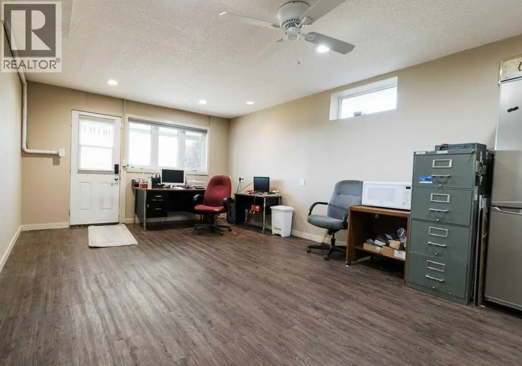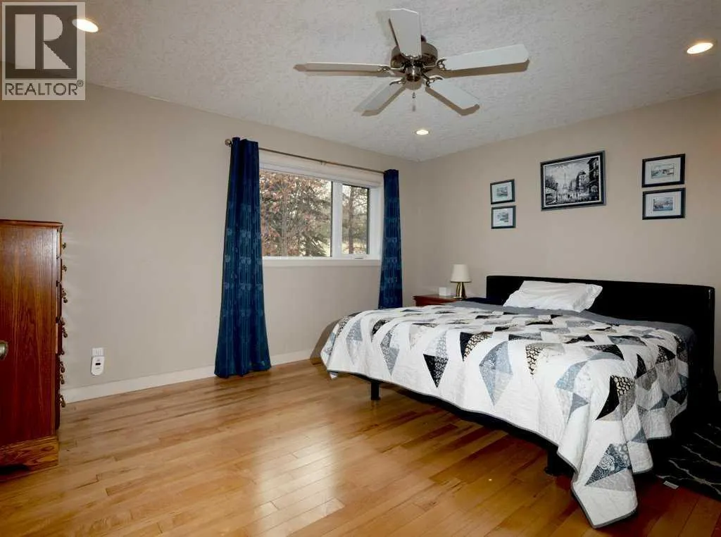 Escape to the perfect blend of privacy, space, and convenience with this beautifully updated walkout bungalow situated on a mature 3.23-acre parcel just 2 minutes east of Red Deer, overlooking the Balmoral Golf Course and offering stunning west-facing views. This impressive home welcomes you with soaring vaulted ceilings across the spacious living room and a fully renovated kitchen featuring a large island, lots of counter space, and rich maple cabinetryâideal for both everyday living and entertaining. The dining area is generously sized and bathed in natural light from expansive windows that showcase the picturesque yard and provide access to the upper deck. The main floor hosts two well-appointed bedrooms, including a comfortable primary suite complete with a 4-piece ensuite, along with a versatile office space near the back entrance that could easily serve as an additional bedroom. Convenient main floor laundry offers ample room for storage and a stand-up freezer. Downstairs, the fully finished walkout basement boasts luxury vinyl plank flooring, two additional bedrooms, a den, a large office, another 3-piece bathroom, and abundant storage space, making it perfect for families or those needing extra room to work from home. Outside, youâll find a detached double garage with built-in shelving, a second expansive deck, and a fully fenced garden area designed to keep wildlife at bay. A standout feature of this property is the massive 5,000+ sq ft metal fabrication shopâan incredible opportunity for business owners, hobbyists, or anyone in need of substantial workspace. This rare acreage offers the tranquility of country living with the convenience of city amenities just minutes away. (id:27476)