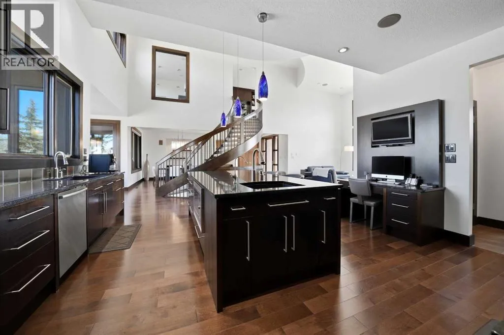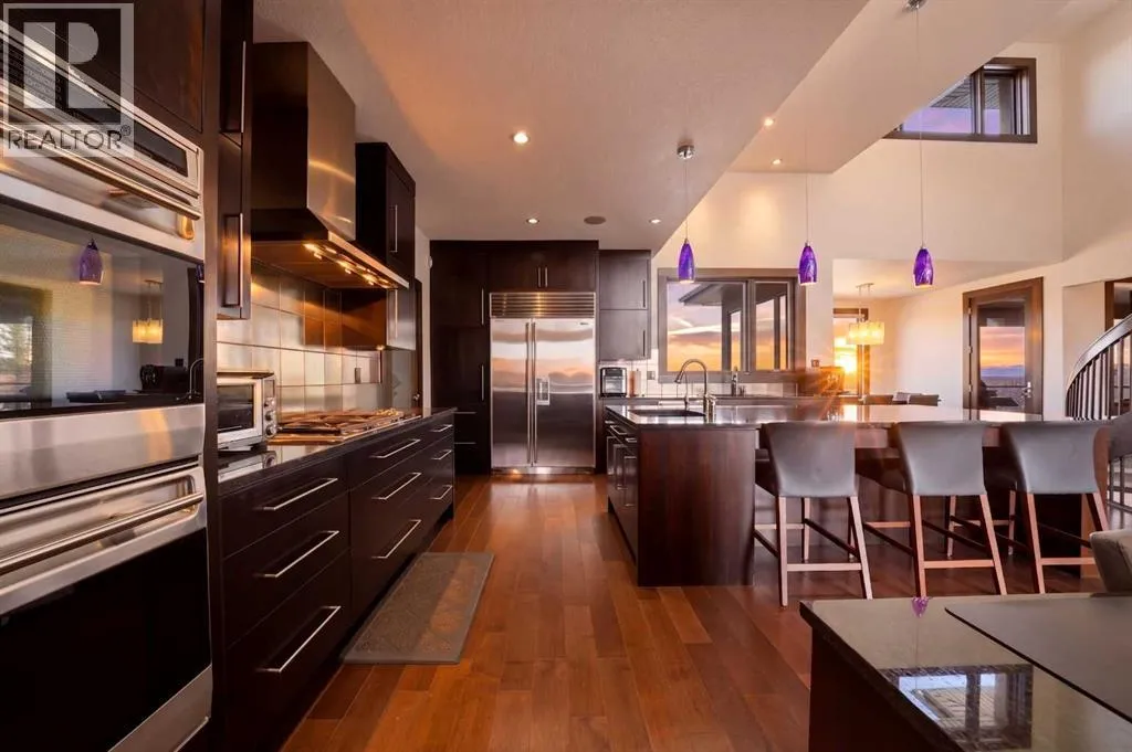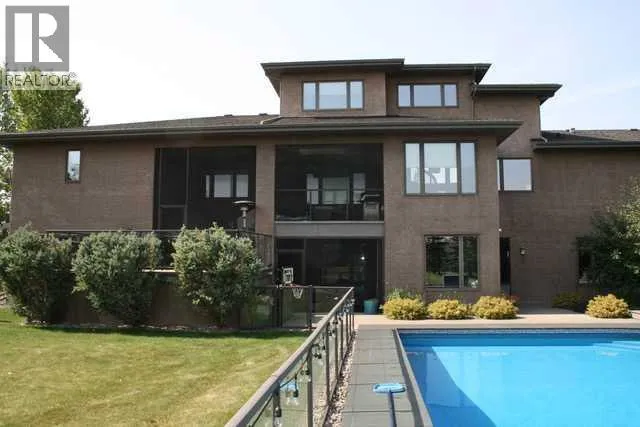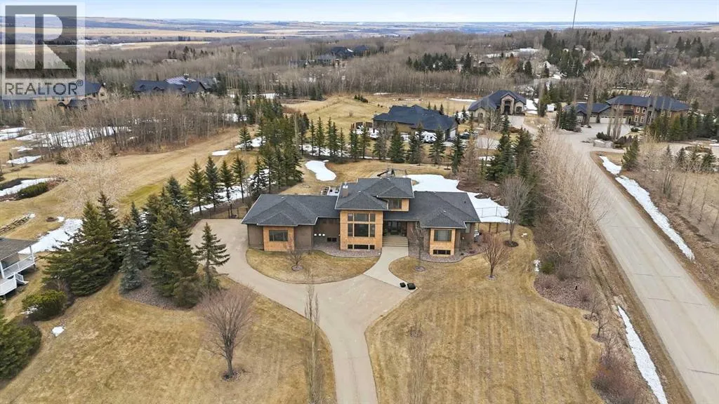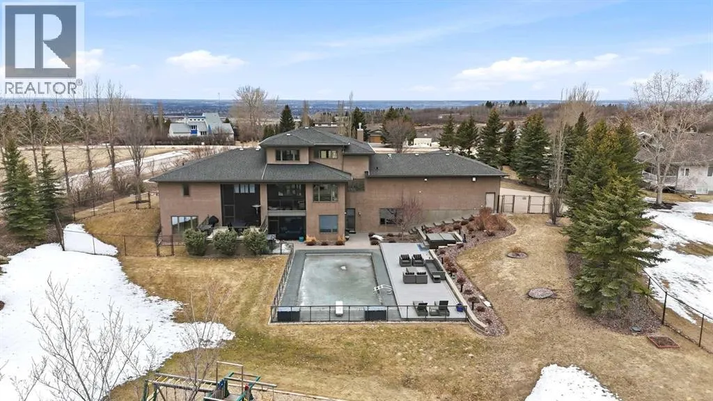 Welcome to this exceptional original owner, custom-built walkout estate in the desirable community of Balmoral Heights! 2 acres featuring a true outdoor oasis complete with a pool, this property offers over 5,800 sq ft of fully developed living space with 5 bedrooms, 5 bathrooms & triple heated garage âa rare combination of space, luxury, & functionality. Built by Bowood Homes, the quality is evident from the moment you arrive. The striking exterior leads into a grand interior highlighted by a spiral staircase centrepiece, beautiful hardwood floors, fresh professional paint throughout, soaring ceilings, an abundance of natural light, and a built-in indoor & outdoor sound system. The main living space is bright and inviting, with stunning city views and a custom gas fireplace, seamlessly flowing into the show-stopping kitchen. Designed for both everyday living and entertaining, the kitchen features Sadona cabinetry, Sub-Zero & Wolf appliances, granite countertops, an oversized pantry with custom shelving, a sink overlooking the pool deck, and a large centre island with prep sink. Large gatherings are effortless with both a formal dining space and a dining nook that leads to the screened-in patio with heaters, allowing for comfortable enjoyment. The primary suite is a true retreat, filled with natural light and complete with a spa-inspired ensuite featuring a soaker tub, oversized tiled shower, in-floor heat, and double vanity with quartz countertops. Two additional upper bedrooms (including one with a walk-in closet) are connected by a Jack & Jill bathroom with separate vanitiesâideal for families. Upstairs also offers a versatile office/reading nook, perfect as a bonus space to suit your needs. The fully developed basement is built for entertaining, featuring in-floor heat, a spacious rec area large enough for a pool table, poker setup, theatre space, plus some. The wet bar is a standout with ample cabinetry and counter space, along with access to the wine cellar (c ooling unit new in 2025). The basement continues to impress with two additional spacious bedrooms, including one with its own 4-piece ensuite and walk-in closetâperfect for guests or extended family. Beyond the bedrooms, youâll find a fully finished gym space along with a versatile family room that functions perfectly as a playroom or additional lounge area. Step outside from the basement to the covered patio featuring a gas fireplace, creating a seamless indoor-outdoor living experience. The backyard is truly a private oasisâfully fenced for peace of mind with kids and pets, and highlighted by a heated pool with upgraded liner and pool deck, hot tub, and beautifully maintained grounds. The ultimate space for entertaining or relaxing all summer long. Additional features: Central A/C, on-demand hot water, reverse osmosis system, high-speed fibre optic, lutron lighting, irrigation along the tree line, dog run, & abundant storage. An estate that checks every boxâlocation, size, quality, and lifestyle. (id:27476)