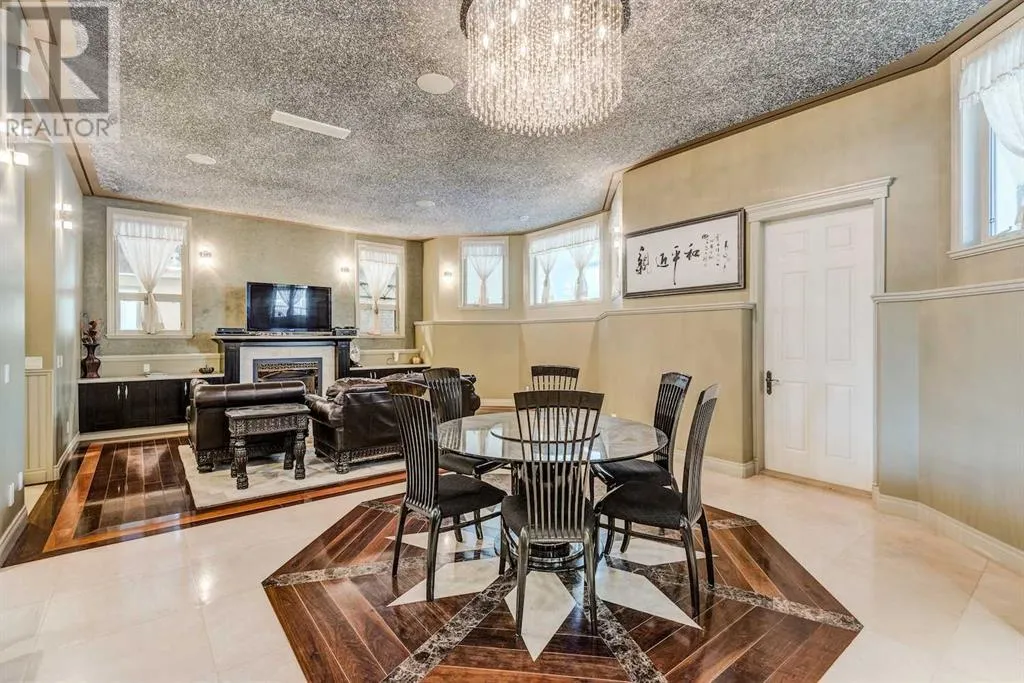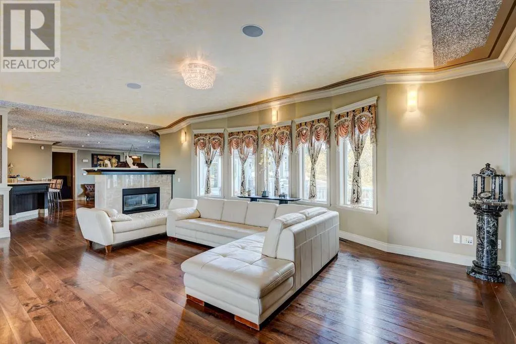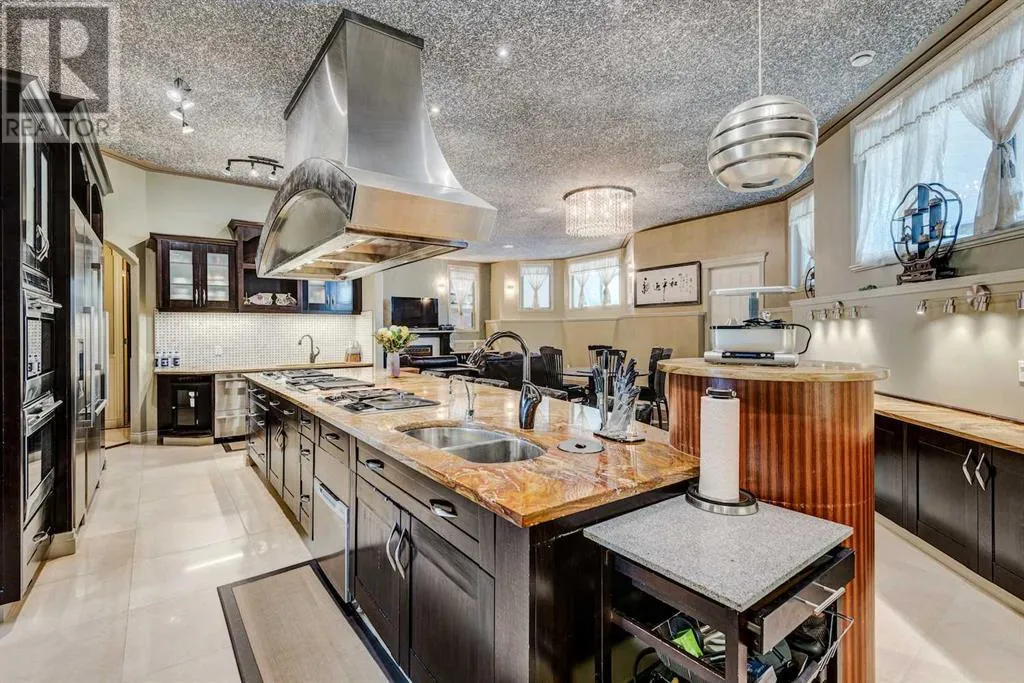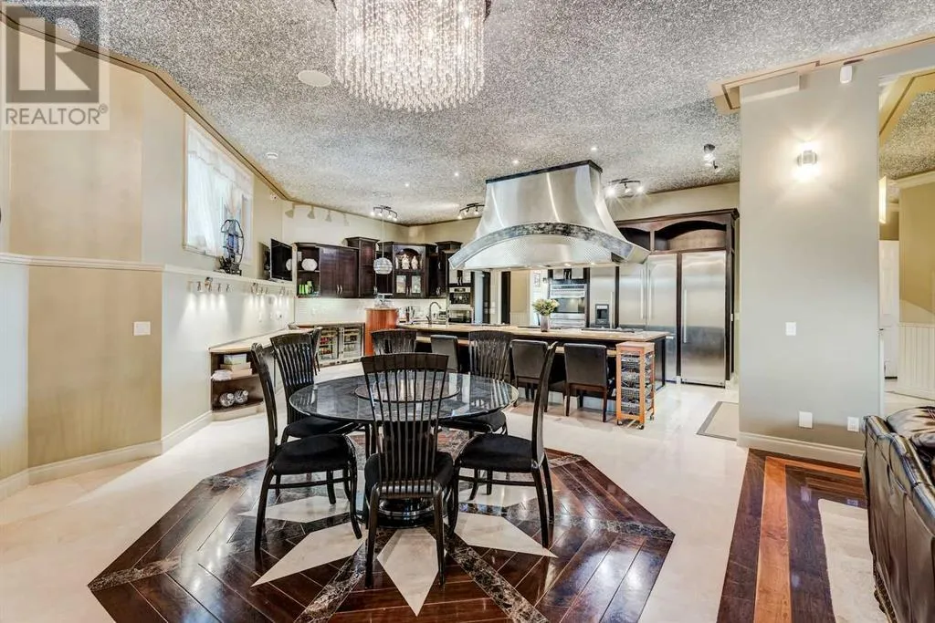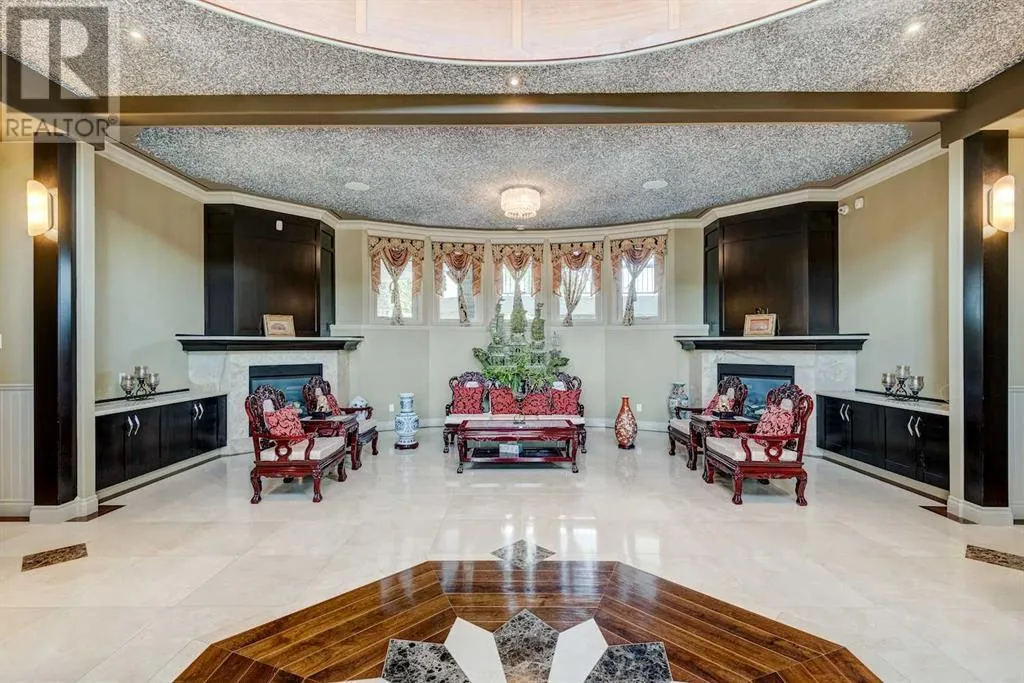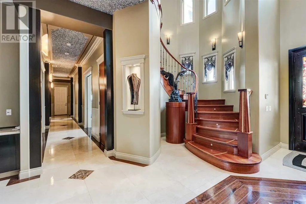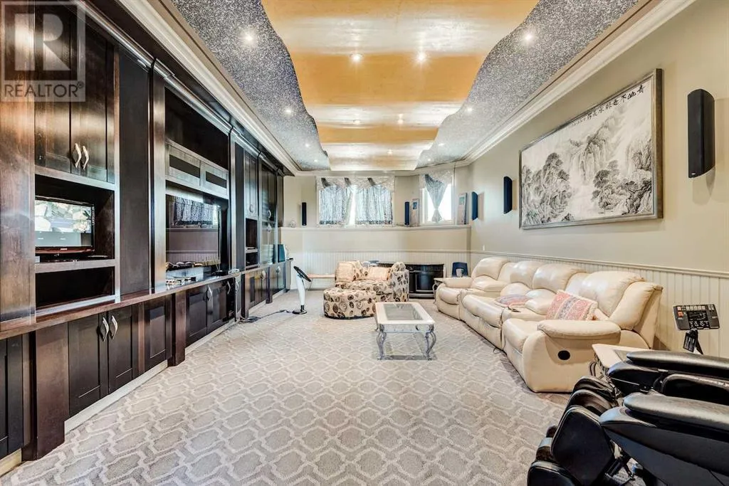 This architectural masterpiece offers an impressive fully furnished 13,500 SF of lavish living space, including a sprawling 2,700 SF gymnasium. A grand foyer, adorned with an imperial spiral staircase, warmly welcomes your guests. High ceilings grace this abode, featuring 7 bedrooms, 6 ensuite bathrooms, 3 additional bathrooms, an exercise room, a theatre room, and a formal dining room.This custom-designed residence offers an array of luxurious amenities, meticulously crafted for your entertainment and pleasure. The interior spaces are versatile, accommodating everything from formal dinners and cocktail soirées to movie nights, fully equipped karaoke system and lively games of basketball or badminton. The main level also boasts a bright sitting area with a well-appointed bar, a games area, and a magnificent sunroom. The open gourmet kitchen comes equipped with high-end built-in appliances, satisfying even the most discerning chefs. The primary bedroom retreat is a true oasis, complete with a cozy sitting area, a balcony, a walk-in closet with custom organizers, a soothing waterfall shower, and a rejuvenating Jacuzzi tub. Outside, a multi-level deck and terrace provide covered and open spaces for outdoor entertainment, all while offering panoramic views of the rolling Calgary hills. The private backyard is enveloped by lush landscaping and towering trees. With a 5-car insulated oversized garage and ample paved parking for guests, convenience is never compromised.Ideally situated, this home is just a short 5-minute drive from Bearspaw Golf Club and only 10 minutes away from Calgary's shopping, restaurants, schools, and more. Designed with the principles of Feng Shui, this estate fosters balance and harmony between you and the natural world that surrounds it. Don't miss the opportunity to make this stunning property your own. (id:27476)