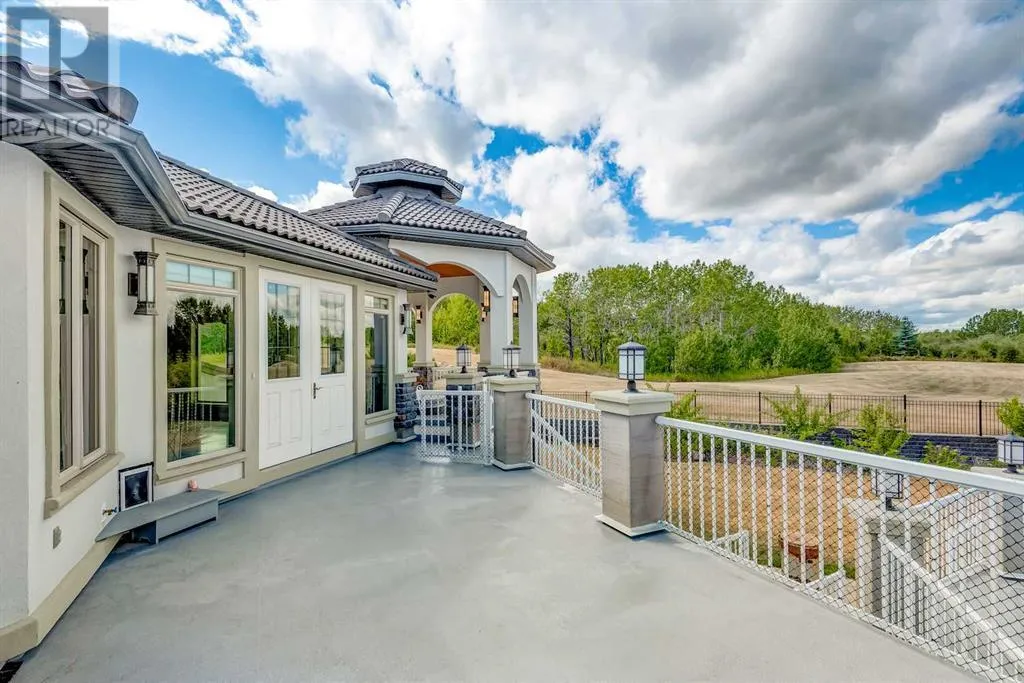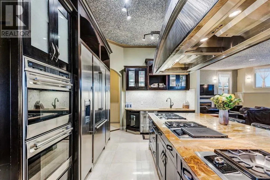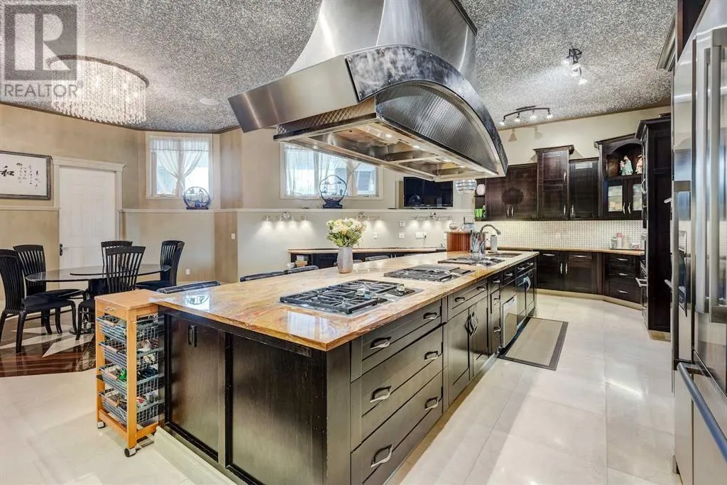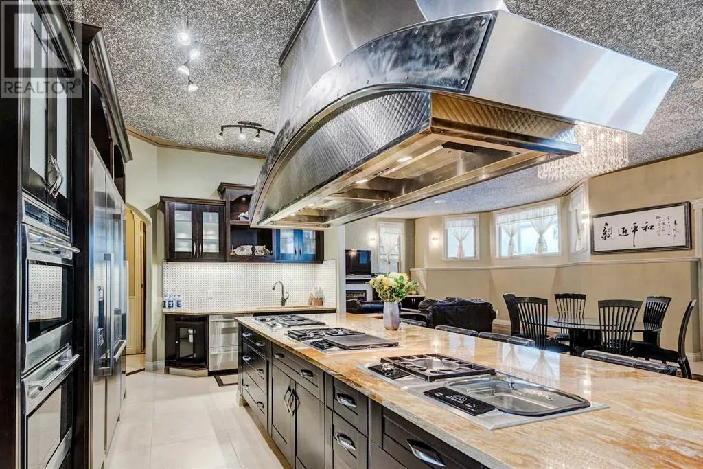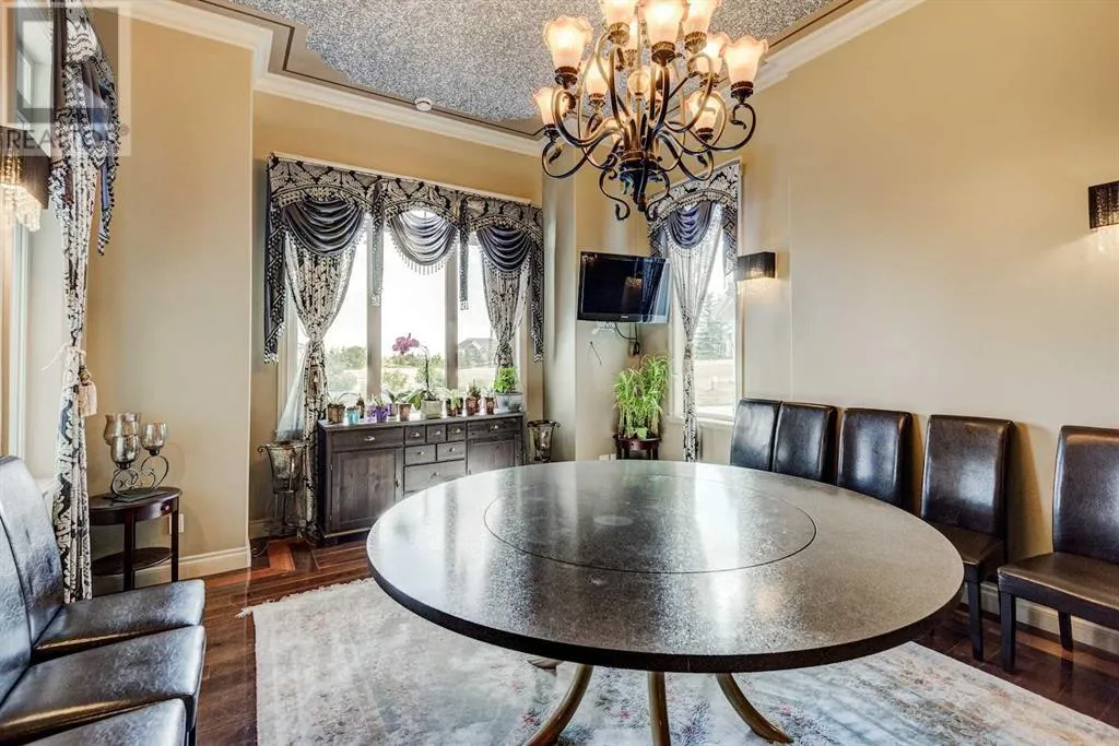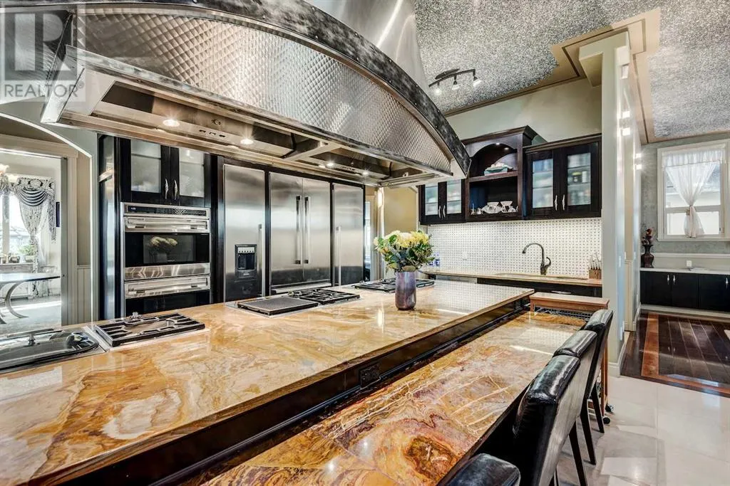 This architectural masterpiece offers an impressive fully furnished 13,500 SF of lavish living space, including a sprawling 2,700 SF gymnasium. A grand foyer, adorned with an imperial spiral staircase, warmly welcomes your guests. High ceilings grace this abode, featuring 7 bedrooms, 6 ensuite bathrooms, 3 additional bathrooms, an exercise room, a theatre room, and a formal dining room.This custom-designed residence offers an array of luxurious amenities, meticulously crafted for your entertainment and pleasure. The interior spaces are versatile, accommodating everything from formal dinners and cocktail soirées to movie nights, fully equipped karaoke system and lively games of basketball or badminton. The main level also boasts a bright sitting area with a well-appointed bar, a games area, and a magnificent sunroom. The open gourmet kitchen comes equipped with high-end built-in appliances, satisfying even the most discerning chefs. The primary bedroom retreat is a true oasis, complete with a cozy sitting area, a balcony, a walk-in closet with custom organizers, a soothing waterfall shower, and a rejuvenating Jacuzzi tub. Outside, a multi-level deck and terrace provide covered and open spaces for outdoor entertainment, all while offering panoramic views of the rolling Calgary hills. The private backyard is enveloped by lush landscaping and towering trees. With a 5-car insulated oversized garage and ample paved parking for guests, convenience is never compromised.Ideally situated, this home is just a short 5-minute drive from Bearspaw Golf Club and only 10 minutes away from Calgary's shopping, restaurants, schools, and more. Designed with the principles of Feng Shui, this estate fosters balance and harmony between you and the natural world that surrounds it. Don't miss the opportunity to make this stunning property your own. (id:27476)