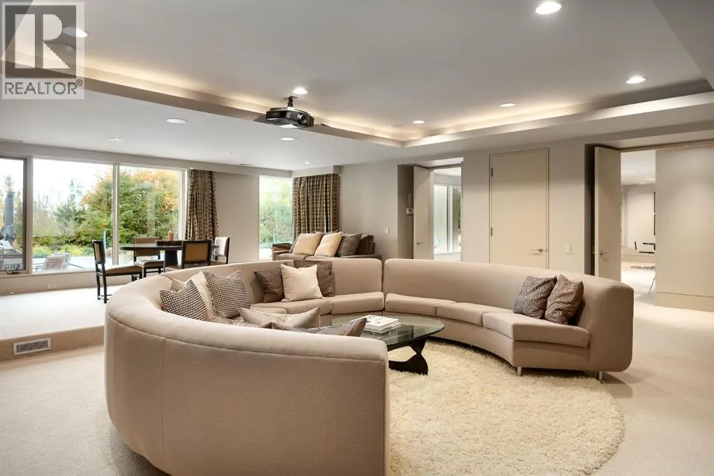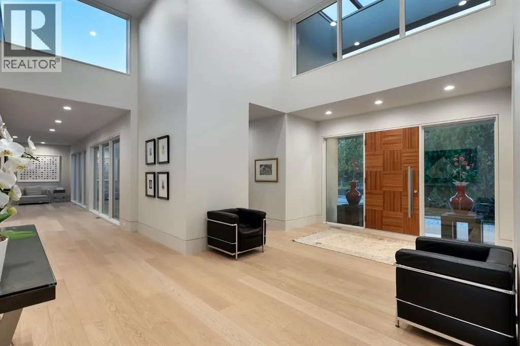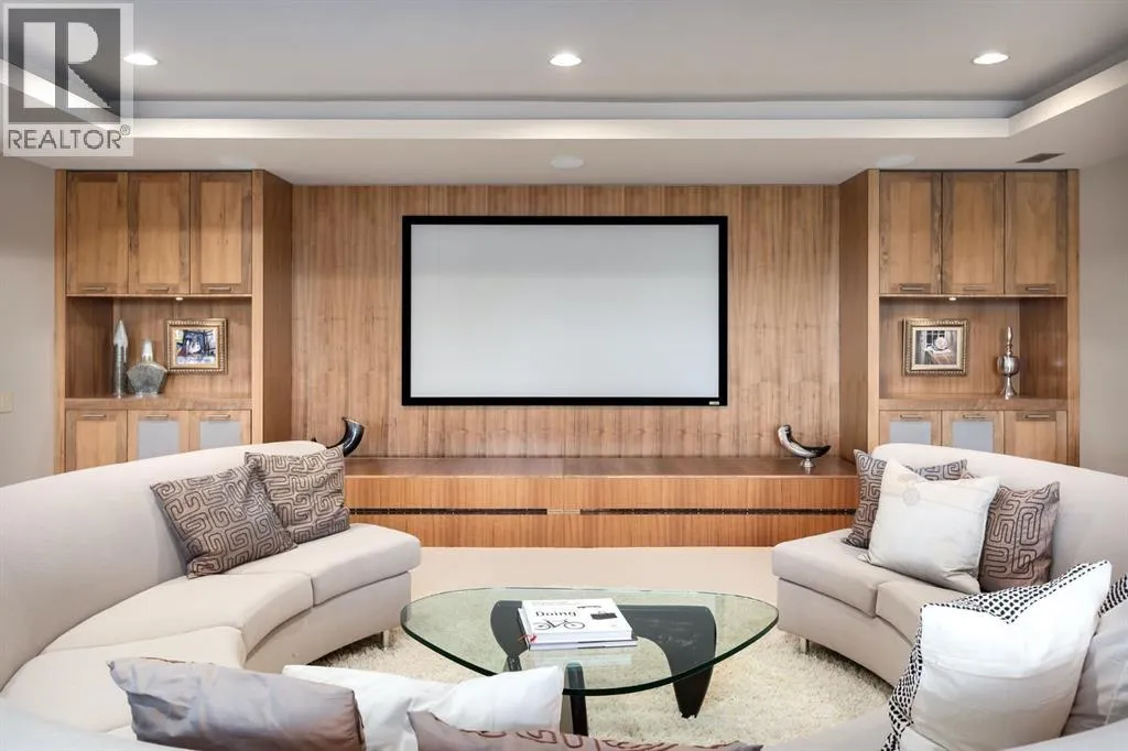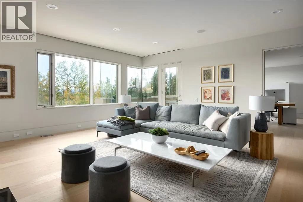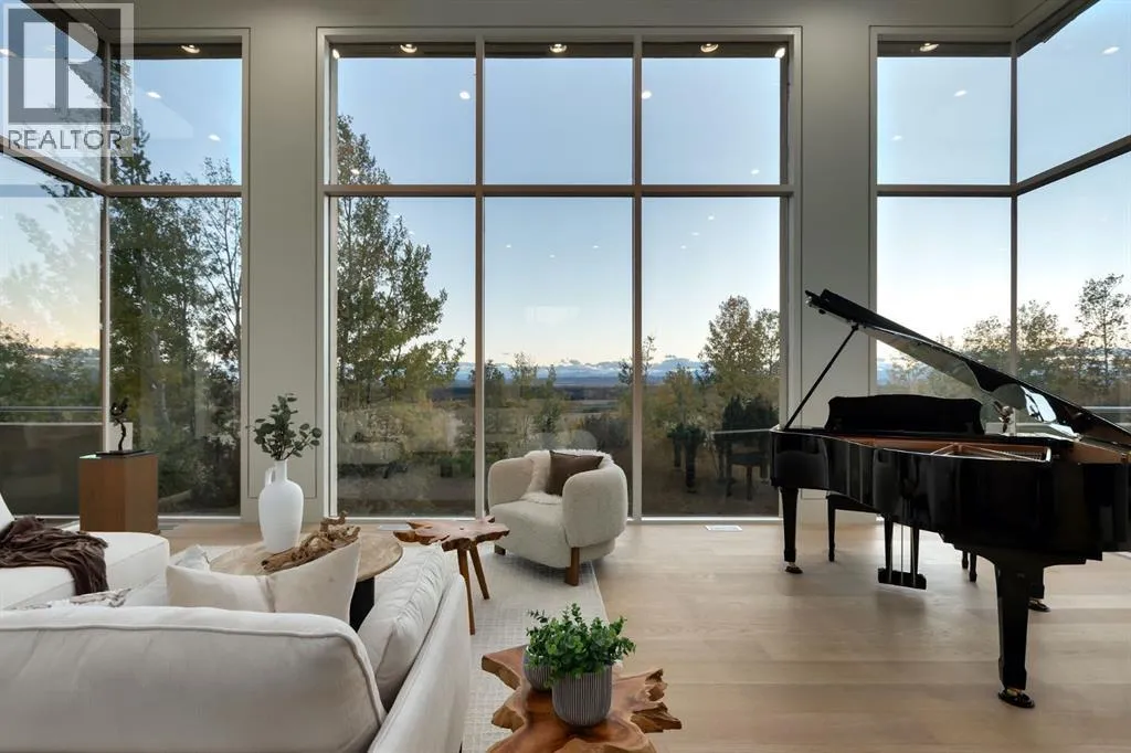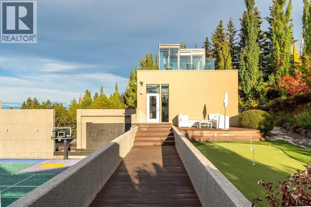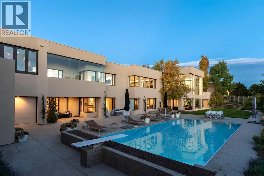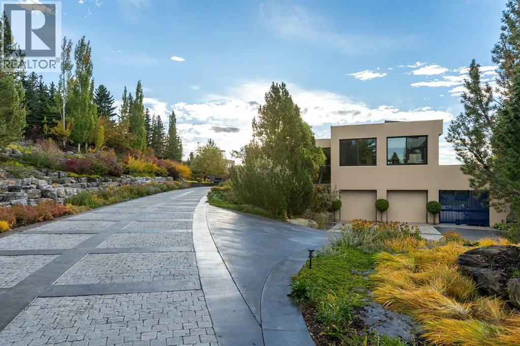 Seize a rare opportunity to own an iconic landmark in the prestigious southwest Springbank area, one of Calgaryâs most coveted locations. Set on an expansive 18.62-acre escarpment, this exceptional property offers stunning mountain views and unparalleled privacy. Designed with new-age minimalism, this 20,000+ sq ft estate is a serene retreat for the discerning buyer. Located just minutes from Stoney Trail West, on the edge of Calgary, this secluded paradise offers the ultimate in luxury living. With 6 bedrooms + 10 bathrooms + 2 large offices, the home features stunning architectural design, including soaring flat & vaulted ceilings, a grand two-story great room illuminated by expansive windows. The contemporary living spaces are complemented by a soothing wood fireplace & ZEN garden inspired hallway views. The spacious dining room, perfect for memorable gatherings, overlooks beautifully landscaped grounds and majestic mountain vistas. Ample vehicle storage includes an oversized 3 car garage, a 2 car garage, and an additional oversized auxiliary 3 car garage (all heated). The gourmet kitchen is a chefâs dream, featuring a Wolf gas range with dual ovens, a built-in refrigerator, a walk-in pantry, an oversized granite island and custom white oak cabinetry. The adjacent family room includes a cozy fireplace, while the sunroom with another fireplace is perfect for family game or movie nights. The bedroom wing, secured by fire doors, houses the luxurious primary suite, a tranquil haven with views of mature trees and a lounge area with a fireplace. The ensuite boasts a deep soaker tub, granite dual-sink vanity, dual toilets, a bidet, and 2 oversized showers, along with a spacious walk-in closet. Four additional bedrooms, each with its own ensuite, are located in the bedroom wing, along with a laundry room and extra storage. Heated floors throughout both the main and lower levels provide year-round comfort. The lower level offers an additional bedroom with a full bathroom, a dedicated hot tub room, a spacious exercise room, an office and a large recreation room. A nearby bar and media room add to the entertainment space, while a walk-up entrance leads to the beautifully landscaped backyard, where a large in-ground pool awaits. Outdoor spaces include southwest-facing decks and a patio, a vast yard, and a middle courtyard with a sports court. An auxiliary building offers potential as a future guest house. The property has undergone millions of dollars in recent landscaping, with paved and natural pathways, waterfall features, and hidden sitting areas. Two security gates, fencing, and surveillance cameras ensure your privacy and security. This magnificent estate offers a private oasis with rolling hills, lush gardens, and elaborate landscaping that rivals anything in Aspen Hillsâyet is only five minutes away from top-tier private schools. Experience the pinnacle of luxury living in Canada. Schedule your private tour today and discover all that your next home has to offer. (id:27476)
