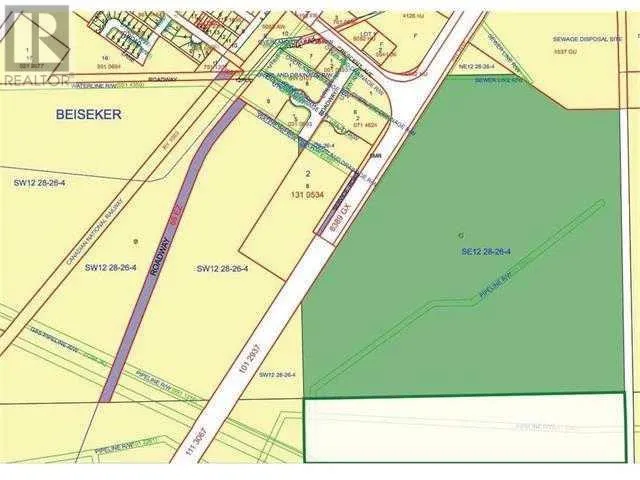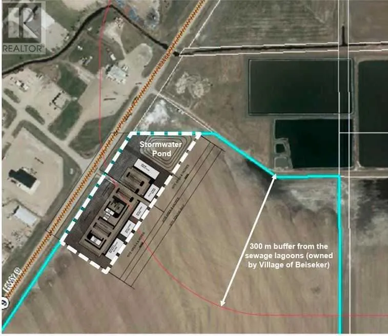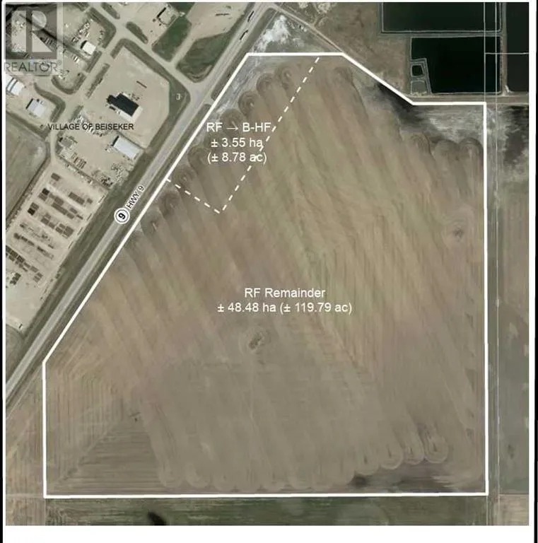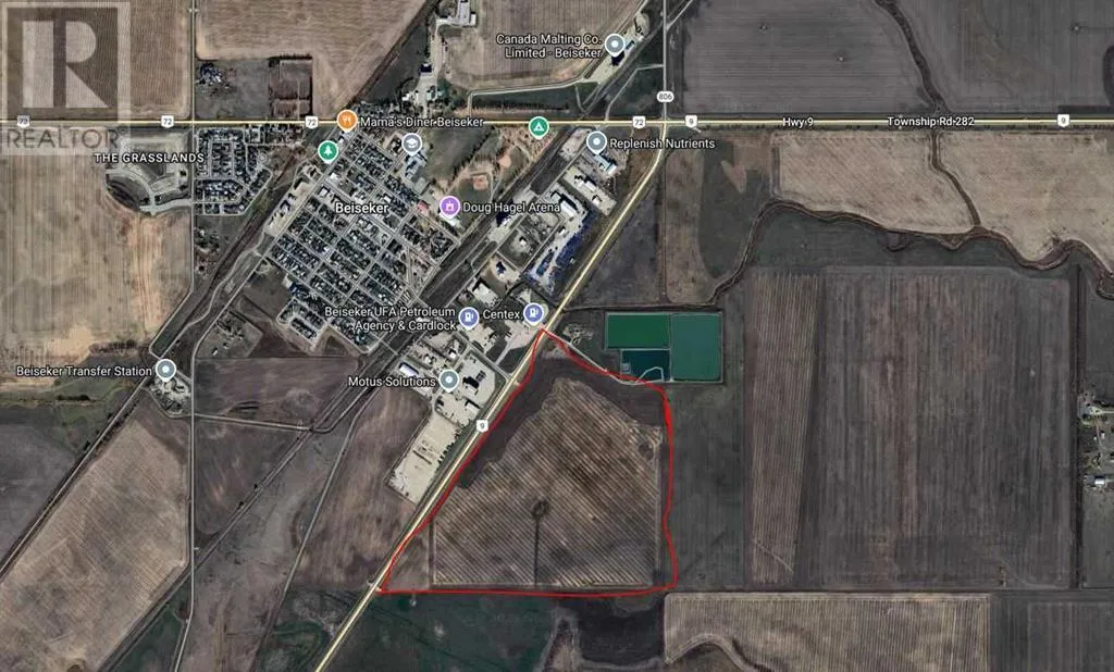 Due to financing, the property came back on the market again, a Great opportunity to own land next to the Village of Beiseker, totalling 128.57 Acres of land. Recently approved 8 Acres of Highway business commercial with plans for review. These 8 acres of land are facing Highway #9 on the east side of Beiseker. Perfect for the development potential for Gas station, truck stop, tourist campground, restaurant, truck trailer service and more. The remainder of the land is farmland with currently two well sites on this parcel of land. (id:27476)
