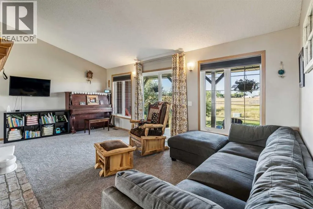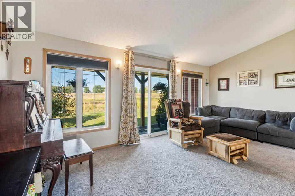 CHECK OUT the amazing AERIAL VIDEO of this property at this link: https://youtu.be/fjUYYL55fkQ. COME AND TAKE A LOOK AT WHAT COULD BE YOURS! THIS IS A FANTASTIC OPPORTUNITY TO HAVE YOUR OWN PIECE OF COUNTRY LIFE WITH CONVENIENCES CLOSE BY! With ~10 ACRES, you will have all of the land you need for your family to live and grow! As you drive onto the property, you will appreciate everything it has to offer! The beautiful home is situated so that you have both EAST AND WEST FACING DECKS to relax and have a coffee or watch a sunset with a glass of wine! The spacious BUNGALOW has lots of great features, such as 3 BEDROOMS on the main level, an OPEN KITCHEN with loads of cupboards and a LARGE PANTRY, with lots of counter space to prepare your favorite foods! The OPEN DINING area has plenty of room to share meals with family and friends. There is HUGE LIVING room, with ample space for everyone to spend time together making memories! The TWO SIDED GAS FIREPLACE adds a touch of coziness to this home, with access views from the kitchen and living room. From the living room, PATIO DOORS lead you to your back deck, ready for you to watch the kids playing in the yard! The PRIMARY bedroom is very large, with DOUBLE CLOSETS and a 3 piece ensuite. Downstairs, you will find a great PLAY AREA for lots of fun and games! There is also ANOTHER 3 piece bathroom, and a generous sized GUEST SPACE with wall to wall closets! The laundry is conveniently located here as well, along with a huge STORAGE room big enough for everything to stay organized! There is a large OFFICE, or you can use as a FLEX SPACE, whatever you want it to be! You will enjoy parking in the DOUBLE ATTACHED garage, which is HEATED and INSULATED, and comes complete with a big WORKBENCH, loads of convenient shelving, AND a sink for washing up! Plenty of additional parking just outside as well! Now come and check out the outdoor part of this property! The huge 47 x 43 foot BARN comes with 5 STALLS, an office and/or t ack room, hay storage AND front and back doors for easy access and drive though ability. Outside there are 4 horse PADDOCKS and PASTURE space, with many of the fences being recently replaced. The OUTDOOR RIDING ARENA is ready to go, complete with NIGHT LIGHTING! There are also 2 automatic waterers! The home has NEW SIDING in 2022, along with NEW ROOF and EAVES on both the home and the barn at the same time. This home had all NEW WINDOWS in 2011. The septic field was NEW in 2024 and has had a Septic Feasibility Report already done for you! Nothing for you to have to do but move in and enjoy! With Langdon just a short 5 minute drive away, you have a great selection of stores, restaurants, pubs, cafes and more - all of the services you need! It's easy access to major shopping in Calgary in just 15 minutes, or to downtown Calgary in 30 minutes! You can also head into Strathmore in 15 minutes for even more handy stores and activities! THIS IS THE LIFE YOU HAVE BEEN LOOKING FOR! COME AND GET IT! (id:27476)
