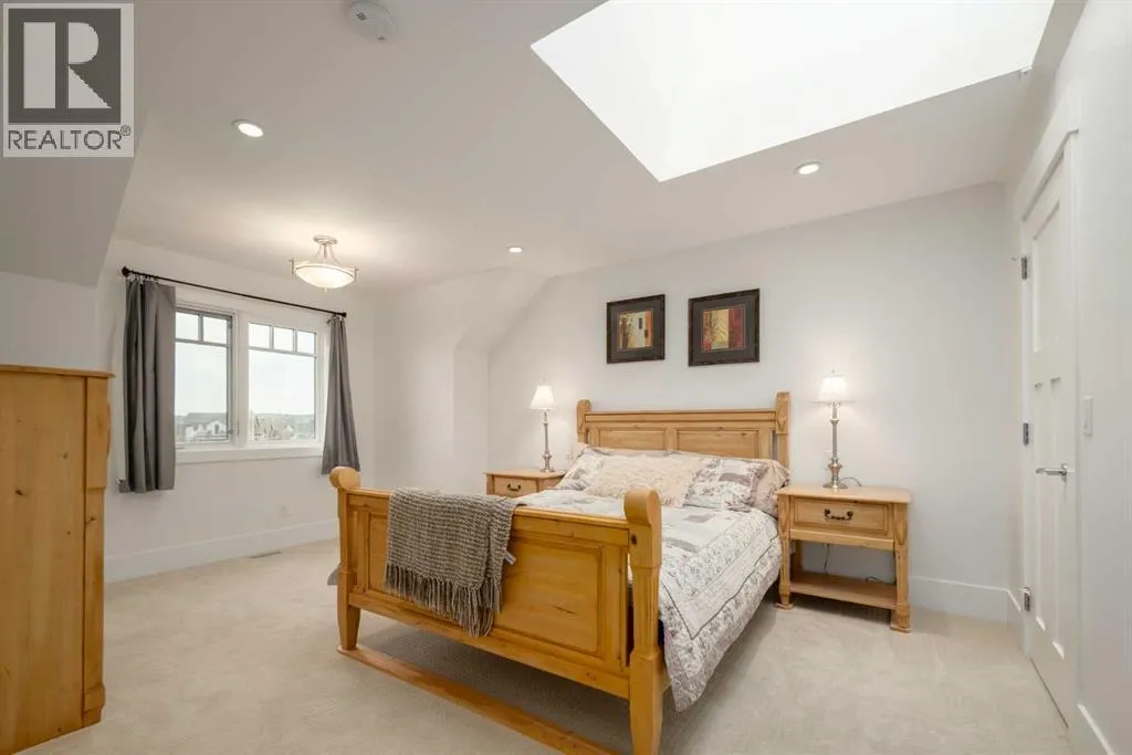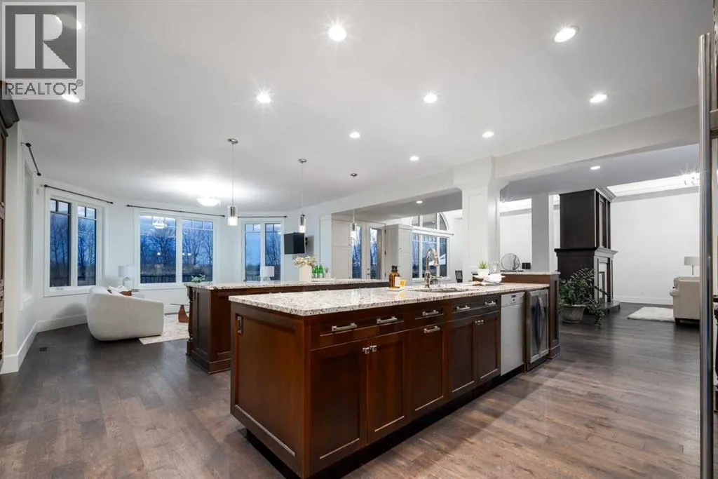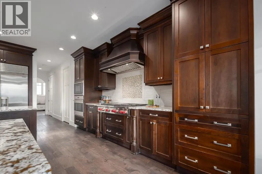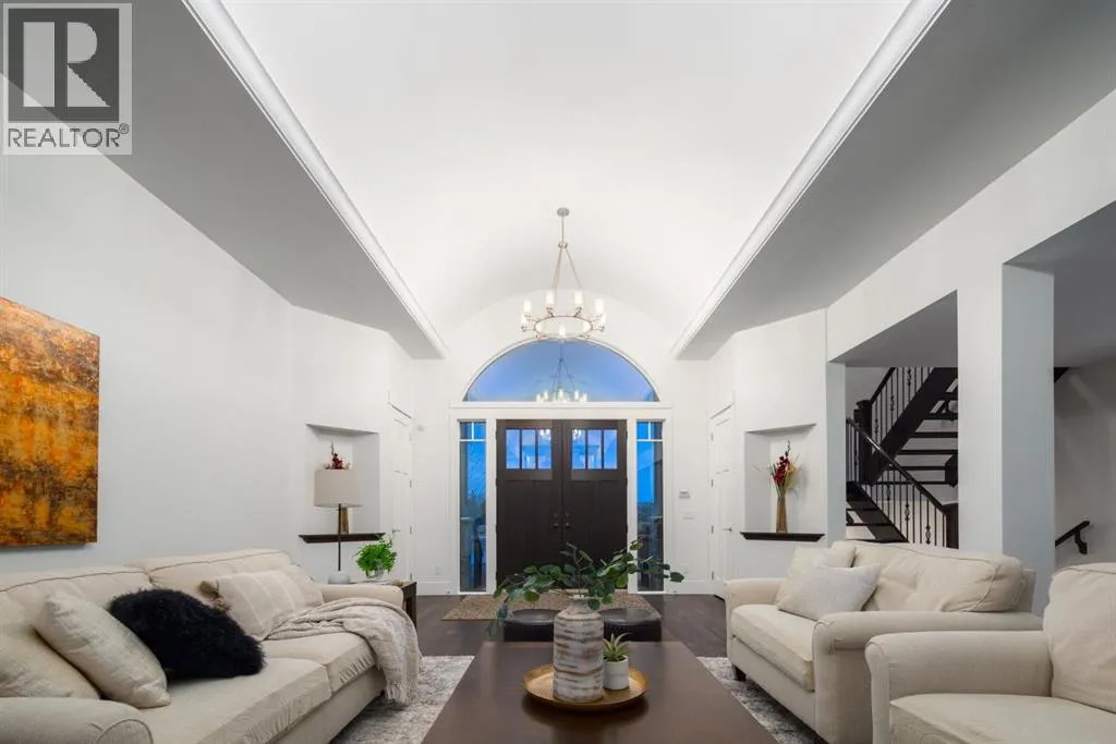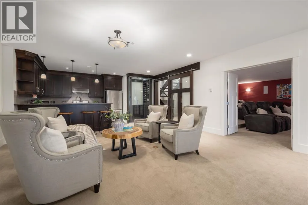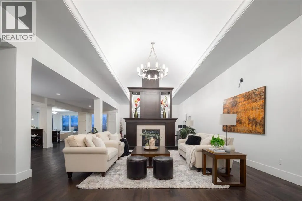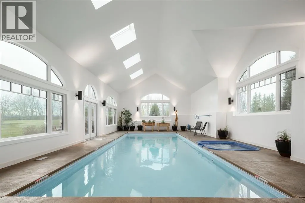 Located in prestigious Grandview Estates on a prime Southwest-facing lot with breathtaking Rocky Mountain views, this impressive custom-built estate offers over 8,500 square feet of exceptionally designed living space executed by renowned builder Maillot Homes. Recently refreshed with an updated color palette, the home feels modern, bright, and move-in ready. Featuring one of the largest residential solar installations in Canada, this property combines remarkable energy efficiency with luxurious family living. A grand barrel-vaulted ceiling feature welcomes you inside, where expansive living and dining areas are connected by a striking two-sided fireplace and framed by oversized windows that flood the space with natural light. The gourmet kitchen is truly the heart of the home, offering dual oversized islands, top-of-the-line Wolf & Sub-Zero appliances, abundant cabinetry, and a sun-drenched breakfast nook that opens onto the southwest deck â perfect for casual family meals or elegant entertaining. Designed for gathering and memory-making, the residence features an incredible indoor saltwater pool and hot tub oasis, an inviting media room for movie nights, and a wine room. A lower-level secondary kitchen, expansive rec room, and direct access to the pool area complete the walkout basement, where comfort meets entertainment at every turn. Thoughtful architectural details include an elevator providing access to all levels as well as the garage, ensuring long-term accessibility. A custom-built, handicap-accessible Jack and Jill bathroom on the lower level features a curb-less shower and a wheelchair-friendly sink, an oversized four-car garage with dog wash and RV bay, and an abundance of strategically placed skylights enhancing the natural light throughout the home. The upper level offers a bonus room suite with a private bedroom and full ensuite, perfect for guests or extended family. The primary retreat is a true sanctuary, featuring a private balcony with unobstruct ed Southwest views, a romantic two-sided fireplace, and a spa-like ensuite with in-floor heating and a large walk-in closet. A dedicated study loft with built-in desks provides a quiet workspace for students or remote work needs. The walkout level is equally impressive, offering two additional bedrooms, a change room with full bathroom for pool guests, a second laundry area, and expansive entertaining spaces that open seamlessly to the outdoors. The fully landscaped outdoor areas include an expansive Southwest deck, a lower walkout patio, a fenced dog run, invisible pet fencing, and a cozy firepit area, making this property as functional as it is beautiful. With Calgaryâs top private schools and an abundance of retail shopping within a ten-minute drive, this property is ideally suited for families looking for privacy paired with convenience. This extraordinary residence is a true legacy property, offering an unparalleled lifestyle just minutes from city conveniences. (id:27476)