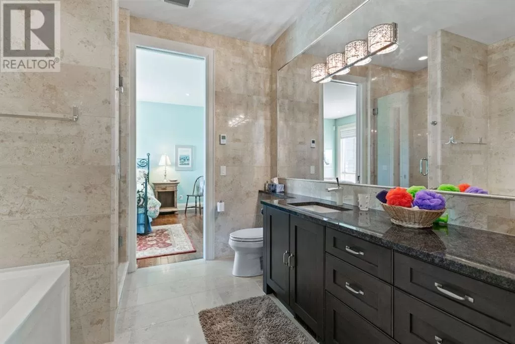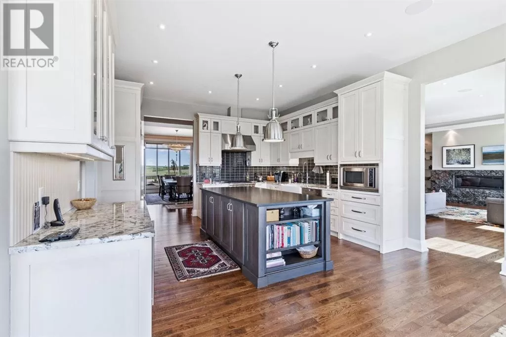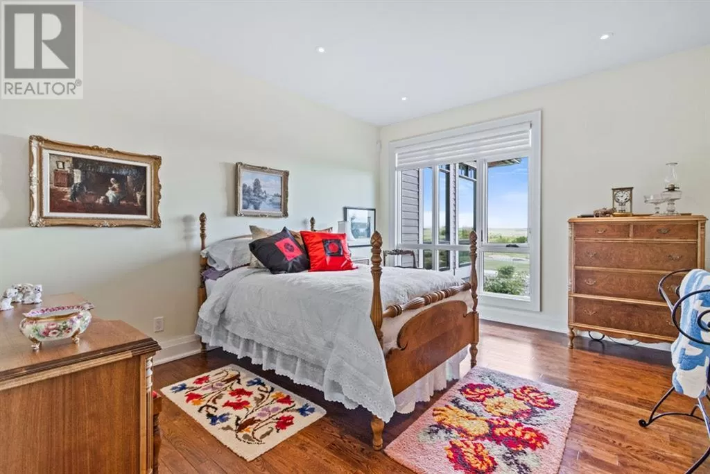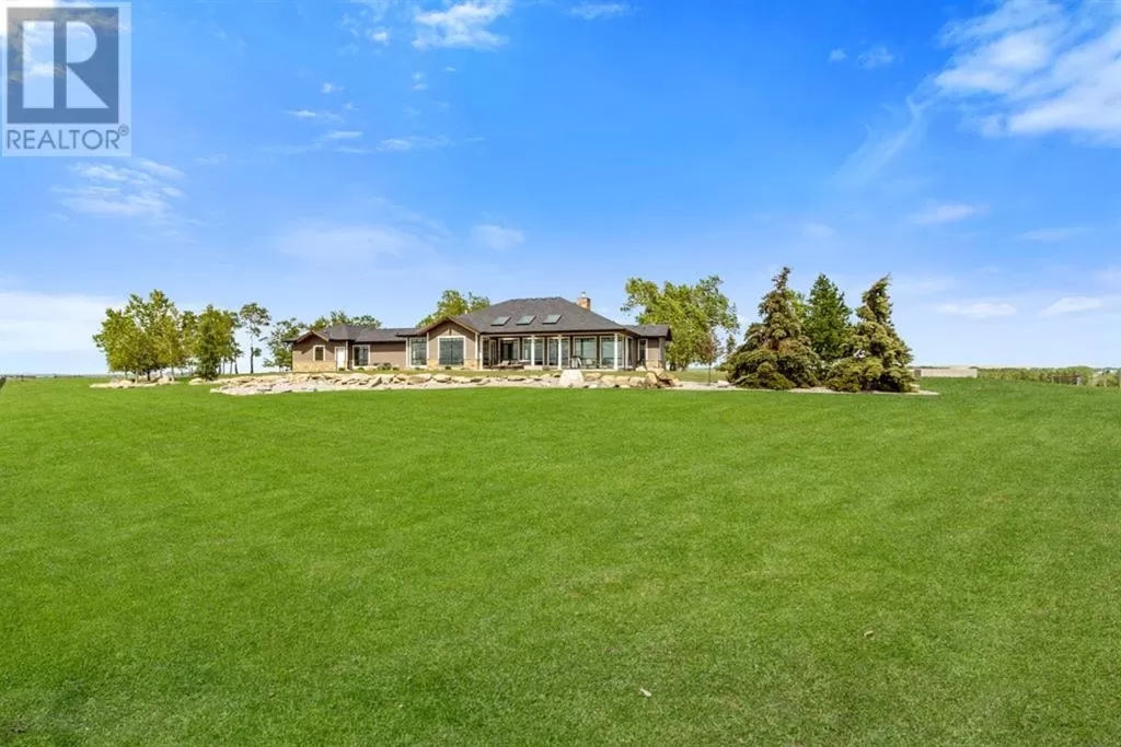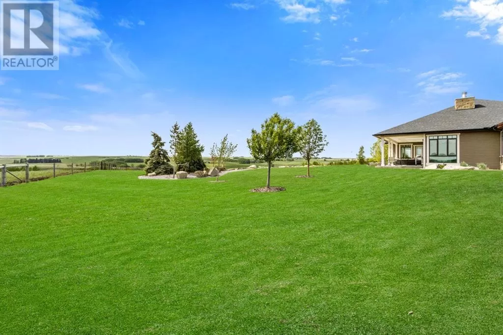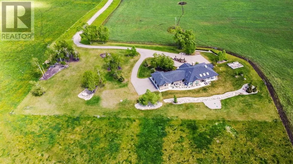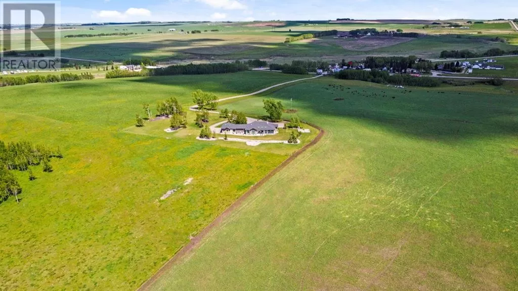 Stunning Custom Built Bungalow sitting atop the biggest hill on 122 acres with breathtaking views in all directions. Unobstructed mountain views to the west, golf course to the north, the friendly hamlet of madden east and south for miles! Enter from your gated private paved lane-way and find this architectural thing of beauty at the peak. This home is just shy of 4000 sq/ft on the main level and boasts another 2700sq/ft of developed space in the basement. The main floor has gleaming hardwood flooring throughout along with slate entry and heated tile flooring in all the bathrooms. Oversized low UV transmission windows with Hunter Douglas blinds throughout helps capture the most amazing landscapes. The executive chefs kitchen has stainless steel appliances including a Wolff gas stove, Sub Zero fridge, Dacor wall oven and microwave. All cabinetry milled by Legacy with soft close and upgraded shelving and storage. Huge center island with Cambrian Black satin granite is a classic focal point in this exquisite home. There are two dining areas for all sizes of gatherings and a huge living room with descending TV from the ceiling and natural gas fireplace. The large master bedroom comes with a 4 piece en-suite with modern tiled shower, his/her sinks in Bianco Rhino marble and a walk in California closet. Main floor is completed with two other bedrooms with California closets and Jack n Jill 4 piece bathrooms, an office, and den adjacent dining room. The second fireplace is found in the library or study for those that like to kick back with a glass of wine and enjoy a good book. Basement is finished with a huge family/ games room and tons of storage. The attached triple garage measures 38x22 it has a separate entry and big bright windows and upgraded wood doors. The west facing concrete patio is covered with skylights so you can enjoy it in all weather! The property is professionally landscaped with mature trees and raised garden boxes for the green thumb. Extra features i nclude 2 independent furnaces and AC systems, in-floor heating, water softening system, instant hot water, in-wall Vacu flo, Sonos sound, Security system and more! Combination of pasture and grade A crop land with good perimeter fencing. Rare opportunity to own a beautiful parcel of land this size commutable to Calgary with an equally magnificent home to match! (id:27476)
