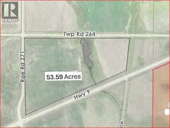 Excellent potential for this 53.59 Acres. Located 16 miles east of Balzac. The lot faces onto Highway 9. An irrigation fed creek crosses the easten end of the land. The property has resource income from a gas well lease and the land is leased each growing season to a regional farming operation. Will make a great location for a country home. Kathyrn K9 school is located nearby. Easy access, with dust free paved roads on three sides. (id:27476)