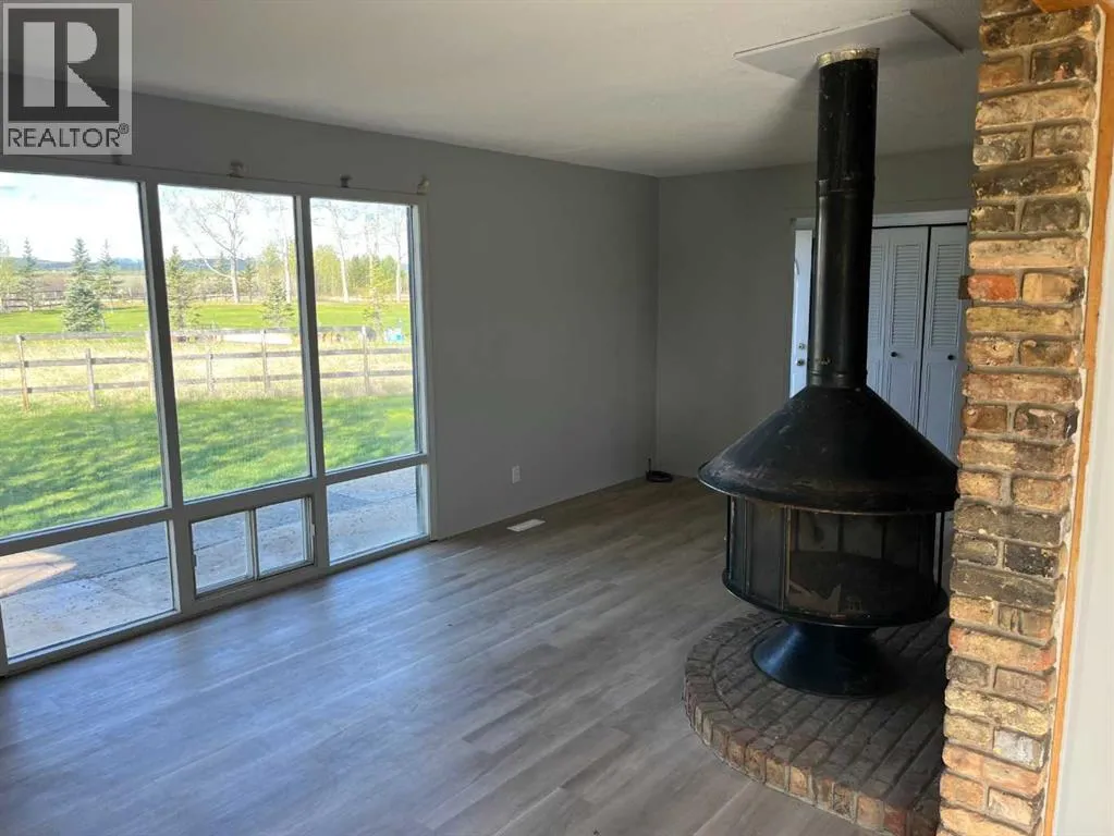 Embrace the best of country living just minutes from the city on this scenic 10-acre parcel in Rocky View County. Set well back from the road behind mature trees and fencing, this 3-bedroom bungalow offers privacy, tranquillity and sweeping views of the Rocky Mountains. Whether youâre starting your acreage journey or downsizing with room to roam, this property delivers the ideal rural lifestyle, with city convenience still within easy reach. Inside, the home has been freshly painted and features all-new plank flooring throughout. Oversized windows in the living and dining areas frame breathtaking mountain views and draw in natural light from dawn to dusk. A charming wood-burning stove set against a brick surround adds warmth and character, complemented by a wood-beam ceiling for a touch of rustic appeal. The kitchen offers functional space to make your own, while the open layout encourages easy flow for everyday life and casual entertaining. Three well-sized bedrooms are tucked down the hall, including a primary with a private 3-piece ensuite. A second 4-piece bath adds family-friendly convenience. The full basement remains undeveloped and ready for your vision. Step outside and experience the full potential of country living. The land is fenced and cross-fenced with a horse shelter and a mix of open pasture and tree shelter. The attached rear storage offers practical utility, while the orientation of the home captures panoramic mountain views and golden prairie sunsets. Located just a short drive from the Calgary city limits, this peaceful property offers space to grow, play, and unwind, with the benefit of proximity to shopping, services, and commuter routes. It is only a short 10 minute drive to Westhills Shopping Centre, with its multitude of shops, restaurants and entertainment. Whether you're looking for your first acreage or a manageable homestead close to the city, this is a rare opportunity to enjoy nature, views and potential on your terms. Water is trucke d in to property! (id:27476)