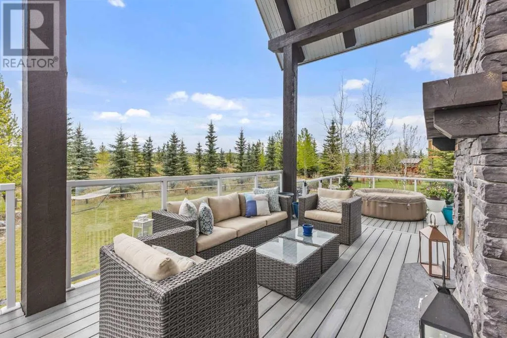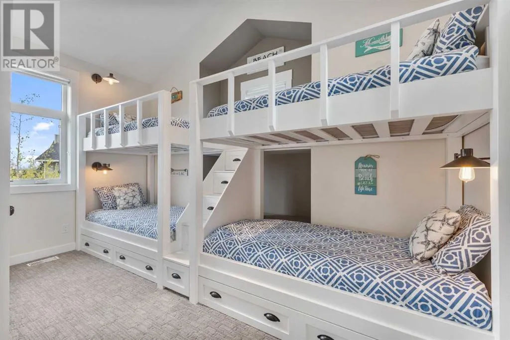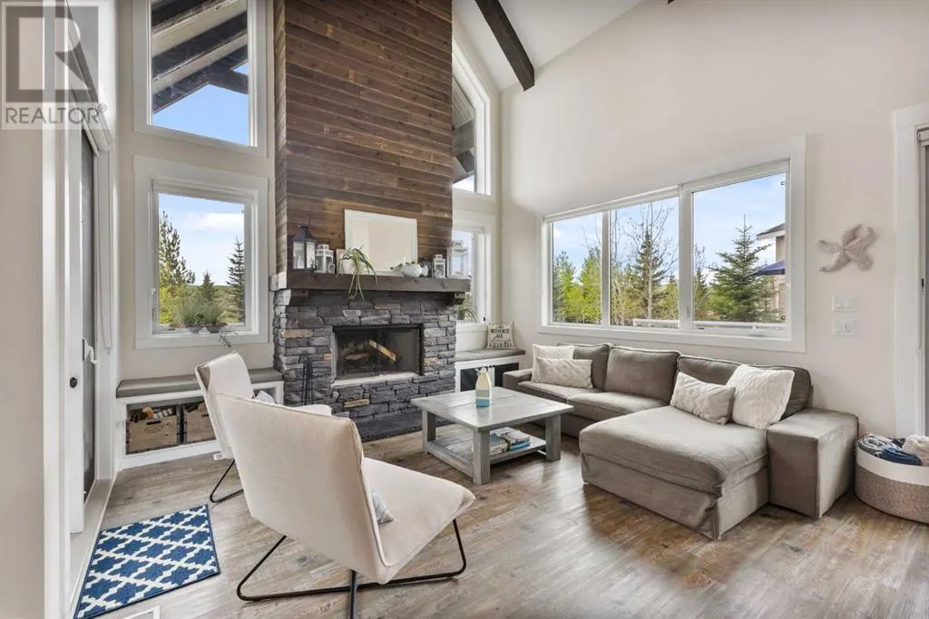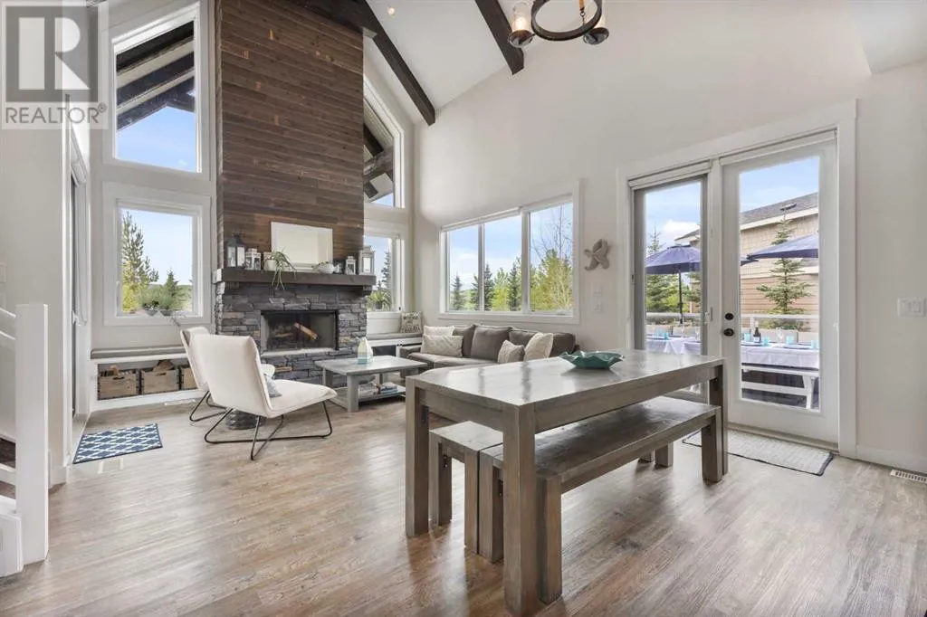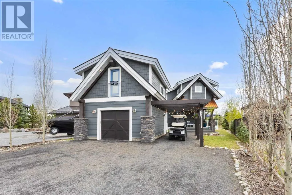 Welcome to your dream lake retreat at Ghost Lake â a truly exceptional property nestled on the largest developed lot in this prestigious gated community. This elegant and thoughtfully designed home backs onto a tranquil green space, offering the perfect blend of privacy, natural beauty, and high-end living. The luxury touches throughout such as premium triple-pane windows, offering superior comfort and energy efficiency along with the beautiful copper roof accents add timeless elegance and durability, reflective of the home's commitment to quality craftmanship. Step inside the main house and be greeted by a breathtaking 21-foot vaulted ceiling that crowns the open-concept main floor. The wood-burning fireplace creates a cozy and inviting atmosphere, ideal for relaxing after a day on the lake or entertaining friends and family. A stylish powder room adds convenience and charm to the space.Upstairs, youâll find a cozy bunk room that sleeps four, perfect for kids or guests, alongside the primary bedroom and a 3-piece bathroom. The fully finished basement extends your living space with a generous recreation room and hosts the laundry area, offering both comfort and practicality. The magic continues outdoors where a wraparound deck invites you to host unforgettable gatherings under the stars. Lounge by the second wood-burning fireplace, unwind in the inflatable hot tub, or simply soak in the peaceful surroundings of this dark sky community. A separate carriage house offers even more flexibility, featuring its own coffee bar, queen sized bunk beds, and another 3-piece bathroom â perfect for hosting extended family, guests, or creating a private retreat space. As part of this exclusive lakeside community, youâll enjoy unmatched amenities including lake access, an indoor pool, hot tub, tennis courts, fitness facility, community dock, kitchen, and beach volleyball courts â all set against the stunning backdrop of the Rocky Mountains.Whether youâre looking for a luxurious f ull-time residence or an upscale weekend getaway, this remarkable Ghost Lake property offers an unparalleled lifestyle.Don't miss this rare opportunity to own a premier piece of paradise â where nature, luxury, and community come together beautifully. (id:27476)