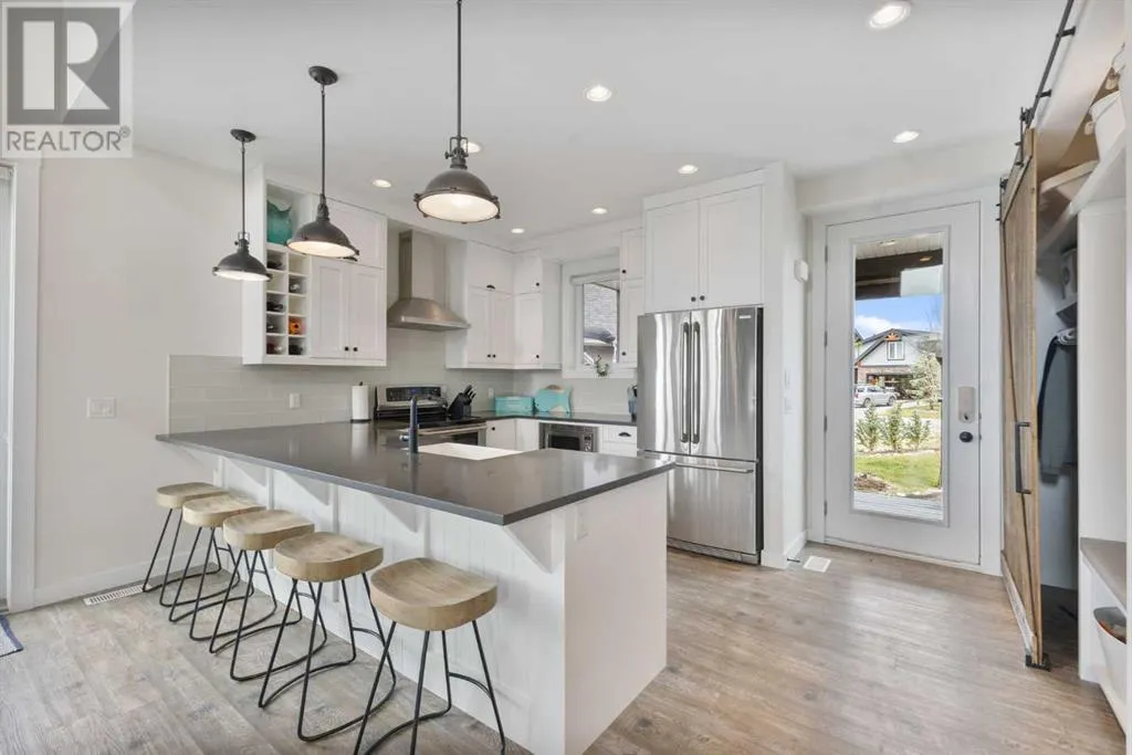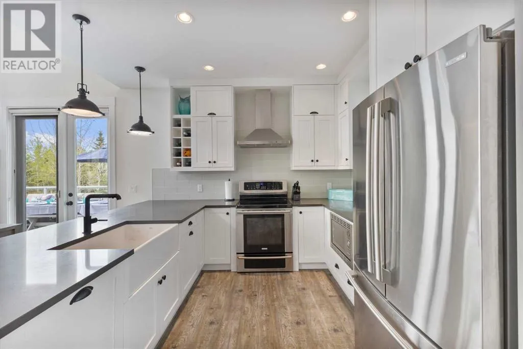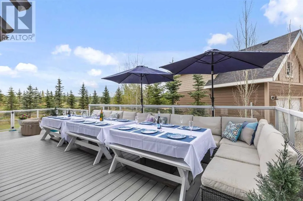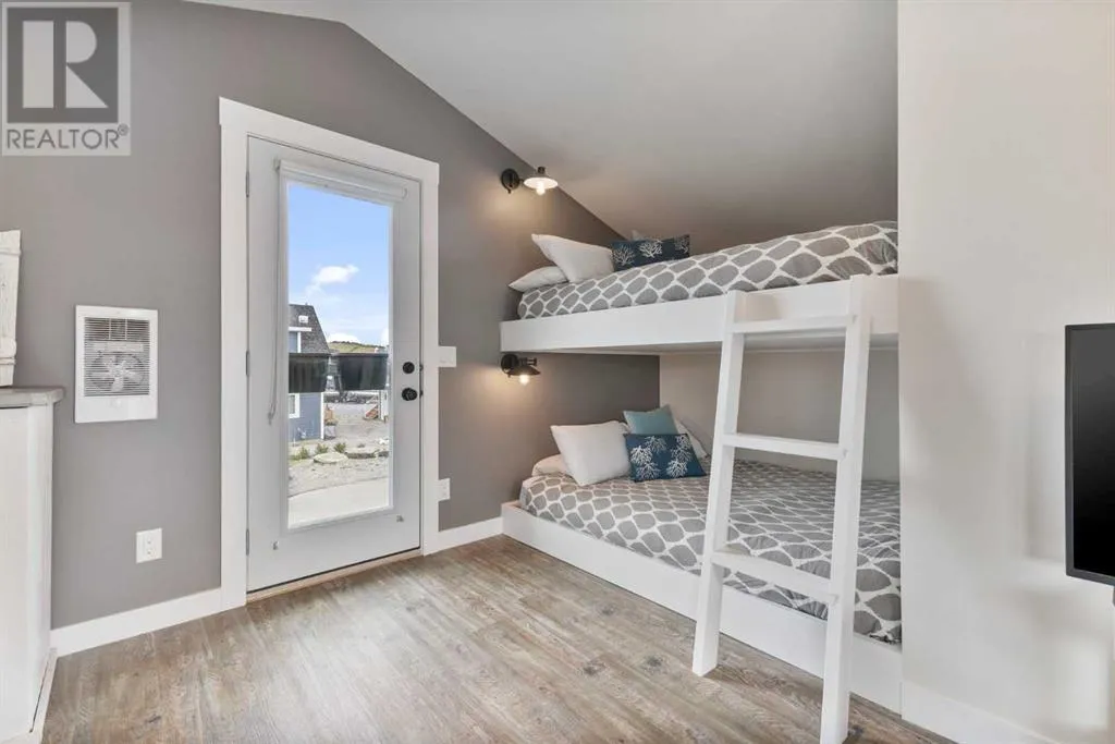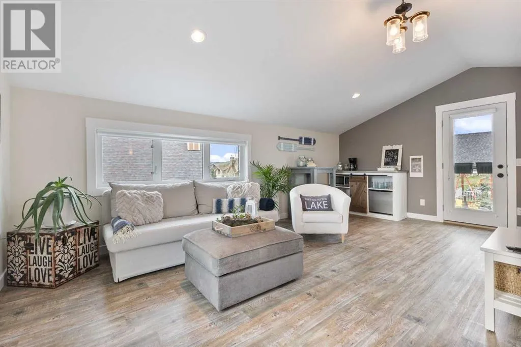 Welcome to your dream lake retreat at Ghost Lake â a truly exceptional property nestled on the largest developed lot in this prestigious gated community. This elegant and thoughtfully designed home backs onto a tranquil green space, offering the perfect blend of privacy, natural beauty, and high-end living. The luxury touches throughout such as premium triple-pane windows, offering superior comfort and energy efficiency along with the beautiful copper roof accents add timeless elegance and durability, reflective of the home's commitment to quality craftmanship. Step inside the main house and be greeted by a breathtaking 21-foot vaulted ceiling that crowns the open-concept main floor. The wood-burning fireplace creates a cozy and inviting atmosphere, ideal for relaxing after a day on the lake or entertaining friends and family. A stylish powder room adds convenience and charm to the space.Upstairs, youâll find a cozy bunk room that sleeps four, perfect for kids or guests, alongside the primary bedroom and a 3-piece bathroom. The fully finished basement extends your living space with a generous recreation room and hosts the laundry area, offering both comfort and practicality. The magic continues outdoors where a wraparound deck invites you to host unforgettable gatherings under the stars. Lounge by the second wood-burning fireplace, unwind in the inflatable hot tub, or simply soak in the peaceful surroundings of this dark sky community. A separate carriage house offers even more flexibility, featuring its own coffee bar, queen sized bunk beds, and another 3-piece bathroom â perfect for hosting extended family, guests, or creating a private retreat space. As part of this exclusive lakeside community, youâll enjoy unmatched amenities including lake access, an indoor pool, hot tub, tennis courts, fitness facility, community dock, kitchen, and beach volleyball courts â all set against the stunning backdrop of the Rocky Mountains.Whether youâre looking for a luxurious f ull-time residence or an upscale weekend getaway, this remarkable Ghost Lake property offers an unparalleled lifestyle.Don't miss this rare opportunity to own a premier piece of paradise â where nature, luxury, and community come together beautifully. (id:27476)